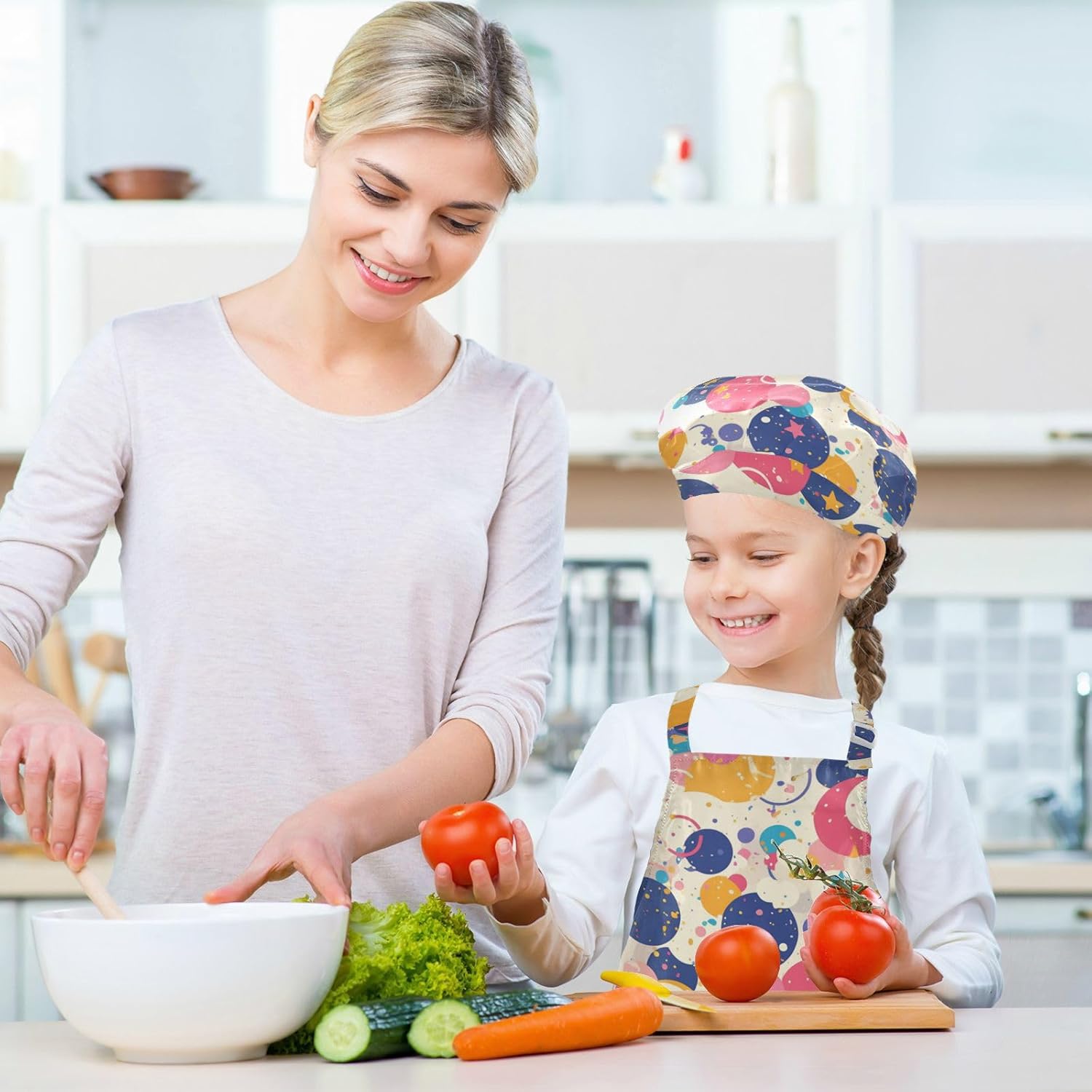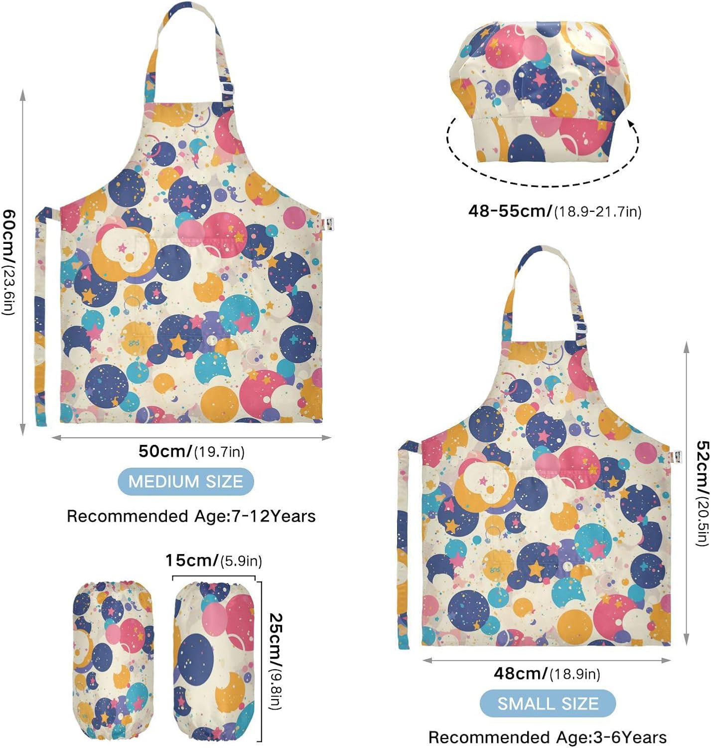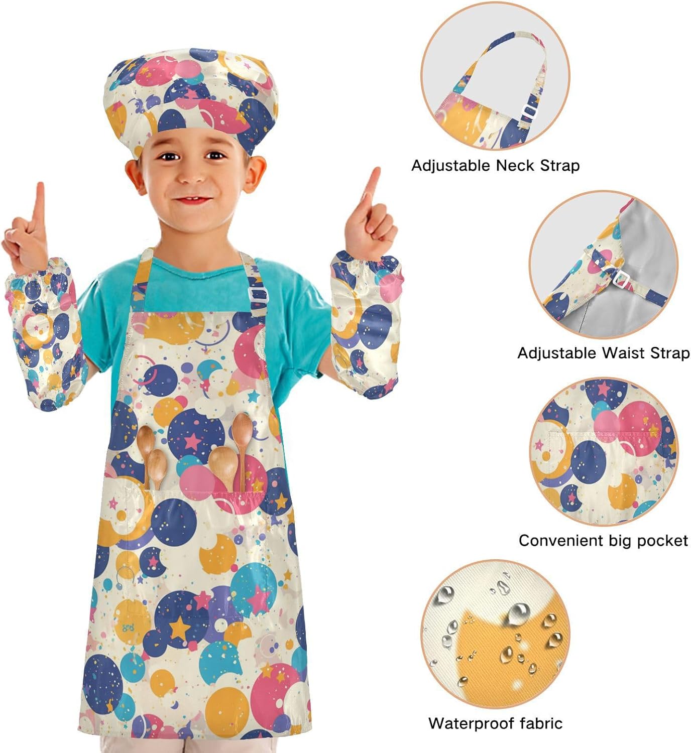 Grembiule per bambini con cappello da cuoco divertente coriandoli pois stelle grembiuli per bambini con tasche per bambini 3-12 anni