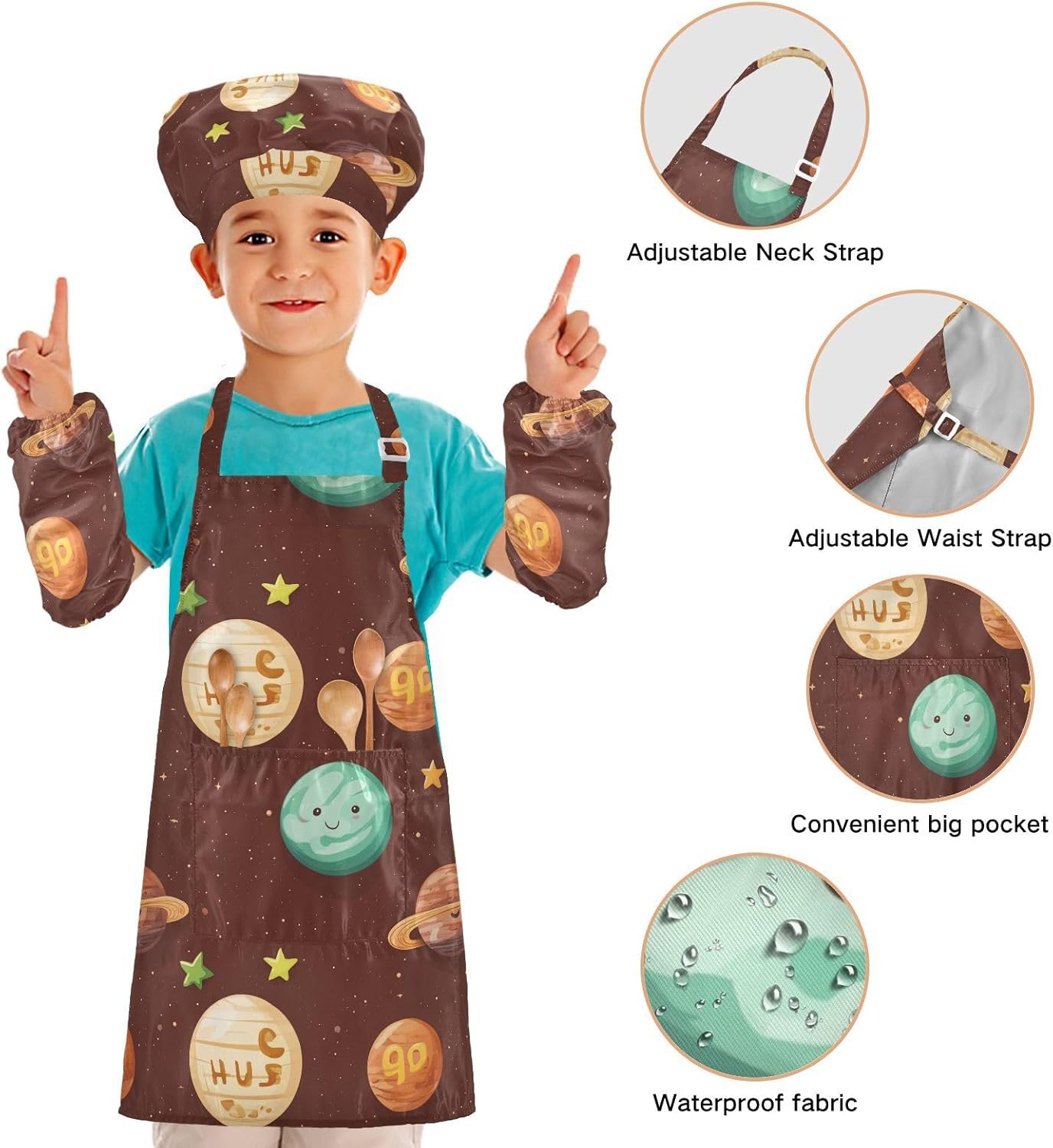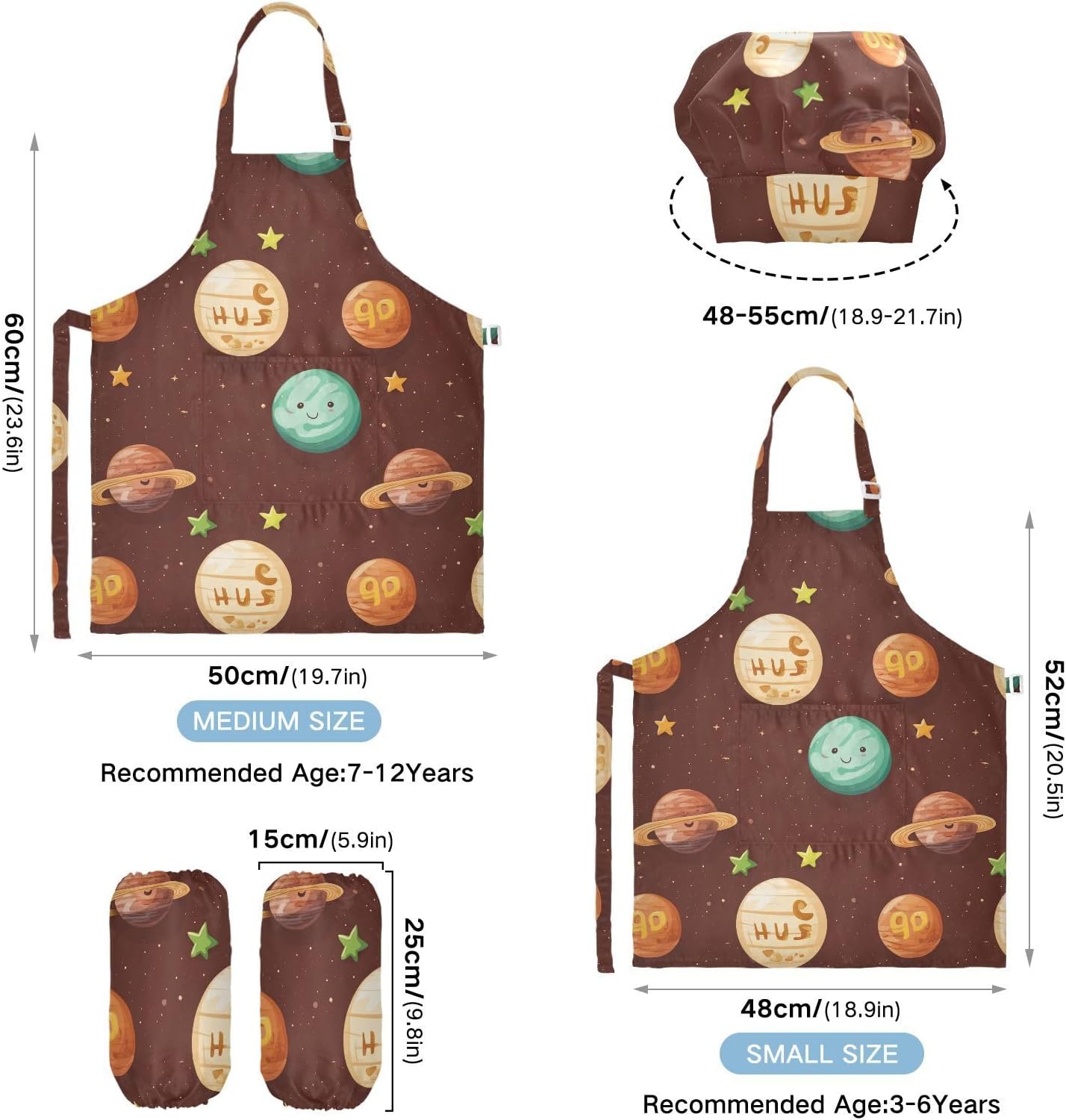 Dimensioni consigliate: S: 48 x 52 cm (età 3-6 anni). M: 50 x 59,7 cm (7-12 anni). La taglia può adattarsi alla maggior parte dei ragazzi e delle ragazze. Si prega di scegliere la taglia giusta in base alle dimensioni specifiche. Materiale di alta qualità: il set di grembiuli per bambini è realizzato in poliestere, morbido tessuto impermeabile twill 290, dando una sensazione confortevole quando si indossa. Cinghia regolabile: il collo lungo e le cinghie in vita sono regolabili. È possibile regolare la cinghia in base alla lunghezza che i bambini si sentono a proprio agio per attività o vestirsi Inoltre, la cinghia regolabile può fornire abbastanza spazio per i bambini da indossare o togliere. Multiuso: i grembiuli per bambini non possono essere indossati per pittura, cucina, giardinaggio, lavaggio dei piatti, feste, arte, artigianato e attività scolastiche, ma anche per Natale, Ringraziamento, Halloween, San Patrizio, Capodanno, festa dei bambini, festival, vacanze, cene, compleanni e riunioni di famiglia. L'articolo include: il set di grembiule per bambini include 1 grembiule leggero, 1 cappello da chef e 2 maniche. Il costume da chef per bambini da 3 pezzi può dare ai bambini una buona esperienza di utilizzo per cucinare o dipingere come cuochi o pittori professionisti.