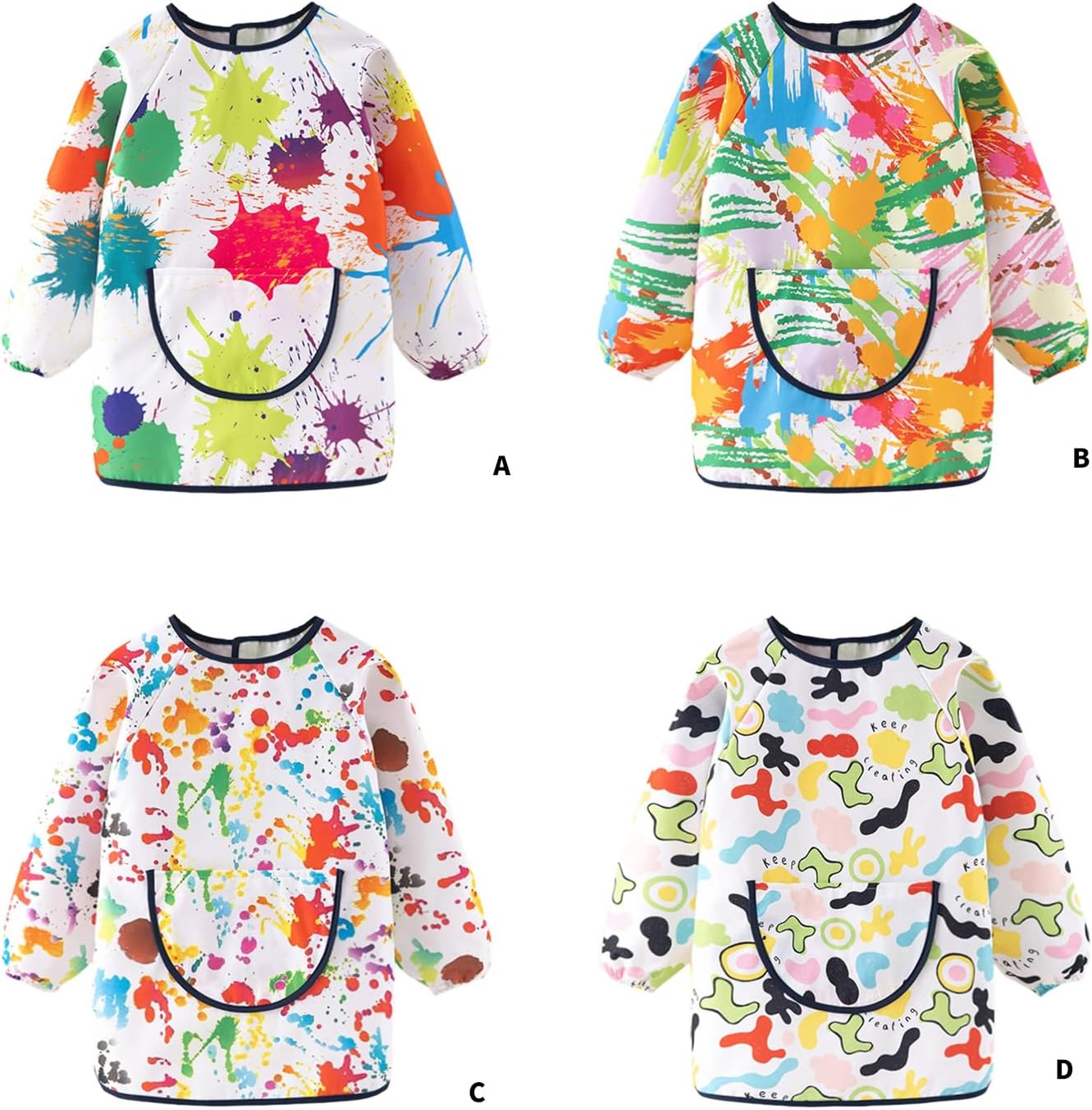 Grembiule per bambini con maniche lunghe e tasca per dipingere e cucinare dai 3 agli 8 anni Caratteristiche: Mantieni i vestiti dei tuoi bambini senza macchia con il grembiule per bambini resistente all'acqua, con maniche lunghe e 3 spaziose tasche per pennelli, pennelli in spugna e altri strumenti di pittura artistica. Realizzato in tessuto di poliestere per una rapida asciugatura, rinforzato con polsini elastici e strisce adesive posteriori per scivolare durante il progetto disordinato. Adatto per bambini, bambini, bambini in età prescolare e bambini dai 3 agli 8 anni, che amano dipingere, cucinare o praticare attività artistiche. Ampiamente usato per pittura artistica domestica, cucina, mangiare, lezioni di arte scolastica, feste di compleanno per bambini o qualsiasi attività che richieda una protezione completa del corpo da fuoriuscite e macchie. Grembiule lavabile in lavatrice per bambini, il tessuto traspirante garantisce comfort e facile pulizia dopo aver dipinto, mangiato, cucinato e giocato. Specifiche tecniche: Componente: poliestere. Colore: Color01, Color02, Color03, Color04 Dimensioni: vedere la tabella delle taglie. Peso: circa 100 g. La confezione include: 1 grembiule da pittura per bambini. Nota: Si prega di considerare un margine di errore di 0-1 cm a causa della misurazione manuale. Assicurati di non avere un problema prima di fare un'offerta. 2. L'immagine potrebbe non rispecchiare il colore reale a causa delle diverse impostazioni dei monitor