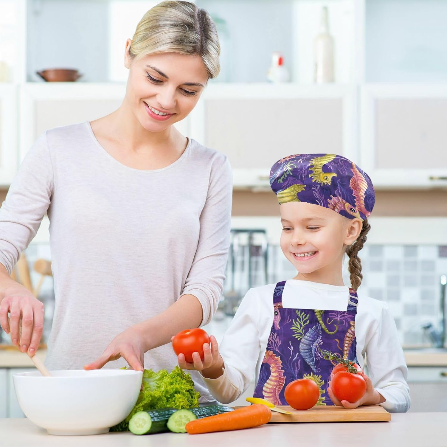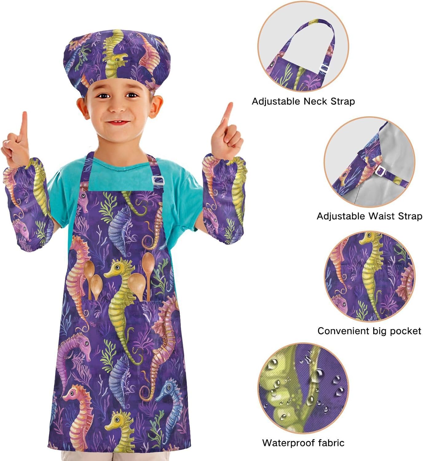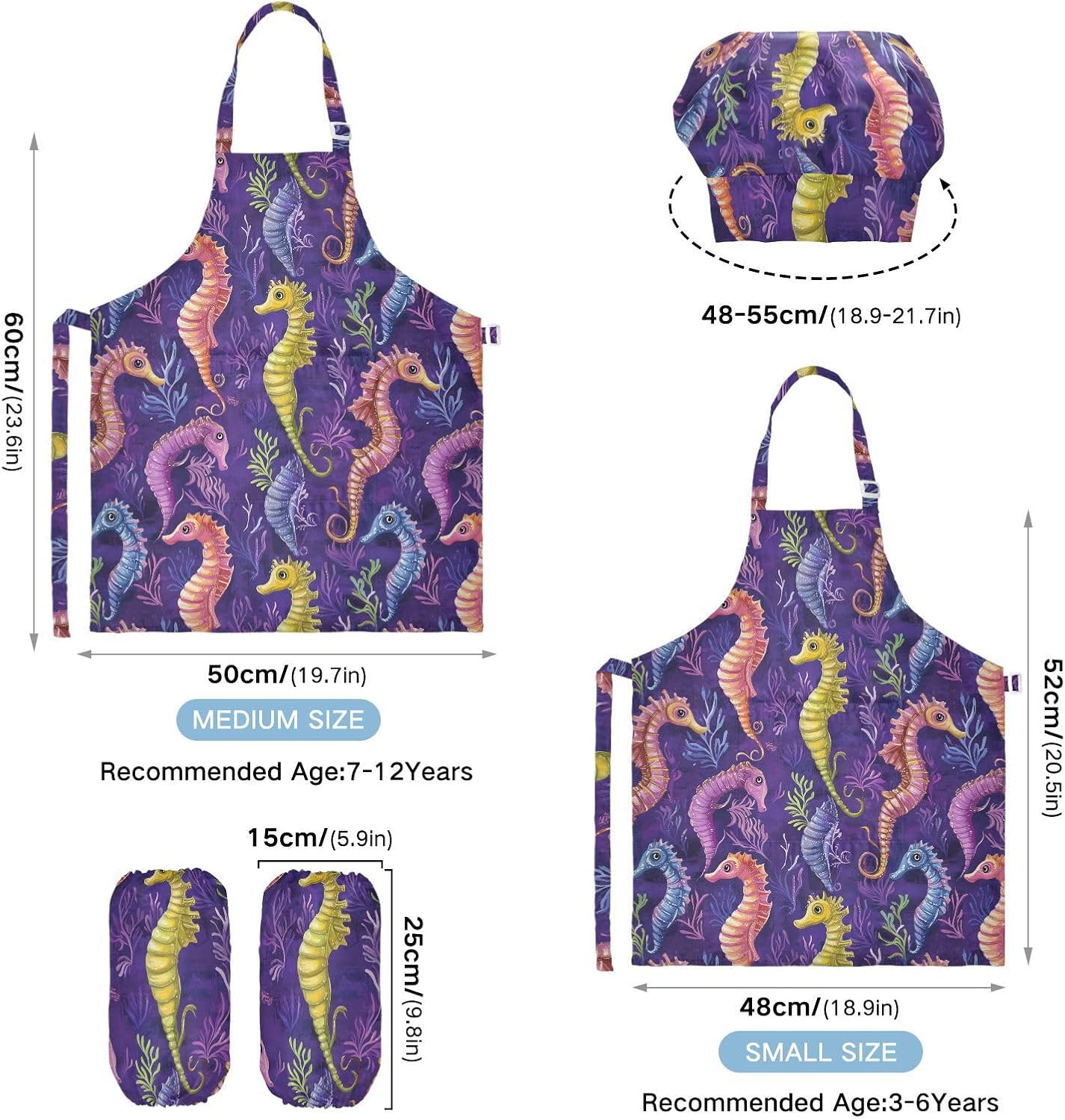 Dimensioni: i grembiuli per bambini di piccole dimensioni per bambini dai 3 ai 6 anni sono alti 52,1 cm, larghi 48 cm. Il grembiule di medie dimensioni per bambini dai 7 ai 12 anni è alto 59,7 cm, largo 50 cm. Il cappello delle due dimensioni misura 48-55,1 cm. ?La custodia misura 15 x 24,9 cm. Materiale ecologico: il tessuto è impermeabile, leggero, accogliente, stampa adorabile alla moda, ecologico per la pelle dei bambini. Protezione delle maniche con una grande tasca: due maniche possono proteggere i bambini da acqua, olio e pigmenti. Con grandi tasche decorative e funzionali, è comodo mettere alcuni strumenti quando si utilizza, adatto per imparare a cucinare, fare caramelle, dolci, ecc. Multiuso: il grembiule per bambini non può essere indossato per pittura, cucina, giardinaggio, lavaggio dei piatti, feste, arte, artigianato e attività scolastiche, ma anche per Natale, Ringraziamento, Halloween, San Patrizio, Capodanno, festa dei bambini, festival, vacanze, cene, compleanni e riunioni di famiglia. Facile da pulire: il nostro prodotto è impermeabile e a prova di fuoriuscite. Basta strofinare, lavare in lavatrice e lavare a mano.