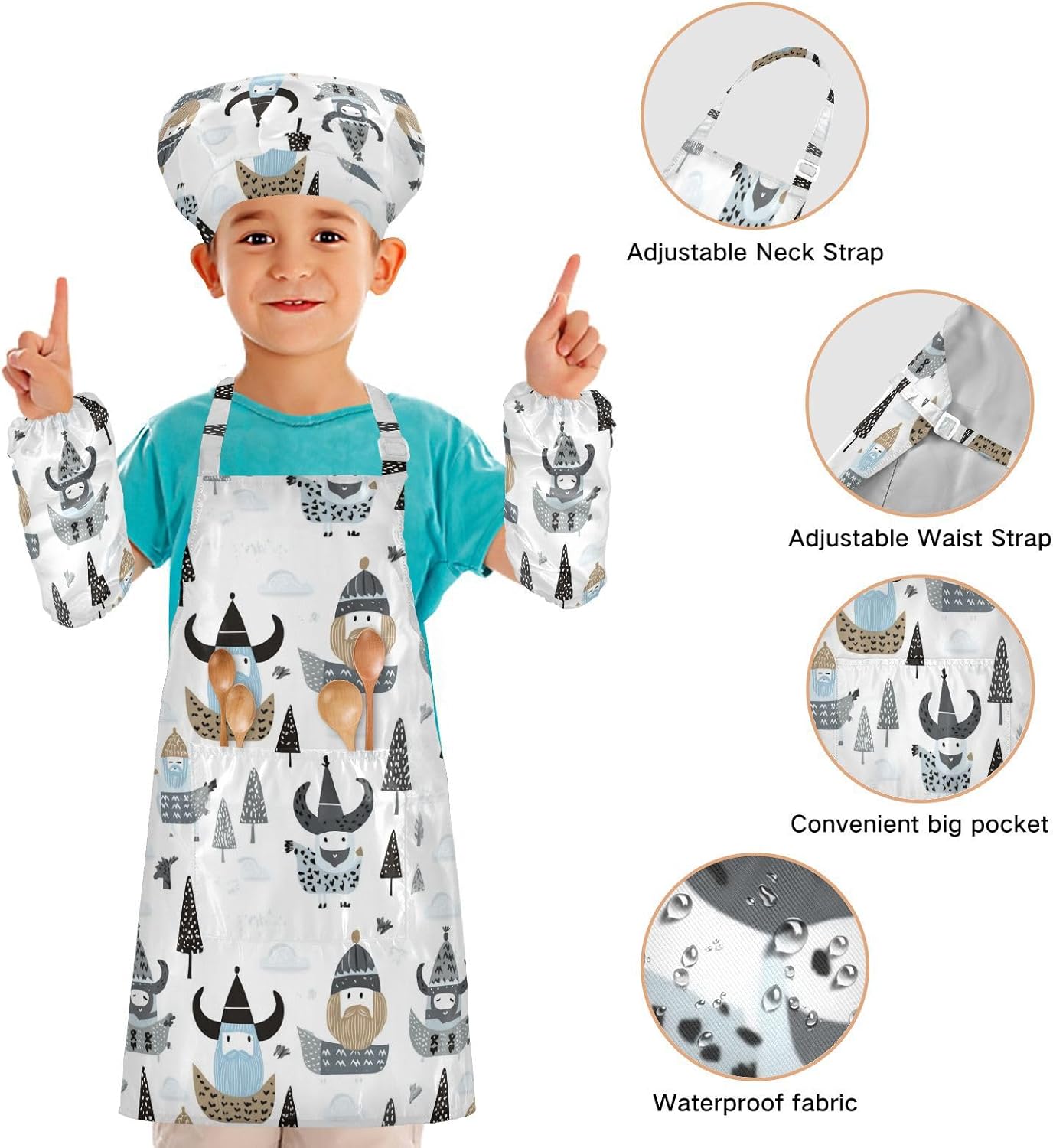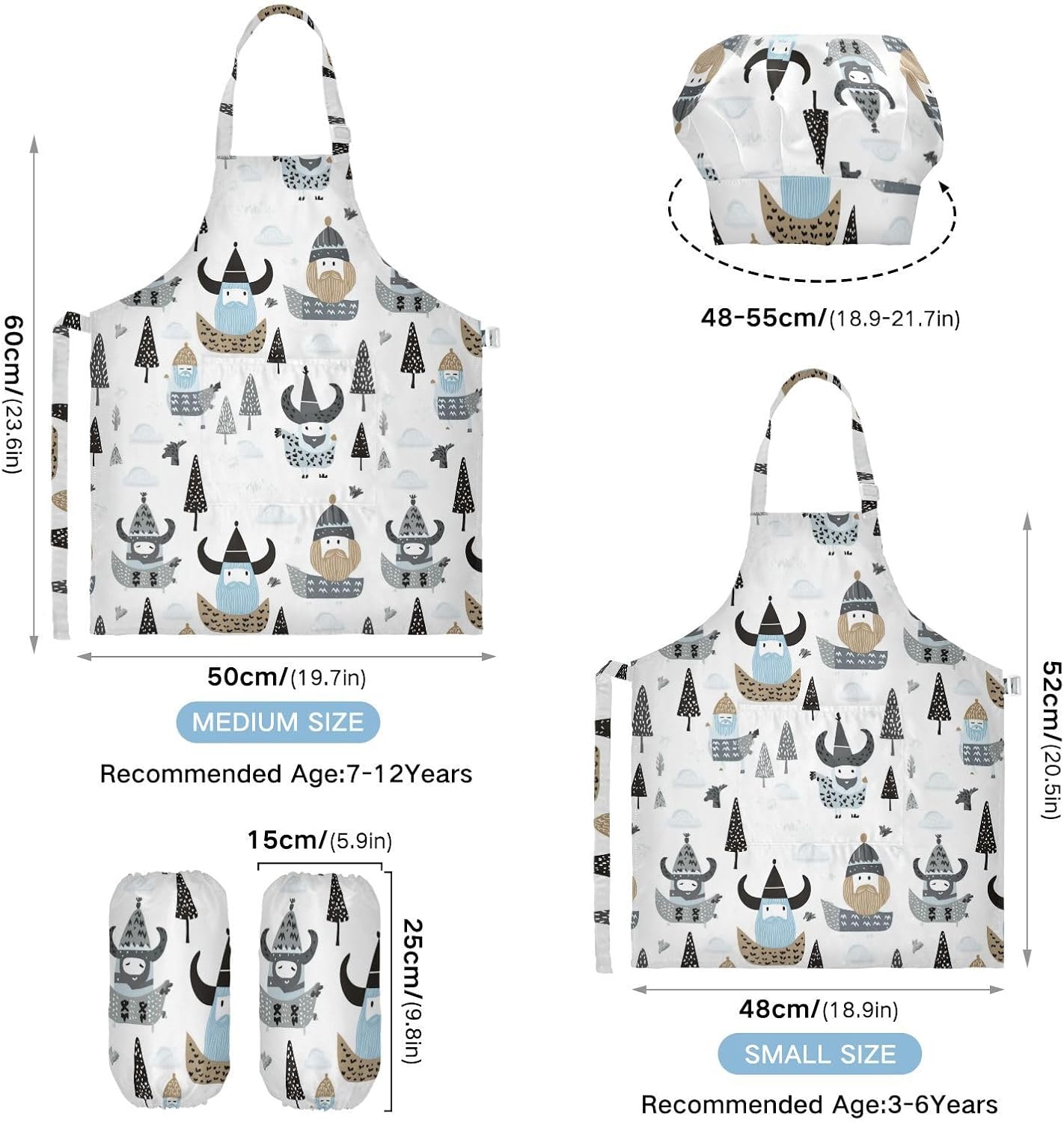 Dimensioni e articolo include: S: 18,9 x 20,5 L per bambini dai 3 ai 6 anni. M: 19,7 W x 23,5 L per età 7-12 anni. Il set da chef per bambini include 1 grembiule leggero, 1 cappello da chef e 2 maniche. Il grembiule da cucina per bambini può dare ai bambini una buona esperienza di utilizzo per cucinare o dipingere come fornelli o pittori professionisti. Materiale di alta qualità: i grembiuli per bambini sono realizzati in poliestere, comodi, eleganti, leggeri e regolabili, impermeabili, facili da pulire. Impermeabile Caratteristica: Realizzato in poliestere, il set da cucina per bambini da 3 pezzi è impermeabile. I bambini possono sentirsi liberi di imparare a cucinare e dipingere come preferiscono e possono mantenere i loro vestiti puliti allo stesso tempo. Multiuso: il grembiule per bambini non può essere indossato per pittura, cucina, giardinaggio, lavaggio dei piatti, feste, arte, artigianato e attività scolastiche, ma anche per Natale, Ringraziamento, Halloween, San Patrizio, Capodanno, festa dei bambini, festival, vacanze, cene, compleanni e riunioni di famiglia. Contenuto della confezione: un grembiule impermeabile, un cappello da chef e due maniche. Gli adorabili grembiuli per bambini possono incoraggiarli a sviluppare le loro abilità di cucina, pittura, cottura, giardinaggio o altre abilità.