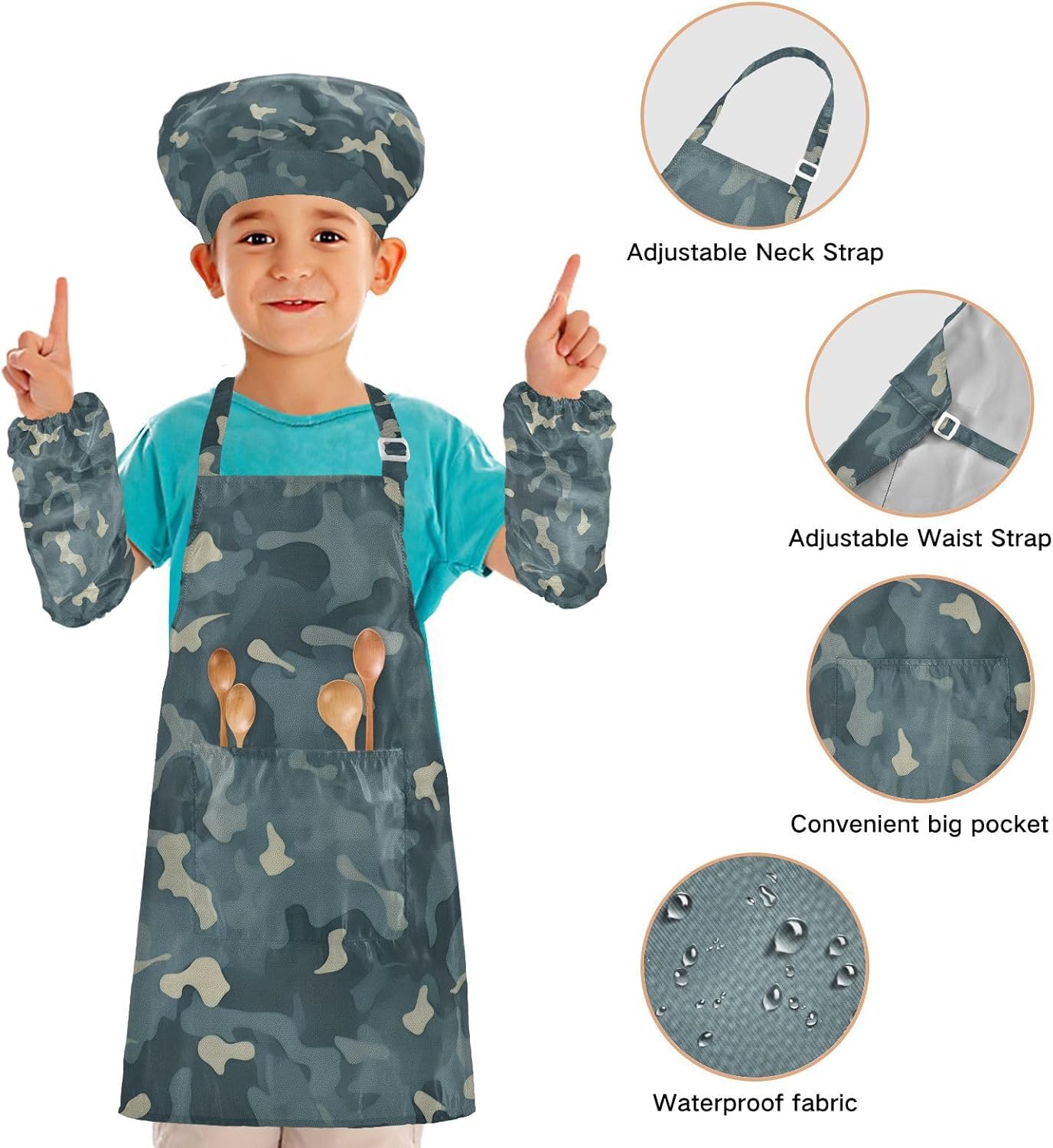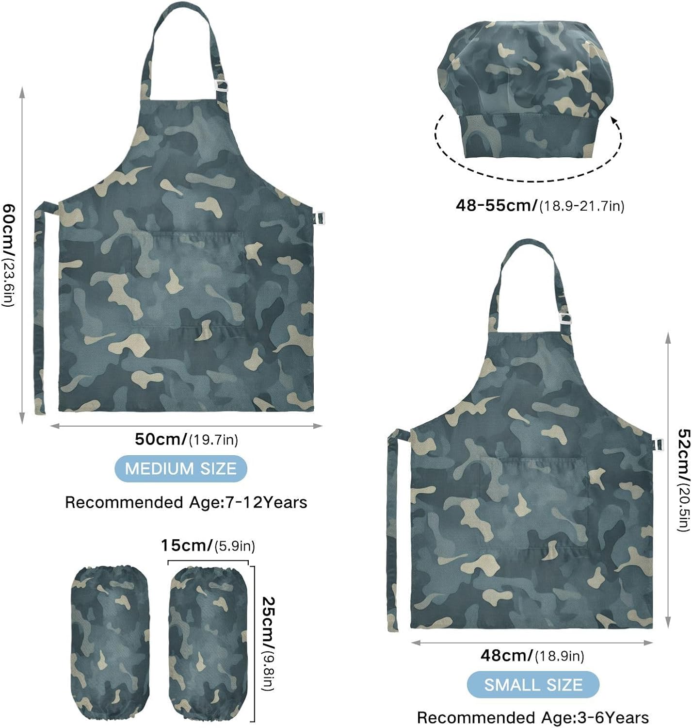 Dettagli del prodotto: Materiale: poliestere. La confezione include: 1 grembiule per bambini + 1 cappello da chef abbinato + 1 paio di maniche Dimensioni grembiule: S - 48 x 52,1 cm (età 3-5 anni), L - 19,7 x 59,7 cm (età 6-12 anni) Istruzioni per il lavaggio: Lavabile in lavatrice o a mano con acqua fredda. Perché sceglierci? Il nostro set di cappelli con grembiule per bambini è realizzato in poliestere di alta qualità, morbido al tatto e privo di sostanze chimiche, cinturino regolabile con lacci neri, morbido e confortevole, le cravatte lunghe possono essere facilmente modificate per adattarsi alla maggior parte delle dimensioni, adatte a diverse forme del corpo, sia un ragazzo che una ragazza, grasso o magro. I nostri simpatici grembiuli funzionali personalizzati con motivo vigoroso e design unico sono perfetti per tutti i tipi di occasioni, possono essere utilizzati per proteggere i vestiti durante la cottura, la cottura, l'artigianato, la pittura, il giardinaggio, il barbecue o qualsiasi altra cosa che potrebbe creare disordine. Questi set da cucina splendidamente progettati e confezionati sono anche un regalo perfetto per la cucina dei bambini, regalo per le vacanze e un regalo premuroso per i tuoi bambini che si divertono nella cottura e nella cucina.