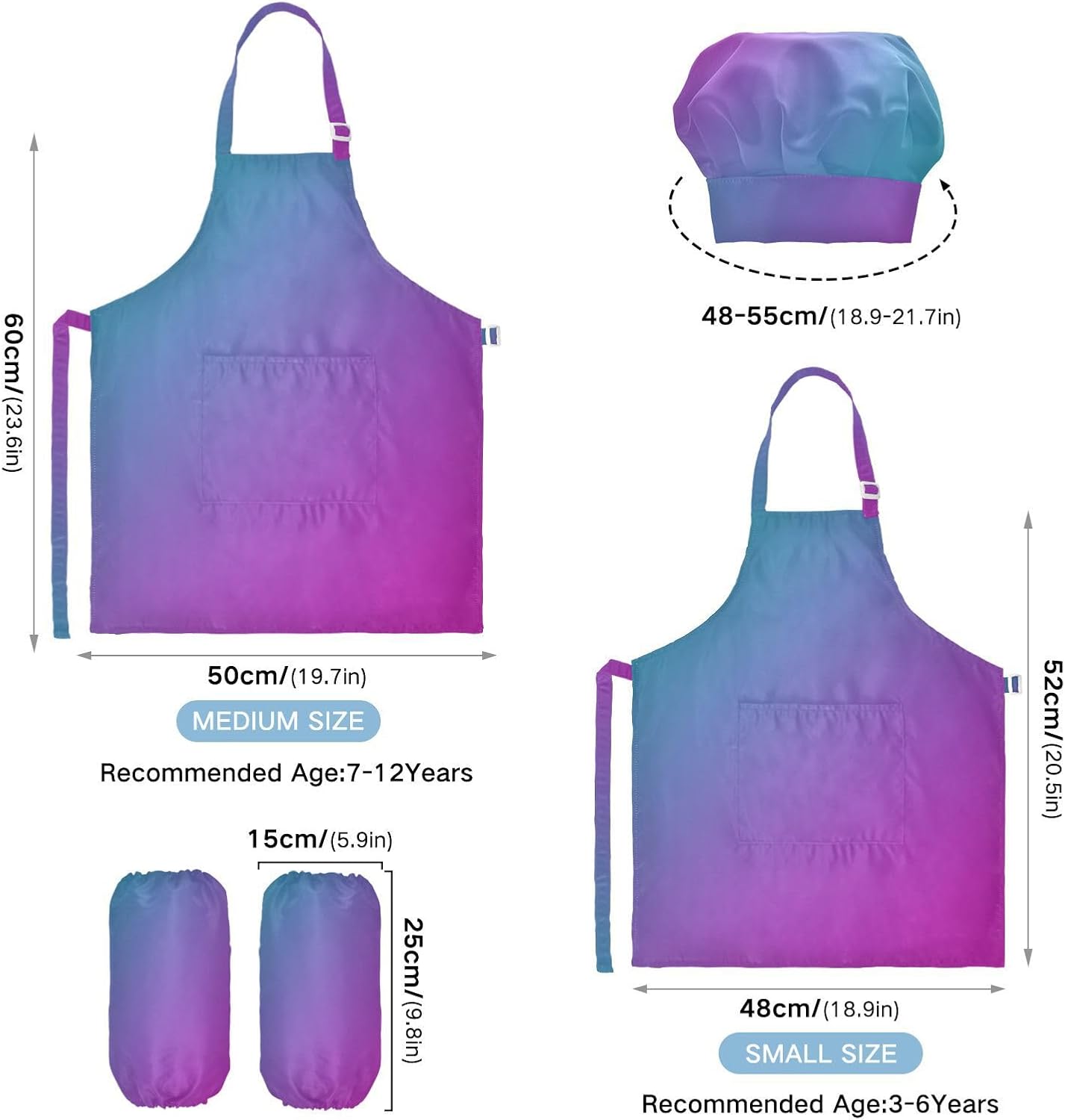 Dimensioni consigliate: S: 48 x 52 cm (età 3-6 anni). M: 50 x 59,7 cm (7-12 anni). La taglia può adattarsi alla maggior parte dei ragazzi e delle ragazze. Si prega di scegliere la taglia giusta in base alle dimensioni specifiche. Materiale ecologico: il tessuto è impermeabile, leggero, accogliente, stampa adorabile alla moda, ecologico per la pelle dei bambini. Cinghia regolabile: il set di grembiule con cappello da chef per bambini con collo regolabile e cinturino in vita può fornire ai bambini una buona esperienza di utilizzo. Non devi preoccuparti se i grembiuli per bambini si adattano a loro o meno. Scenario applicabile: ideale per asilo, asilo, cucina, sala pittura, giardino, Halloween, Natale, abbigliamento del Ringraziamento, artigianato e attività di pittura artistica, festa di compleanno per incoraggiare i bambini a sviluppare la loro cucina, pittura, cottura, giardinaggio o altre abilità. L'articolo include: Il costume da chef Kid include 1 grembiule leggero, 1 cappello da chef e 2 maniche. Il set da cucina per bambini da 3 pezzi può dare ai bambini una buona esperienza di utilizzo per cucinare o dipingere come fornelli o pittori professionisti.
