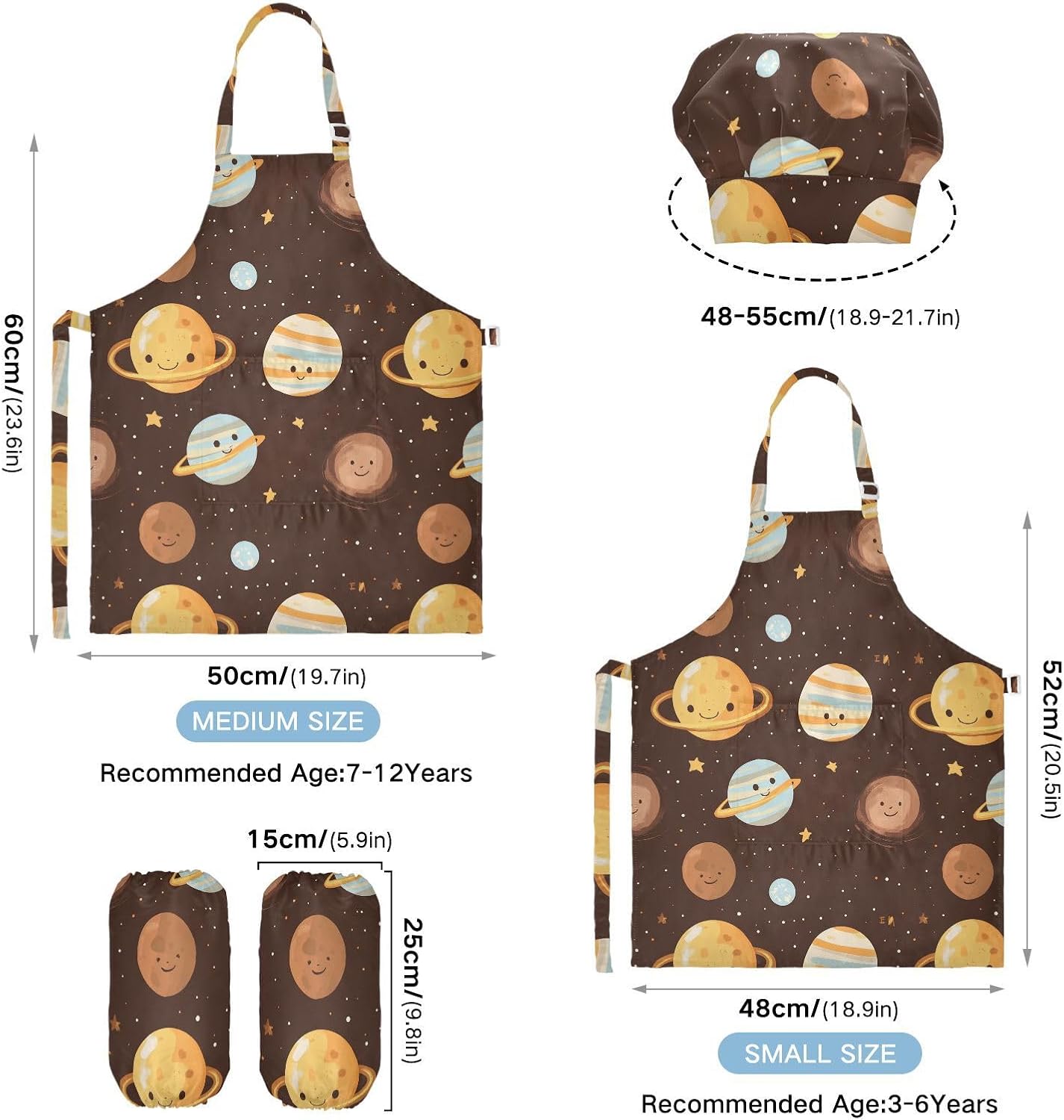 Dimensioni e articolo include: S: 18,9 x 20,5 L per bambini dai 3 ai 6 anni. M: 19,7 W x 23,5 L per età 7-12 anni. Il set da chef per bambini include 1 grembiule leggero, 1 cappello da chef e 2 maniche. Il set da chef per bambini può dare ai bambini una buona esperienza di utilizzo per cucinare o dipingere come fornelli o pittori professionisti. Materiale di alta qualità: il set da chef per bambini è realizzato in poliestere, comodo, elegante, leggero e regolabile, impermeabile, facile da pulire. Cinghia regolabile: il collo lungo e le cinghie in vita sono regolabili. È possibile regolare la cinghia in base alla lunghezza che i bambini si sentono a proprio agio per attività o vestirsi Inoltre, la cinghia regolabile può fornire abbastanza spazio per i bambini da indossare o togliere. Applicazioni versatili: ideale per i bambini per proteggere i vestiti durante la cottura, il giardinaggio, la cottura, il gioco, la produzione di caramelle, la cottura di torte, tele, arti e mestieri, lezioni in classe, faccende domestiche. Può anche essere una grande decorazione per costumi di Halloween, oggetti di scena teatrali, feste di compleanno, eventi carini, feste a tema, riunioni di famiglia e molto altro ancora. L'articolo include: il set di cappello da chef per bambini include 1 grembiule leggero, 1 cappello da chef e 2 maniche. I grembiuli per bambini possono dare ai bambini una buona esperienza di utilizzo per cucinare o dipingere come fornelli o pittori professionisti.