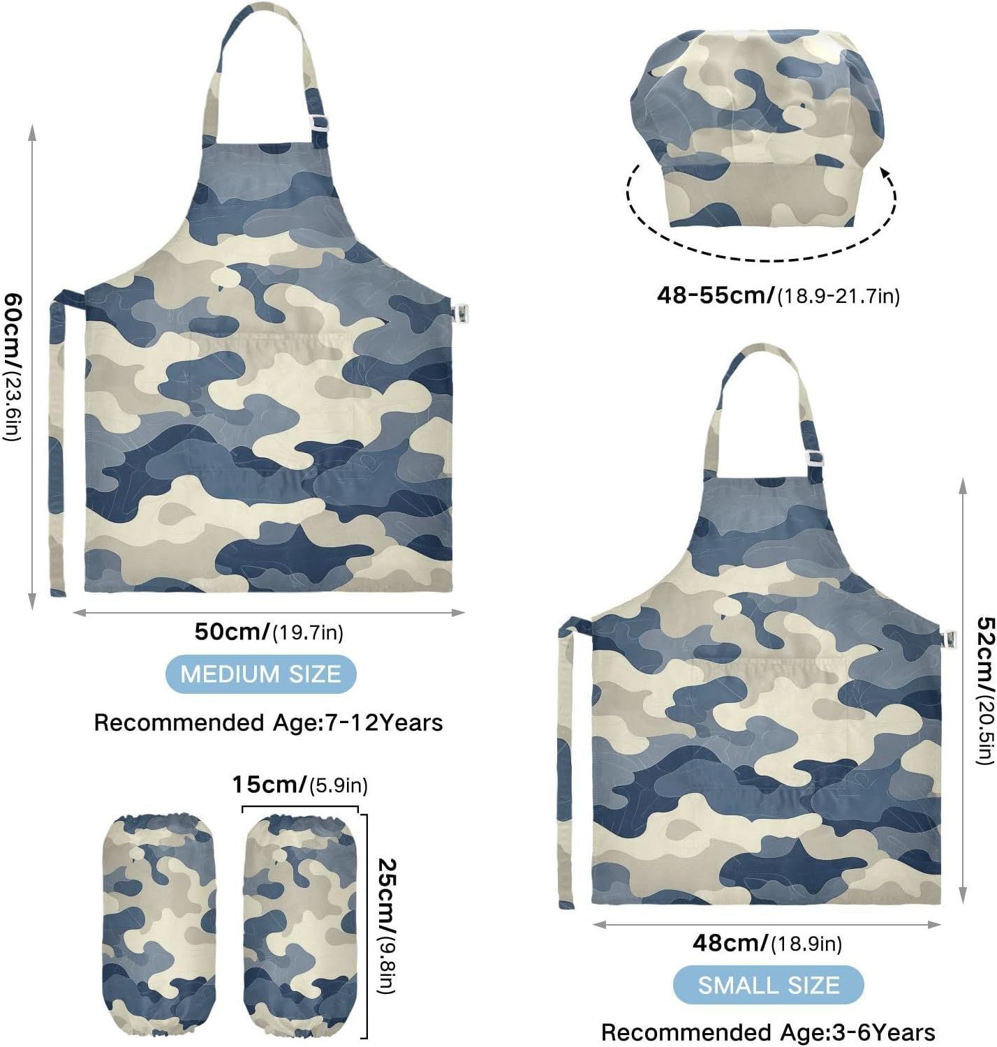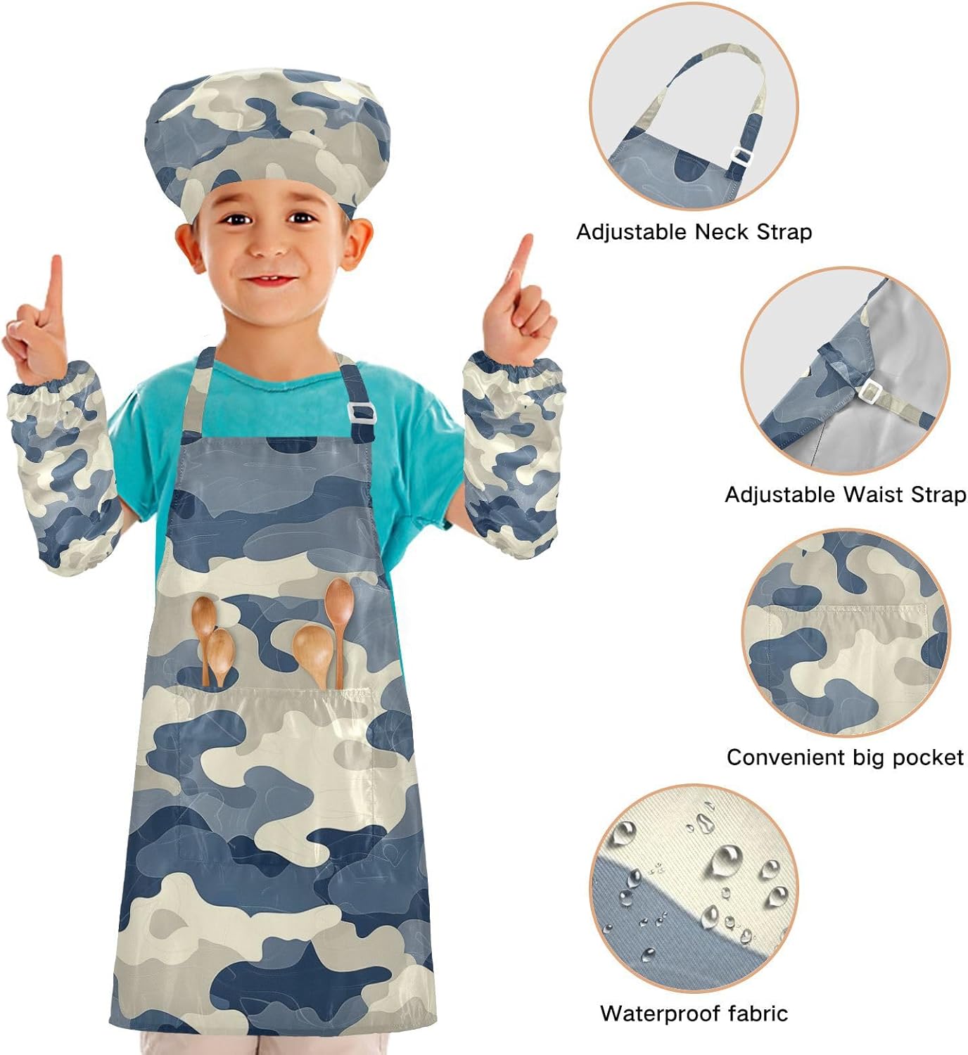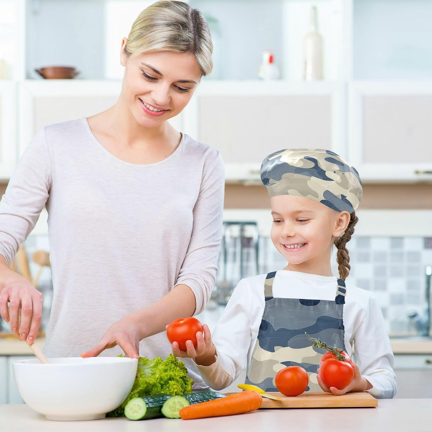 Grembiuli da griglia per bambini adorabili mimetici per bambini con tasche per cucinare e cuocere 3-12 anni