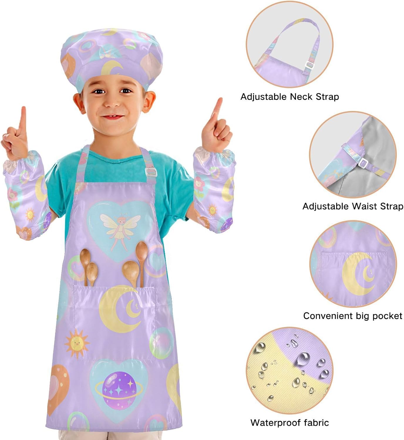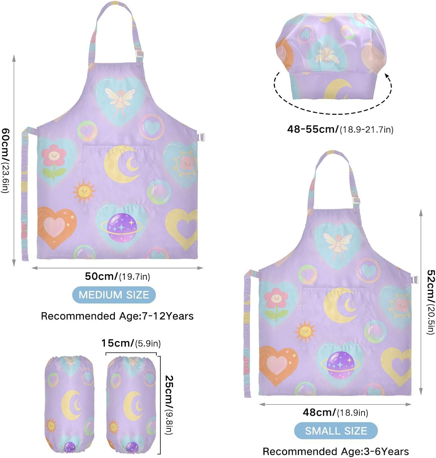 Dimensioni: il grembiule per bambini di piccole dimensioni per bambini dai 3 ai 6 anni è alto 52,1 cm, largo 48 cm. Il set di grembiule per bambini di medie dimensioni per età compresa tra 7 e 12 anni è alto 59,7 cm, largo 50 cm. Il cappello delle due dimensioni misura 48-55,1 cm. ?La custodia misura 15 x 24,9 cm. Materiale di alta qualità: il set da cucina per bambini da 3 pezzi è realizzato in poliestere, comodo, elegante, leggero e regolabile, impermeabile, facile da pulire. Protezione delle maniche con una grande tasca: due maniche possono proteggere i bambini da acqua, olio e pigmenti. Con grandi tasche decorative e funzionali, è comodo mettere alcuni strumenti quando si utilizza, adatto per imparare a cucinare, fare caramelle, dolci, ecc. Scenario applicabile: ideale per asilo, asilo, cucina, sala pittura, giardino, Halloween, Natale, abbigliamento del Ringraziamento, artigianato e attività di pittura artistica, festa di compleanno per incoraggiare i bambini a sviluppare la loro cucina, pittura, cottura, giardinaggio o altre abilità. Contenuto della confezione: un grembiule impermeabile, un cappello da chef e due maniche. L'adorabile set da chef per bambini può incoraggiarli a sviluppare le loro abilità di cucina, pittura, cottura, giardinaggio o altre abilità.