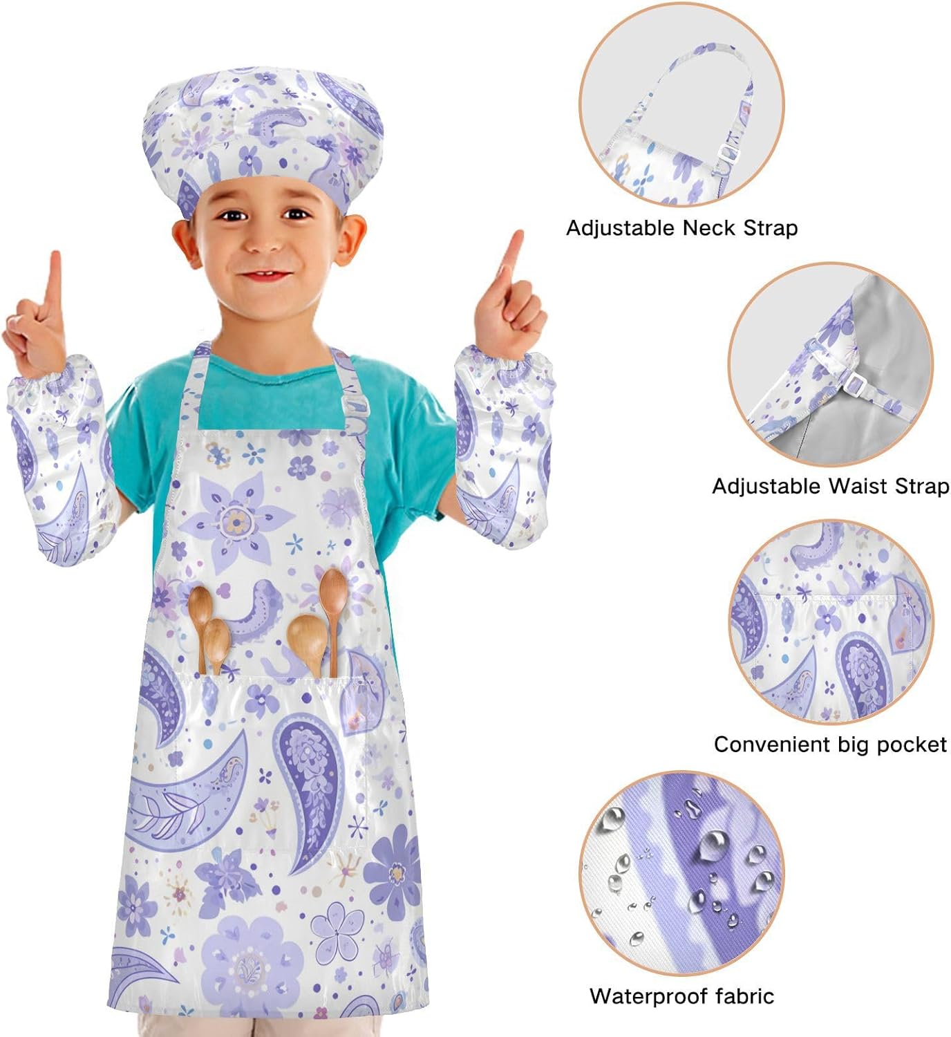 Grembiuli da griglia per bambini, multiuso, stile sognante, viola, con tasche, per bambini dai 3 ai 12 anni