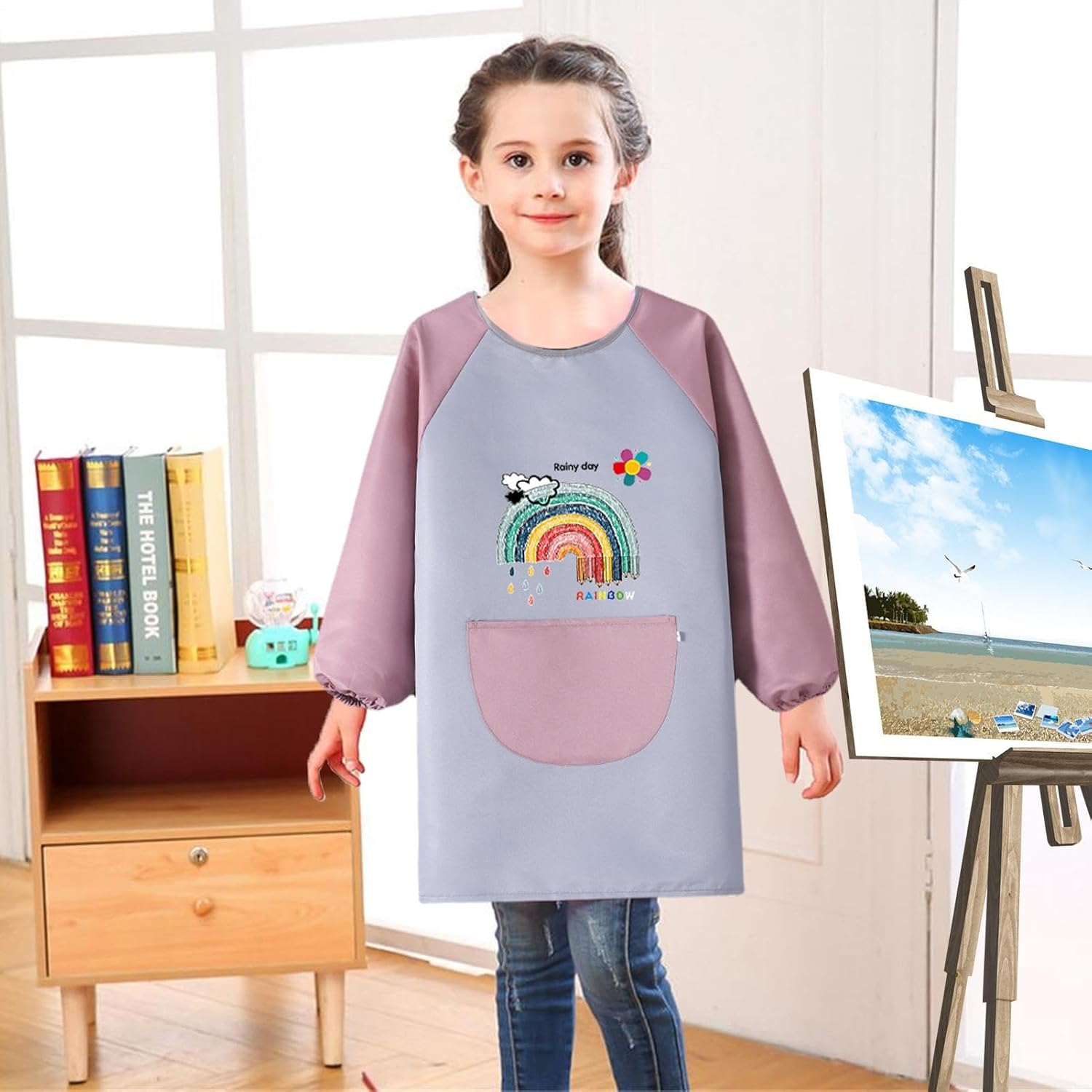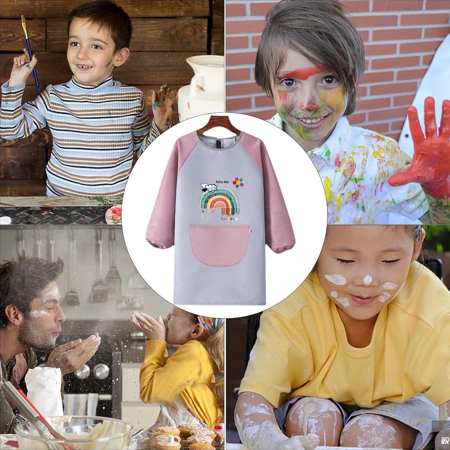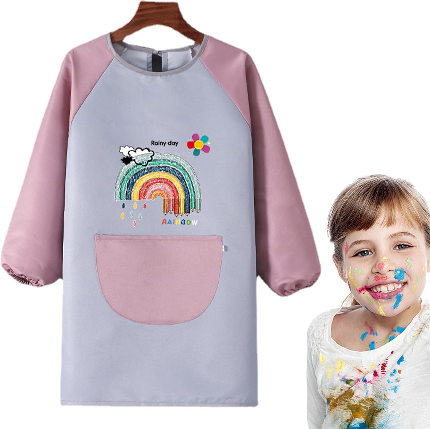 Grembiuli per pittura per bambini, in poliestere, a maniche lunghe, per bambini, impermeabili, comodi e regolabili, con grande tasca per cucinare, scrivere, ceramica, pittura Proteggi i vestiti dei tuoi bambini dalla vernice e dalle macchie con questo grembiule impenetrabile. È dotato di una grande tasca per riporre pennelli e strumenti e riceve diversi modelli di cartoni animati per soddisfare le loro preferenze. Che si tratti di dipingere, fai da te o cucinando, questo grembiule è un regalo pratico per ogni bambino creativo. Specifiche: Materiale: fibra di poliestere. Colore: rosa, blu. Dimensioni: (circa) 24 x 22 x 4 cm. Peso: circa 125 g. Contenuto della confezione: 1 grembiule per bambini