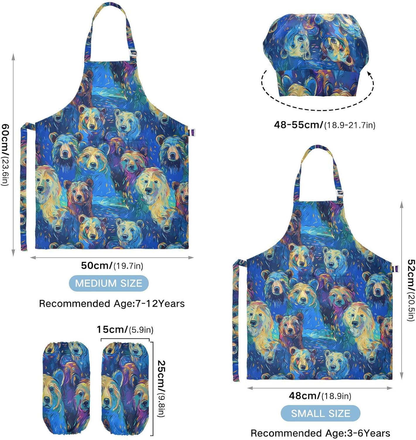 Taglia disponibile: S: 48 x 52 cm, per bambini dai 3 ai 6 anni. M: 50 x 59,7 cm, per bambini dai 7 ai 12 anni. Le taglie di cappelli e maniche condividono le stesse dimensioni. Cappello: 48-55 cm. Maniche: 15 x 24,9 cm. Tessuto comodo: il {parola chiave} è realizzato in tessuto di poliestere di alta qualità, morbido, ecologico, impermeabile, a prova di fuoriuscite e, processo di stampa squisito brillante. Impermeabile Caratteristica: Realizzato in poliestere, il set di cappelli da chef per bambini è impermeabile. I bambini possono sentirsi liberi di imparare a cucinare e dipingere come preferiscono e possono mantenere i loro vestiti puliti allo stesso tempo. Ampia applicazione: il costume da chef per bambini è adatto per l'insegnamento della pittura e l'insegnamento della cucina, può essere applicato anche per corsi d'arte, costumi di Halloween, oggetti di scena teatrali, feste di compleanno e le belle attività della decorazione per feste a tema. Istruzioni di lavaggio: lavabile in lavatrice e a mano. Non candeggiare, lavare a secco e asciugare in asciugatrice.