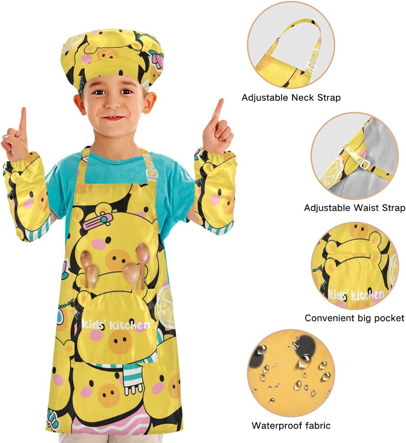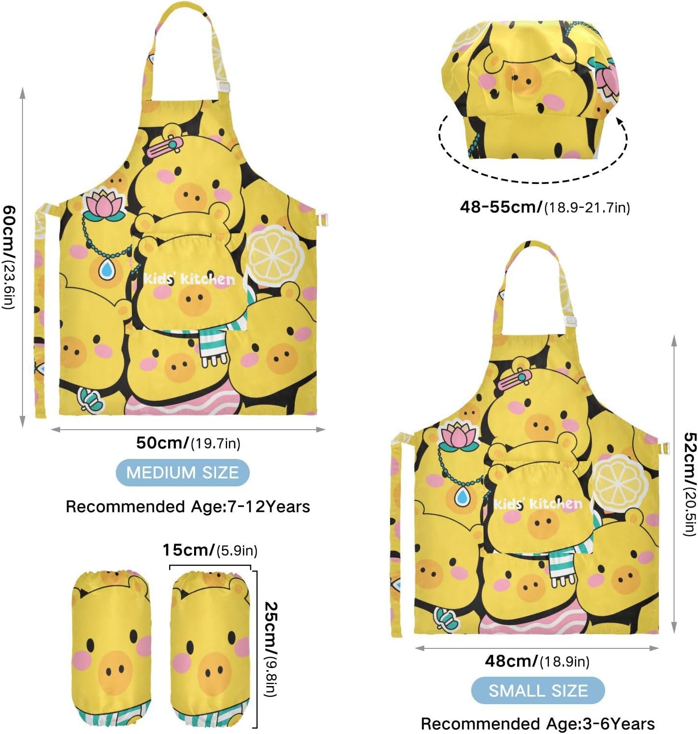 Suggerimento: M: 50 x 59,7 cm (età 7-12 anni). La taglia può adattarsi alla maggior parte dei ragazzi e delle ragazze. Si prega di scegliere la taglia giusta in base alle dimensioni specifiche. Materiale ecologico: il tessuto è impermeabile, leggero, accogliente, stampa adorabile alla moda, ecologico per la pelle dei bambini. Impermeabile Caratteristica: Realizzato in poliestere, il grembiule per bambini è impermeabile. I bambini possono sentirsi liberi di imparare a cucinare e dipingere come preferiscono e possono mantenere i loro vestiti puliti allo stesso tempo. Applicazioni versatili: ideale per i bambini per proteggere i vestiti durante la cottura, il giardinaggio, la cottura, il gioco, la produzione di caramelle, la cottura di torte, tele, arti e mestieri, lezioni in classe, faccende domestiche. Può anche essere una grande decorazione per costumi di Halloween, oggetti di scena teatrali, feste di compleanno, eventi carini, feste a tema, riunioni di famiglia e molto altro ancora. Facile da pulire: il nostro prodotto è impermeabile e a prova di fuoriuscite. Basta strofinare, lavare in lavatrice e lavare a mano.