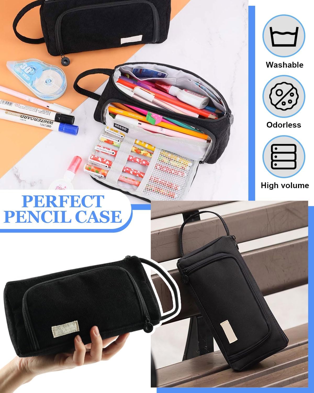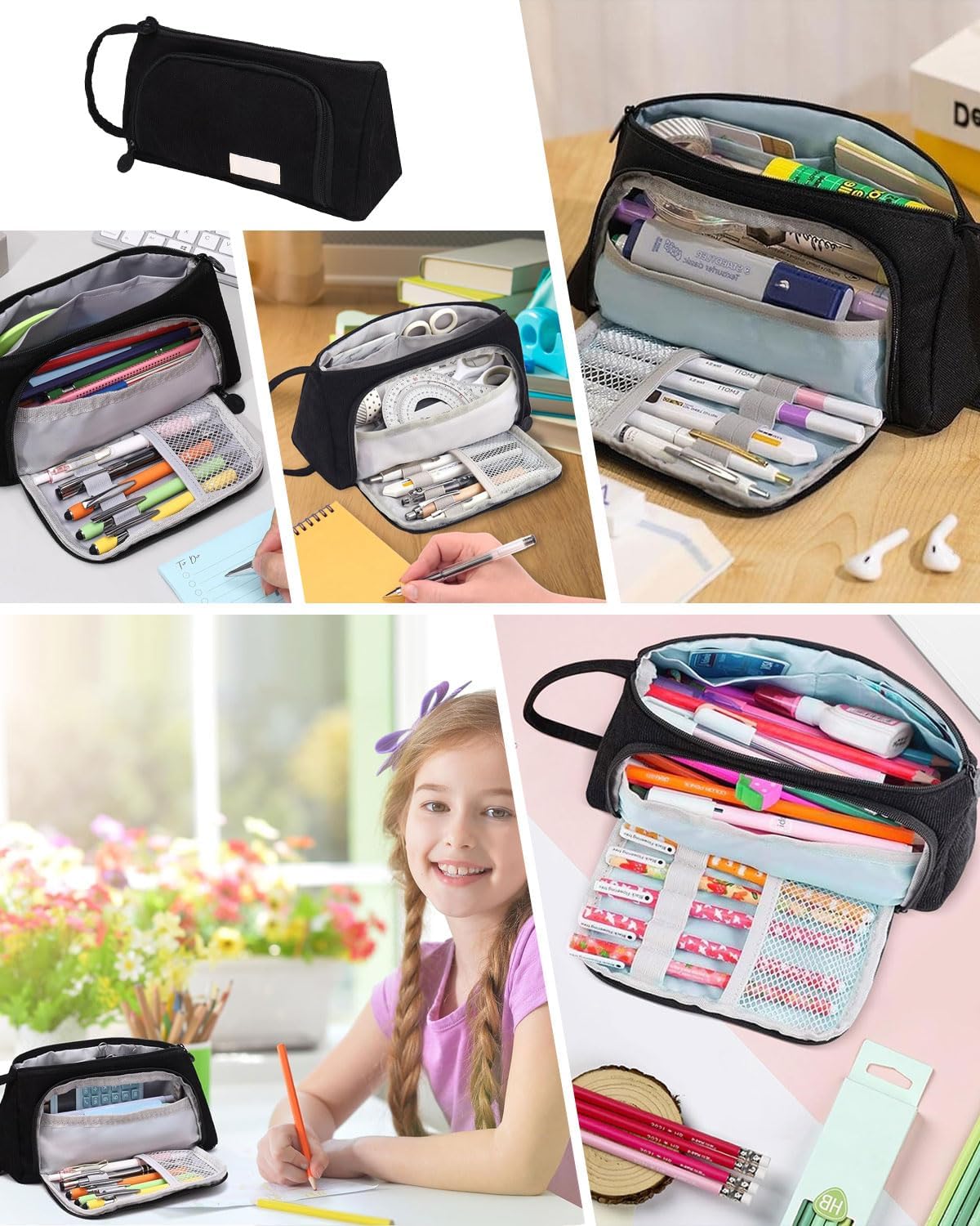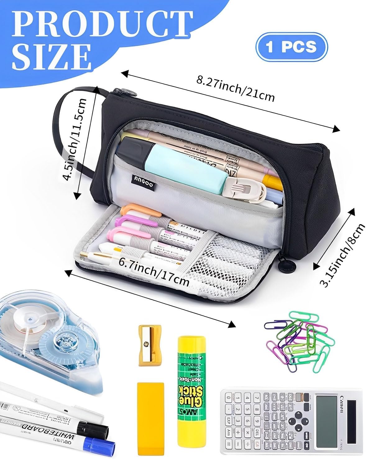 Design pratico e unico: design speciale per questo astuccio per separare e organizzare i tuoi diversi oggetti. Molteplici tasche a bustina possono contenere biglietti da visita, biglietti da visita e note adesive. Lo scomparto principale può essere aperto in modo ampio e semplice, permettendoti di vedere e recuperare rapidamente tutto ciò che contiene. Astuccio Grande Capacità- Questo astuccio scuola media è dotato di 4 scomparti in totale, include 2 grandi tasche, 2 tasche a rete. L'astuccio 3 scomparti vuoto può contenere facilmente penne, matite, pennarelli, temperamatite, gomme, forbici, clip, righelli, calcolatrice, colla, set di geometrie e altri elementi essenziali di classe. Materiali premium: questo astuccio matite personalizzato è realizzato con materiali di tela di alta qualità, estremamente resistente ma facilmente lavabile. Le cerniere robuste e l'ampio angolo delle cerniere assicurano una protezione aperta / chiusa e stretta. Astuccio scuola perfetto per elementare medio bambina. Multi-funzionale- Questo astuccio scuola ragazze può adattarsi a molteplici esigenze pratiche per persone diverse, una custodia per sacchetti di matita e un organizzatore di cancelleria per studenti scolastici, un portapenne per articoli da ufficio, una borsa per il trucco adatta a cosmetici / articoli da toeletta, e può anche essere utilizzato come custodia da viaggio, cassetta degli attrezzi, borsa per cellulare e organizer per piccoli accessori. Garanzia- Questo portapenne astuccio è un regalo perfetto e decente per gli studenti universitari, delle scuole superiori e delle scuole elementari per la loro giornata di scuola aperta, corsi di formazione ed esami, per attirare hobbisti o artisti per portare le loro matite da disegno ovunque.