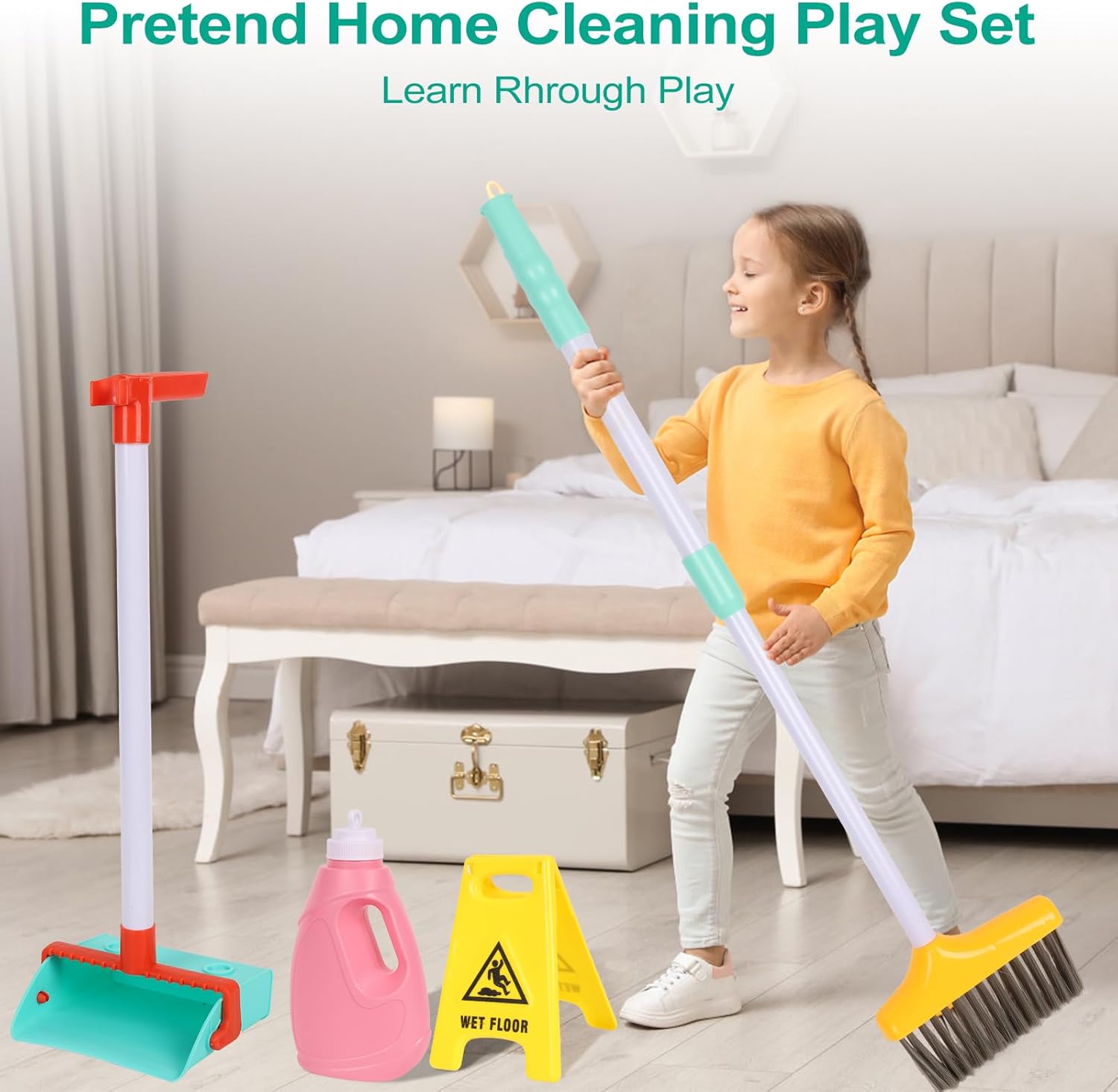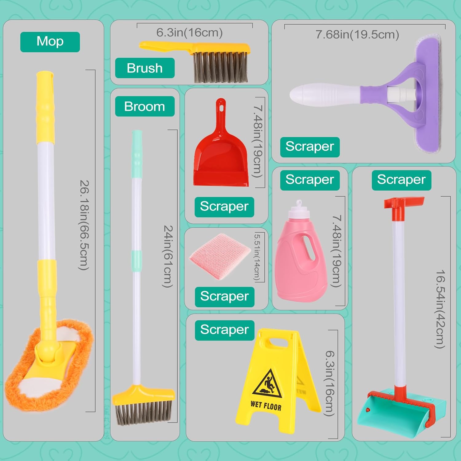 Set da gioco con strumenti di pulizia per bambini - Kit di pulizia Greyghost Kids da 14 pezzi che include spazzolone regolabile, scopa, polvere, panni per la pulizia, bottiglia di sapone giocattolo e mini bidone della spazzatura per un gioco realistico. Promuovi l'indipendenza, la responsabilità e le abilità essenziali della vita attraverso l'apprendimento a mani libere in stile Montessori per bambini dai 3 anni in su Spazzola e spolverino regolabili a misura di bambino - Questo kit di pulizia per la casetta dei giochi è progettato ergonomicamente per creare strumenti di pulizia più adatti alle piccole mani del bambino. E gli strumenti sono espandibili, permettendo loro di iniziare il gioco con i loro grandi amici. Durante il gioco, i bambini imparano a pensare e a risolvere problemi, a funzionare come una squadra e a comunicare in modo efficace. SETM Montessori Toys con materiale sicuro - Il giocattolo per bambini Greyghost e il set di pulizia sono realizzati in materiale ABS sicuro e di alta qualità, hanno superato il test CPSC, è un giocattolo sicuro per far divertire il tuo bambino, lascia che cresca sicuro e felice. Regali per l'apprendimento precoce per ragazzi e ragazze ---- Nella vita quotidiana, neonati e bambini piccoli sono fondamentali nell'imitare i loro genitori. Con questo set di giocattoli per la pulizia, i genitori potranno aiutare i propri figli a imparare la vita accompagnandoli nella loro igiene. Allo stesso tempo, i bambini possono comprendere l’importanza di mantenere un ambiente pulito e luminoso, che permetta loro di sviluppare buone abitudini. Regali perfetti per i tuoi piccoli - Attraverso l'apprendimento pratico e i giochi interattivi, migliora l'indipendenza, il senso di responsabilità e le abilità di vita di base dei bambini, rende le attività di pulizia coinvolgenti e divertenti. È il regalo perfetto per il compleanno, il rientro a scuola e il Natale per ragazzi e ragazze. Portalo con te e gioca con i tuoi bambini. Se riscontri problemi di qualità o prodotti mancanti, contattaci e ti forniremo una soluzione entro 24 ore.