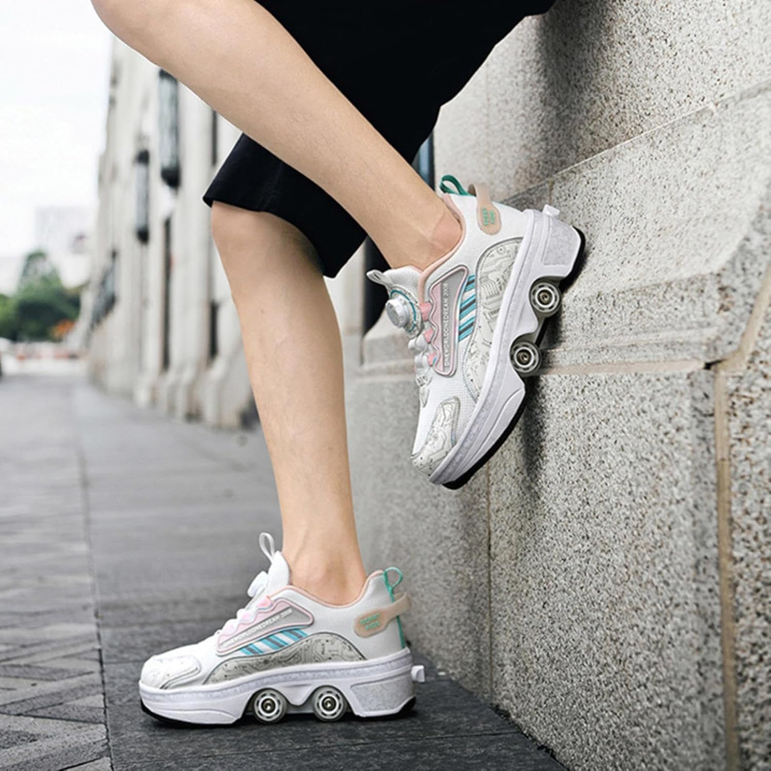 GRFIT Scarpe con Ruote Scarpe Multifunzionali 2 in 1 a 4 Ruote con Pattini a Rotelle Scarpe Deformanti per Uomo Donna e Bambino, 36