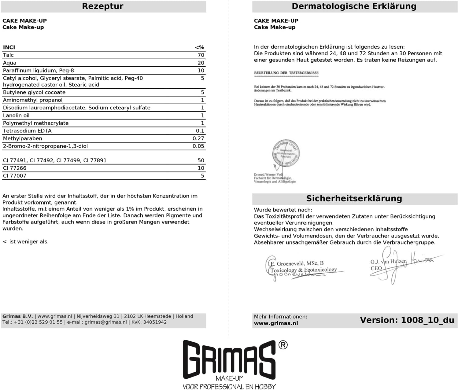 Trucco professionale compatto con finitura opaca vellutata – popolare in teatro, cinema e fotografia Altamente pigmentato, opaco e facile da applicare – Base o finitura perfetta per look creativi Dermatologicamente testato, senza profumo e senza glutine – Adatto anche a bambini, mucose e pelle sensibile A base d'acqua e ad asciugatura rapida – Tiene in modo affidabile anche sotto le calde luci del palcoscenico o nell'uso quotidiano Utilizzo versatile per truccatori, Halloween, cosplay, carnevale, SFX, trucco per bambini e altro ancora