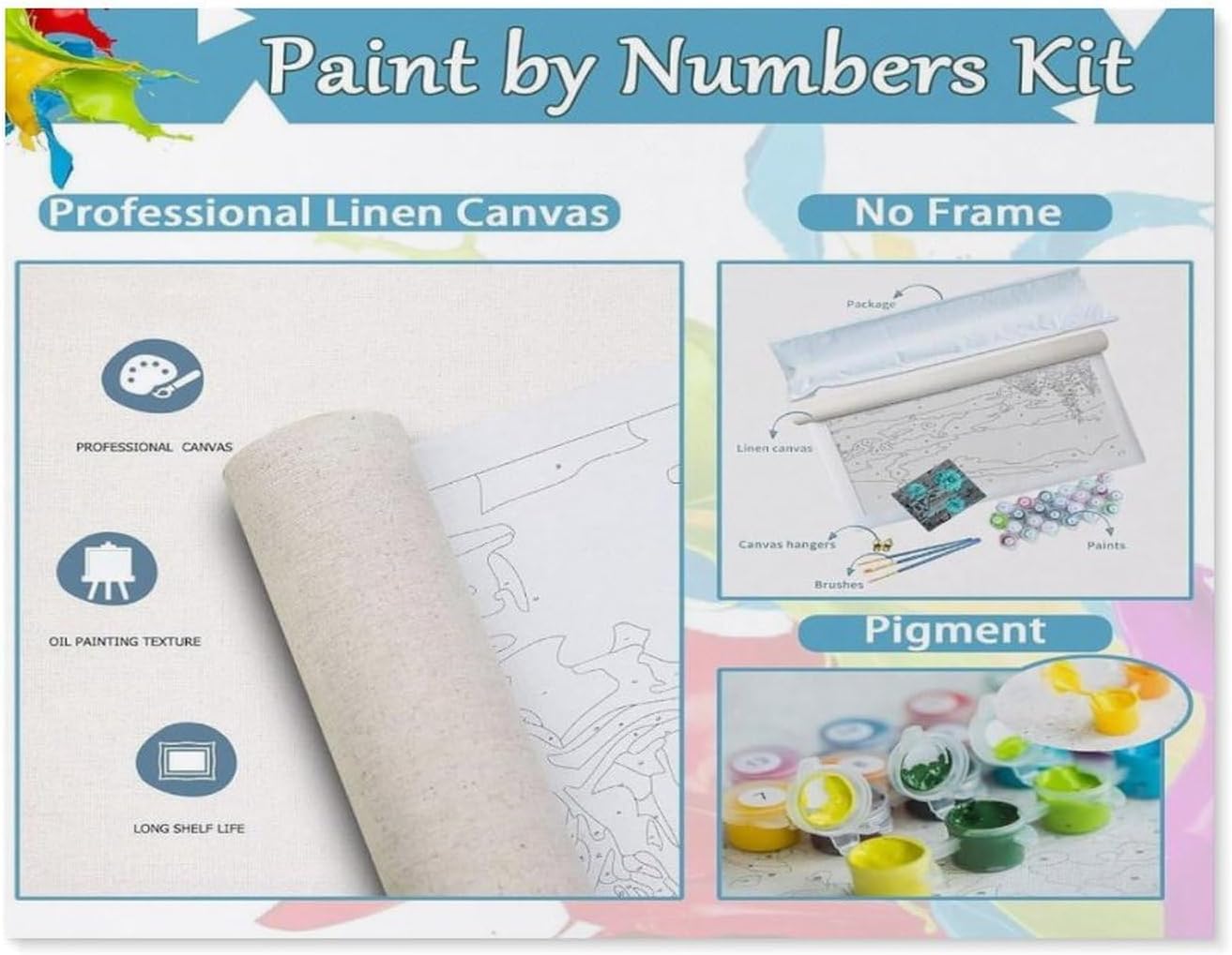 【Vous obtiendrez】 Il kit di pittura par numéros comprende 1 toile texturée pre-impremée (sans cadre), 1 jeu de pigments acryliques, 2 pinceaux professionnels. Vita della tela di pittura étendue: (20x30 cm) 7,8x11,8 pollici. Puoi usare liberamente la tua creatività sul colore della tela ad alta definizione Facile da peindre: i tuoi faites uniquement corrispondono les numéros de peinture et les chiffres sur la toile pour remplir la peinture. Peignez par numéros de couleur, terminaz uno par uno. Il dipinto per numeri è conveniente per tutti i livelli, sia per adulti, bambini e debuttanti. Remplissez la couleur en fonction des chiffres, you navez besoin daucune compétence en peinture. Décoration dintérieur tendence et meilleur cadeau: pittura per numeri. Il numero distintivo del rend très facile à sortir. Molto piacevole! Questo è un ottimo cadeau per un anniversario, i cadeaux de decoration de Noël. 【Rilassante e gioioso】 Questo prodotto ti aiuta a rilassarti e ad alleviare lo stress durante il tempo libero, beneficiando di una semplice creazione di un'opera incroyable. Un progetto che sia anche divertente e realizzato con qualcosa che ti riporti in vita in una nuova esperienza.