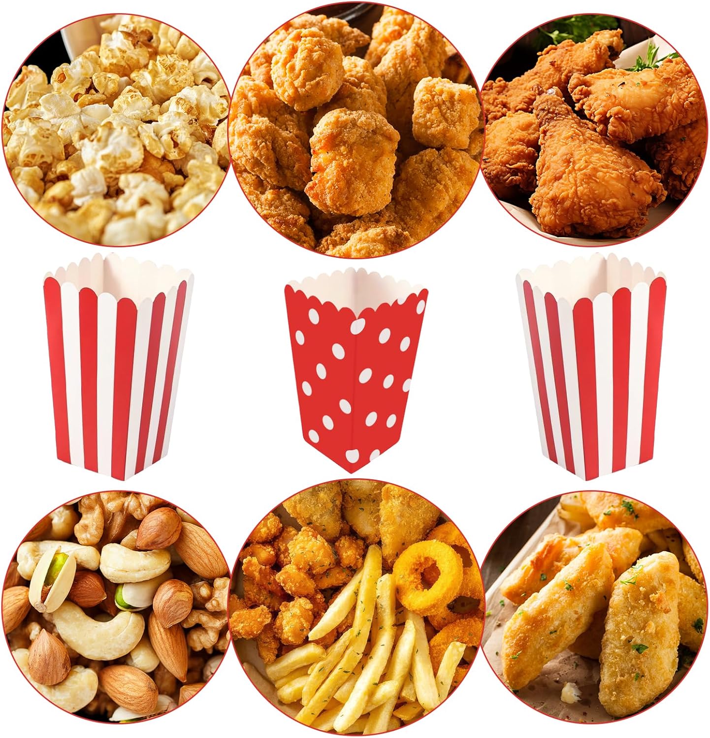 【Set di sacchetti per popcorn di alta qualità】 Il nostro set contiene 40 sacchetti per popcorn in due design classici: 20 con strisce rosse e 20 con punti bianchi. Perfetto per serate di cinema, feste o occasioni speciali. Il look elegante aggiunge un tocco di fascino retrò a qualsiasi evento.,Materiale per alimenti: realizzati con carta alimentare di alta qualità, i nostri sacchetti per popcorn sono sicuri, inodori e privi di additivi fluorescenti. Il materiale spesso previene le infiltrazioni di olio e mantiene gli snack freschi e croccanti.,Facile da piegare e stabile da usare: i sacchetti si appiattiscono e si piegano senza sforzo senza colla. Il design sofisticato con bordi ondulati garantisce stabilità e previene i graffi. Possono essere facilmente impilati e conservati per risparmiare spazio.,Versatile: oltre ai popcorn, i sacchetti sono ideali anche per dolci, biscotti, patatine, crocchette di pollo o altri snack. Sono un'ottima aggiunta a feste di compleanno, feste a tema cinematografico, picnic, eventi scolastici o feste di Natale. 【Perfetti per qualsiasi festa】 Con il loro classico design retrò e le dimensioni convenienti, questi sacchetti per popcorn sono un must per ogni occasione. Che si tratti di una serata al cinema a casa, di una festa di compleanno o di una festa a tema circense, danno al tuo evento quel qualcosa in più