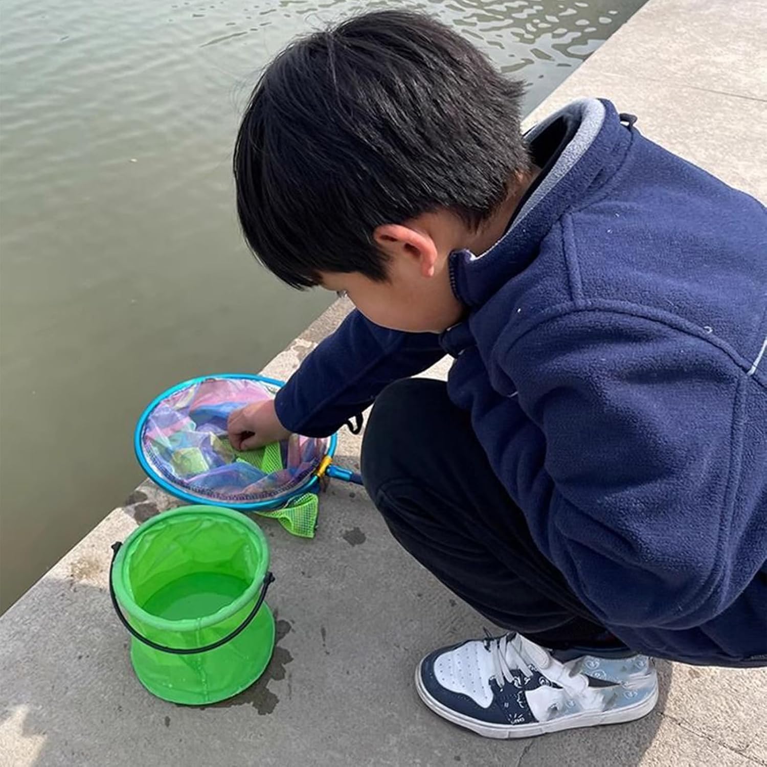 REGOLABILE E PORTATILE: grazie al telaio estensibile, questo retino è versatile in acqua, raccoglie efficacemente lo sporco e consente una facile regolazione della lunghezza e facile da riporre dopo l'uso. Pratica maneggevolezza: manico telescopico in legno extra lungo (max. 120 cm) consente una pesca sicura a distanza. La struttura leggera riduce l'affaticamento durante l'uso prolungato sulle zone costiere. Design che favorisce l'apprendimento: ottimizzato per scopi didattici con ampia apertura del retino e chiusura a cordino, cattura precisa grazie alla maglia fine e al tessuto a rete ventilato creano esperienze di apprendimento interattivo durante le attività educative all'aperto in natura. Conservazione salvaspazio: grazie al design pieghevole ottimizzato per lo spazio, il guadino è facile da trasportare e riporre, ideale per avventure all'aria aperta, offre allo stesso tempo una generosa capacità durante l'uso Rete per bambini progettata con asta leggera in fibra di carbonio e bordi lucidati, garantisce una scorrevolezza sicura per i giovani utenti