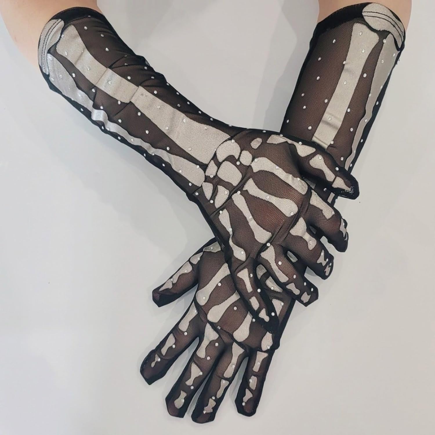 Realizzati in tessuto poliestere traspirante, questi guanti leggeri offrono comfort prevenendo l'accumulo sudore e le irritazioni durante l'uso prolungato Ottieni un audace design a scheletro punk con tecnologia stampa, questi guanti Halloween mantengono la struttura ossea e resistono sbiadimento per stili Halloween Perfetto per appassionati Halloween, amanti della punk e i giocatori ruolo che cercano accessori originali per migliorare i loro costumi o i look streetwear quotidiani Ideale per feste Halloween, concerti punk, eventi cosplay e riunioni a tema in cui lo shock visivo sorprendente incontra la funzionalità pratica La vestibilità unisex flessibile adatta adolescenti e adulti, mentre motivo scheletrico dettagliato aggiunge un fascino spaventoso a qualsiasi dichiarazione alternativa
