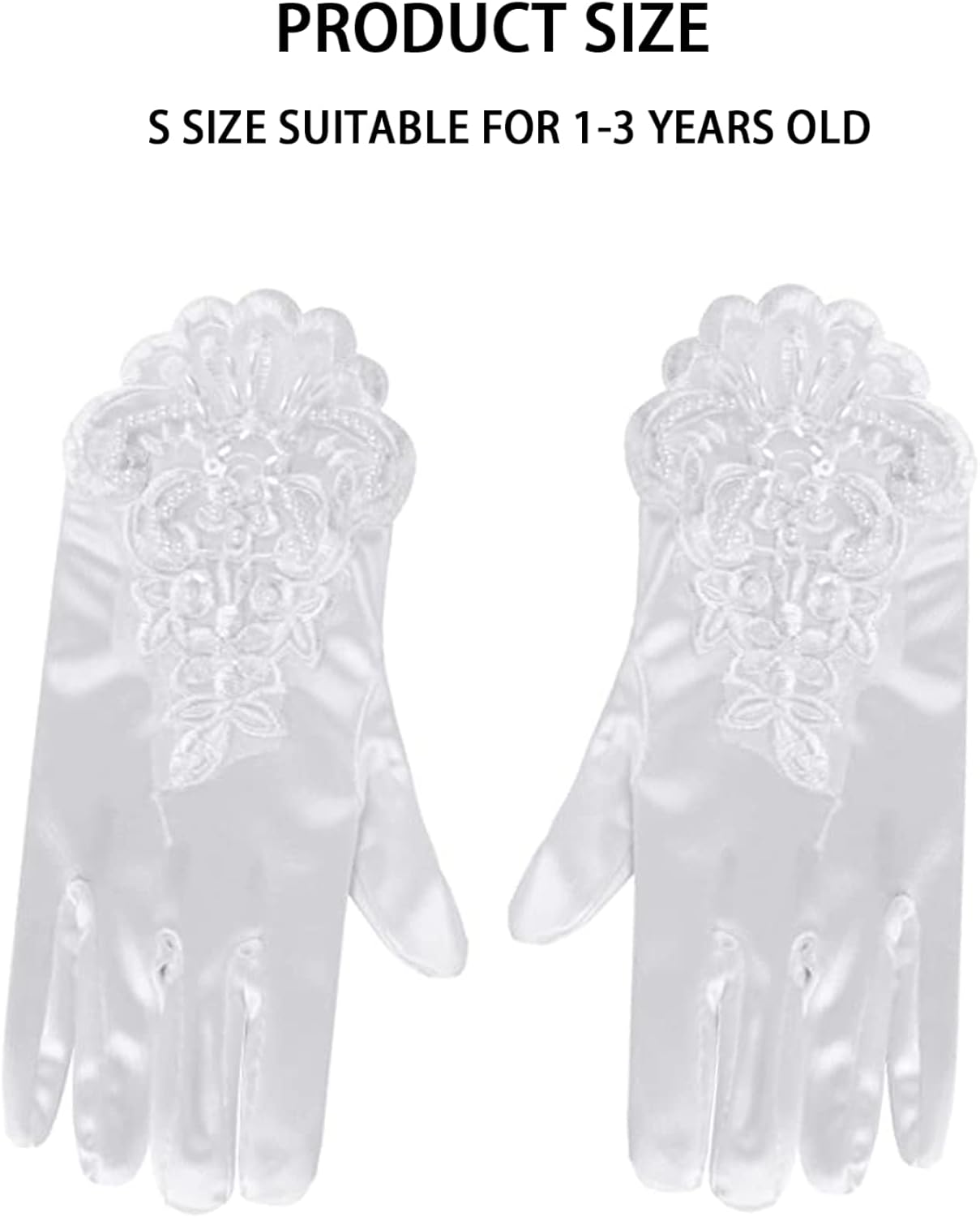 Guanti da principessa in costume fantasia: non limitati ai guanti da abito da sposa e queste scarpe da polso, adatti per le bambine. Materiale premium: i guanti da principessa sono realizzati in raso di alta qualità, delicati sulla pelle e traspiranti. Il materiale liscio li rende morbidi e comodi al tatto. Guanti elastici e leggeri, adatti alle ragazze da indossare tutto il giorno. Taglia: S: adatto per bambine di 1-3 anni, M: adatto per bambine di 4-7 anni, una buona elasticità elimina la sensazione di tensione. I guanti da comunione per ragazze sono buoni in elasticità, guanti belli e comodi, il bambino sarà più disposto a indossarli. Squisiti guanti da principessa: i guanti da ragazza di fiori sono con bellissimi ricami in pizzo floreale candito, aspetto da principessa e carino, abiti da ragazza facili da abbinare per occasioni speciali, matrimoni, spettacoli teatrali o formali. Principessa e un angelo. VANTAGGIO: i nostri guanti da principessa possono abbellire tutte le ragazze nelle occasioni importanti e formali e offrire un look fantastico a tutte le ragazze. Perfetto per la santa comunione, festa di compleanno, serata, spettacolo teatrale, matrimonio, Pasqua, Halloween, feste in maschera, ballo in maschera, cosplay, tea party, feste in giardino, fotografia o occasioni formali.