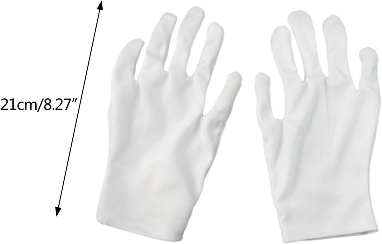 Comodi: questi guanti Pallbearer sono realizzati in cotone, sono traspiranti, comodi da toccare e indossare. Abbastanza e durevole, riutilizzabile e lavabile, non danneggerà la pelle delle mani. Design pratico: i morbidi guanti bianchi e il design delle dita ti fanno sembrare gentile, pratico e utile. Misura dei guanti: la dimensione dei guanti del costume bianco è lunga circa 21,6 cm, la dimensione in pollici, misura adatta per la maggior parte delle persone, anche buoni oggetti di scena in costume per spettacoli teatrali. Ampia gamma di usi: adatto per uniformi, feste a tema Halloween, cosplay a tema mago, guardie, sfilate, catering, facchino, banchetti e altro ancora. I guanti bianchi possono essere utilizzati anche per ispezionare casa, gioielli o oggetti d'antiquariato.