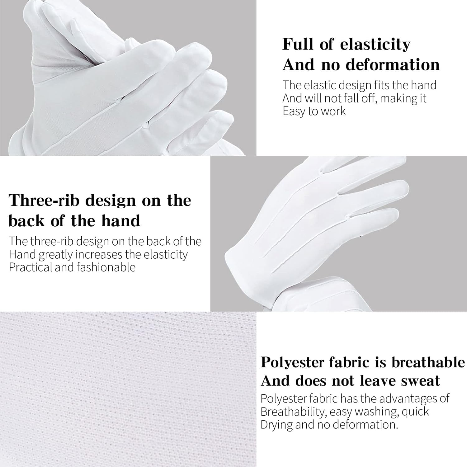 Guanti da Cerimonia Bianchi di Cotone Nylon Morbido e Traspirante con Bottone per la Polizia Abito da Sera Formale, Banchetti Corti, Esaminando Gioielli (3 cuciture design)