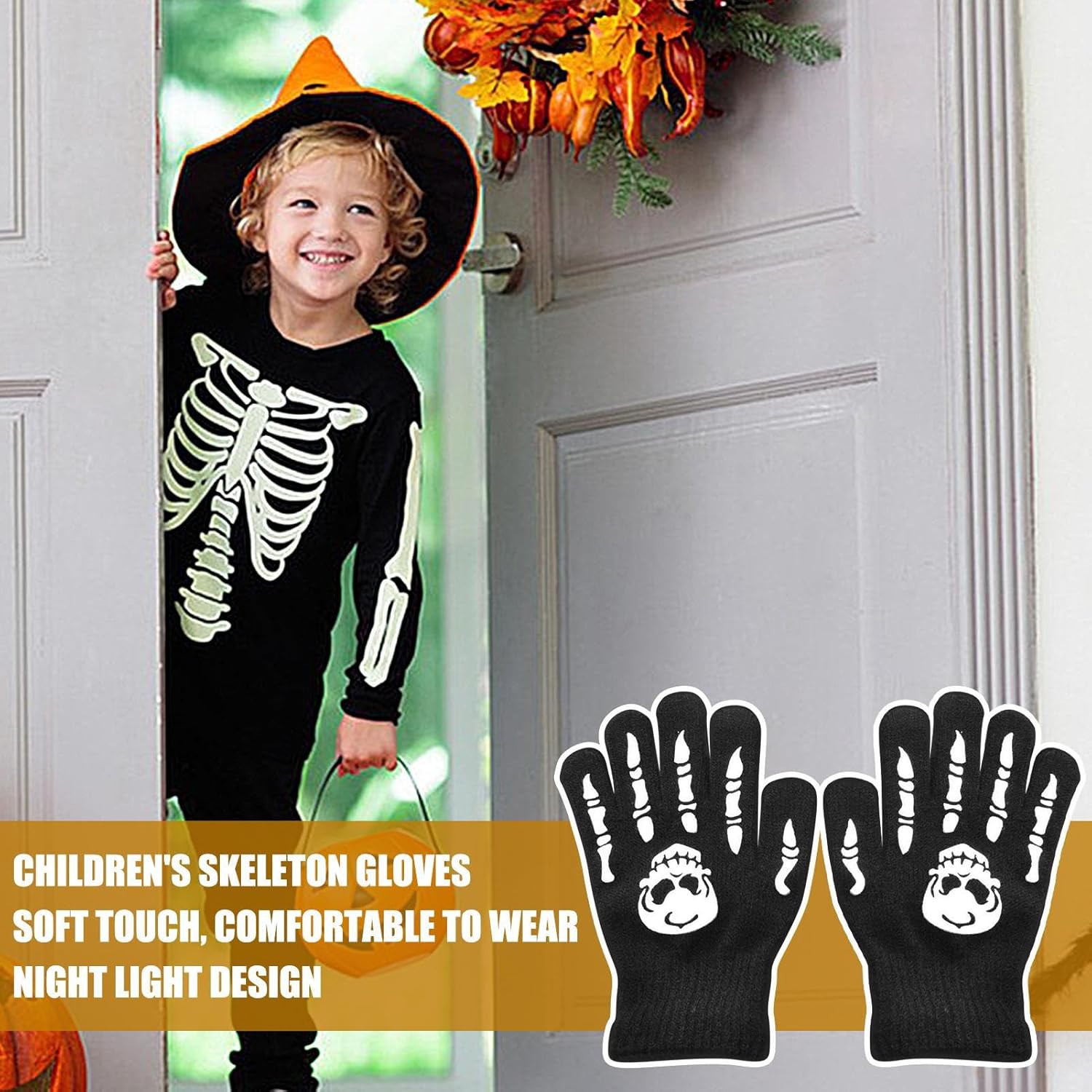 Guanti da ciclismo per bambini, con teschio, si illuminano al buio, con dita intere, guanti caldi per Halloween, per corsa, esercizio, escursionismo, attività all'aperto