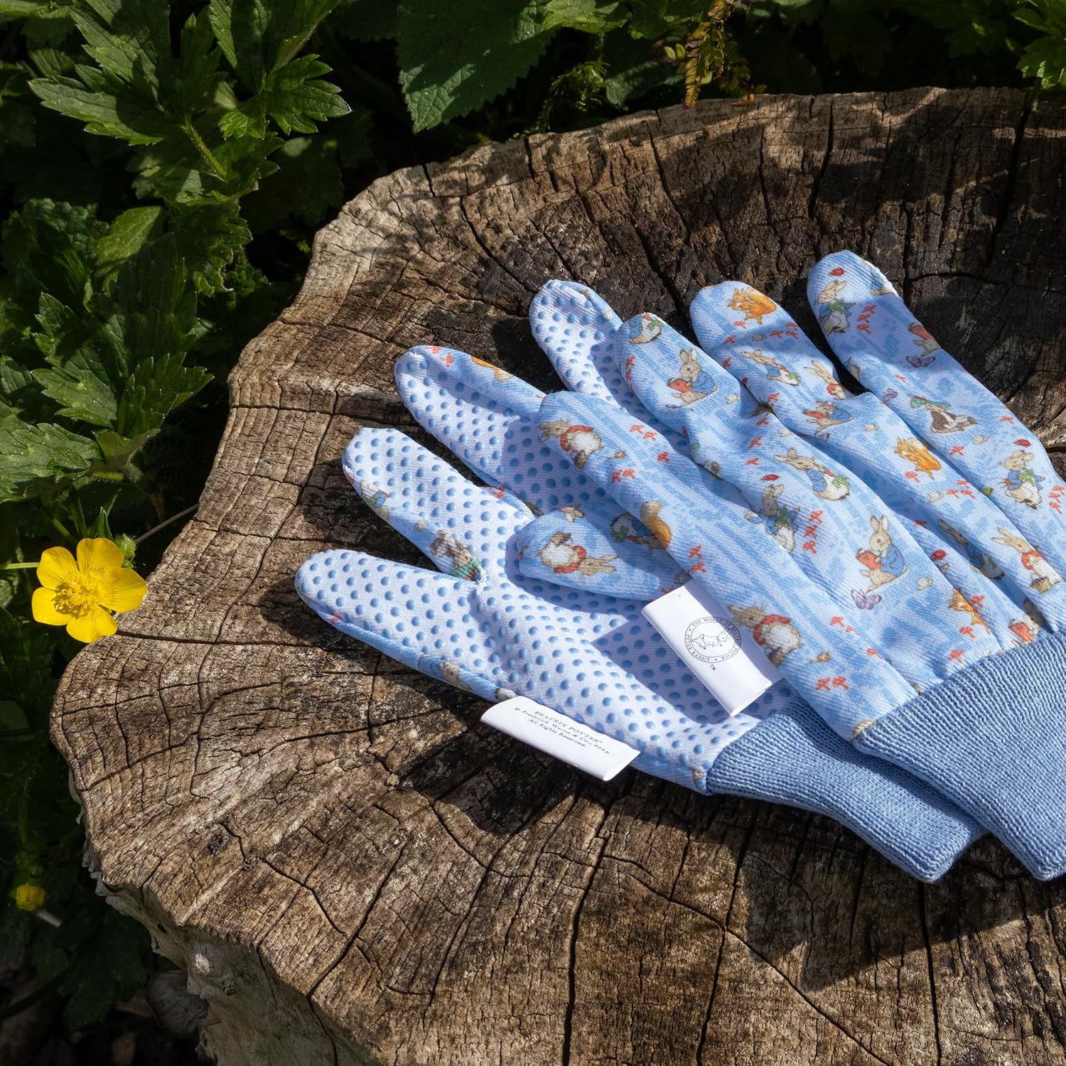 PERFETTI PER I BAMBINI PIÙ PICCOLI: questi guanti da giardinaggio luminosi e allegri sono della taglia perfetta per i bambini piccoli. I guanti sono decorati con bellissime illustrazioni dei personaggi di Peter Rabbit e sono disponibili in una taglia adatta a bambini dai 5 anni in su. DESIGN DUREVOLE: Questi adorabili guanti da giardinaggio per bambini sono realizzati in un resistente misto cotone e nylon e hanno impugnature imbottite antiscivolo sul palmo e sulle dita, nonché comodi polsini elastici per tenere sporco e detriti fuori dal guanto. I guanti possono essere facilmente lavati dopo l'uso per mantenerli puliti. Divertimento all'aria aperta: incoraggiare i bambini a trascorrere il tempo libero promuovendo le attività all'aria aperta e l'interesse per il giardinaggio e la natura. Questi guanti da giardinaggio sono perfetti per proteggere le mani dei bambini mentre scavano, piantano e giocano all'aperto. REGALO CON LICENZA UFFICIALE: le illustrazioni dei personaggi di questi vivaci e allegri amori di giardinaggio per bambini lo rendono un regalo perfetto per i fan di Peter Rabbit. I guanti sono un regalo con licenza ufficiale di Beatrix Potter.
