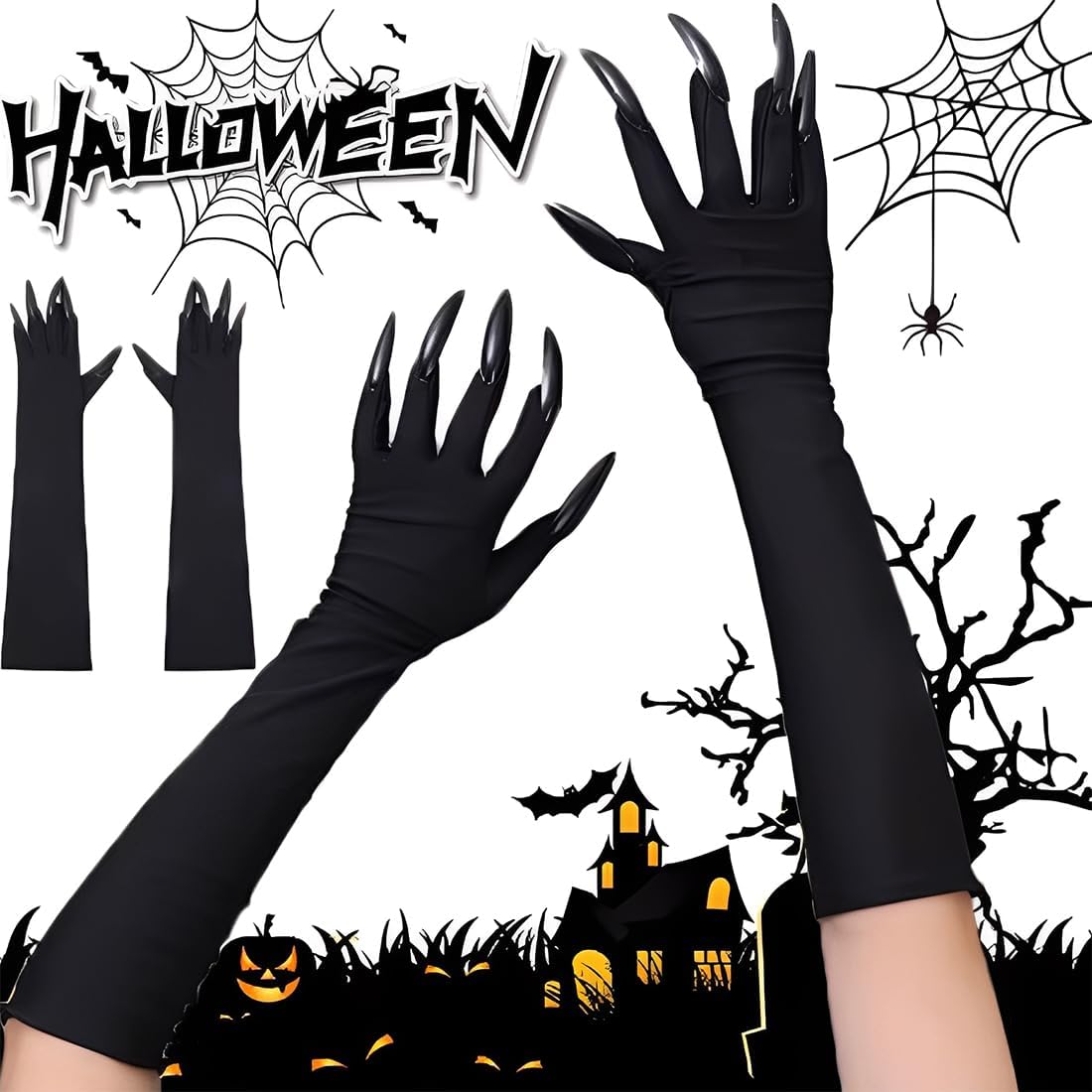 MATERIALE DI QUALITÀ PREMIUM: i guanti a forma di zampa di Halloween sono realizzati in poliestere e plastica. Nuovi di zecca, di alta qualità, morbidi e resistenti, si adattano al braccio e non cadono facilmente. Adatto per feste e spettacoli, molto realistico e interessante. DESIGN ECCELLENTE: Le unghie lunghe possono creare un'atmosfera spettrale alle feste. Sono flessibili e si adattano alla maggior parte delle persone. Questo è esattamente il tema spettrale di Halloween. Non si danneggiano facilmente e sono adatti a una varietà di persone. COMODI DA INDOSSARE: questi guanti hanno polsini elastici, perfetti per la maggior parte delle forme delle mani, facili da indossare e da togliere e fissano i guanti, non facili da cadere, comodi da indossare. VERSATILI: i guanti per unghie sono adatti a molte persone. Puoi indossarli nei giochi di ruolo e nei giochi di ruolo in costume. Possono renderti più affascinante. Regalo perfetto: può anche essere un bellissimo accessorio per la tua collezione o un regalo perfetto per la tua famiglia o i tuoi amici più cari. È perfetto per feste in maschera, carnevale, Natale, Pasqua, Halloween o altre feste.