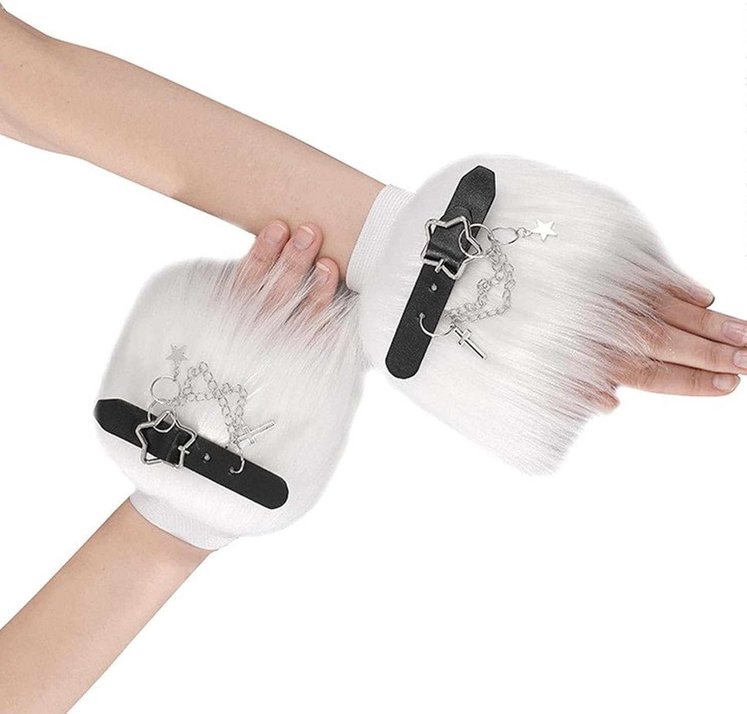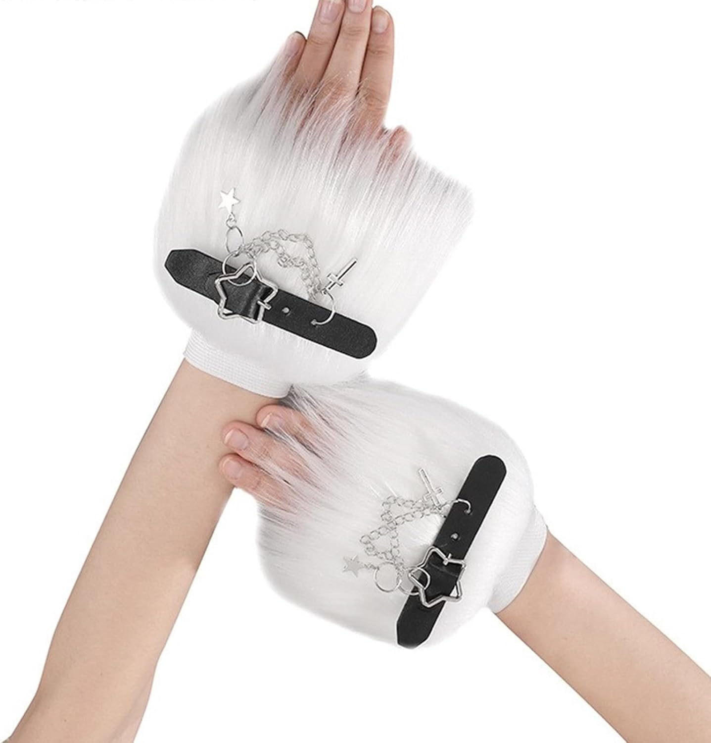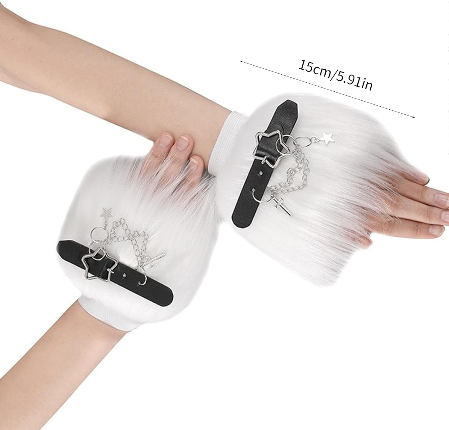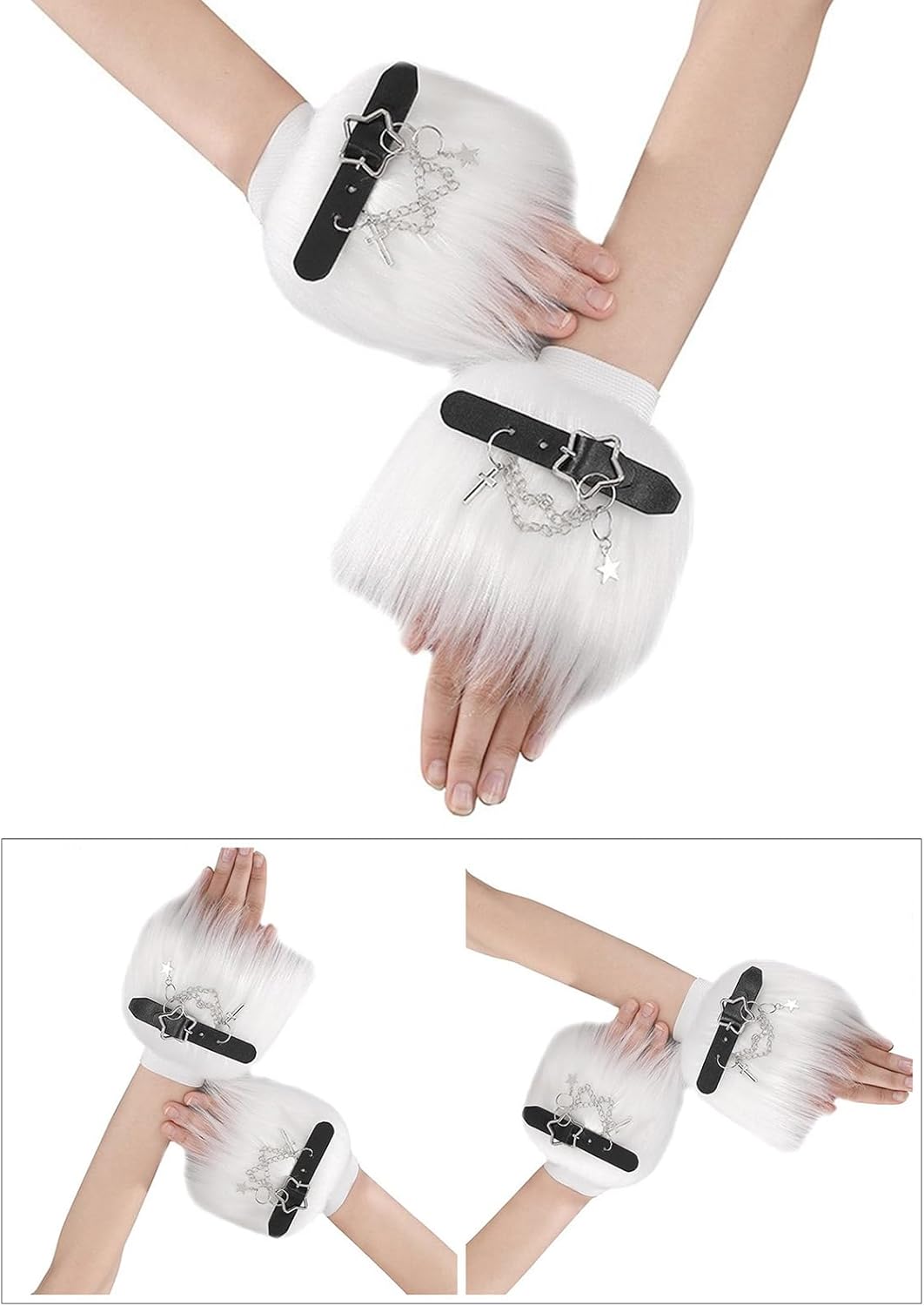 Guanti da polso da donna con maniche moderne e sottocultura guanti senza dita per feste di Halloween Caratteristiche: Guanti senza dita scaldamuscoli. Sono dotati di un ciondolo peloso e stella alla moda che aggiunge cultura solare a qualsiasi outfit. Ideale per costume di Halloween. Fai una dichiarazione audace con questi bellissimi guanti senza dita per le donne che amano mostrare il proprio gusto attraverso la moda. Specifiche tecniche: tessuto. Dimensioni: circa 15 cm. Colore: Bianco/Nero La confezione include: 1 paio di scaldamuscoli. Nota: 1. Si prega di considerare un margine di errore di 1-2 cm dovuto alla misurazione manuale. 2. A causa delle differenze tra i diversi monitor, l'immagine potrebbe non riflettere esattamente il colore dell'articolo.