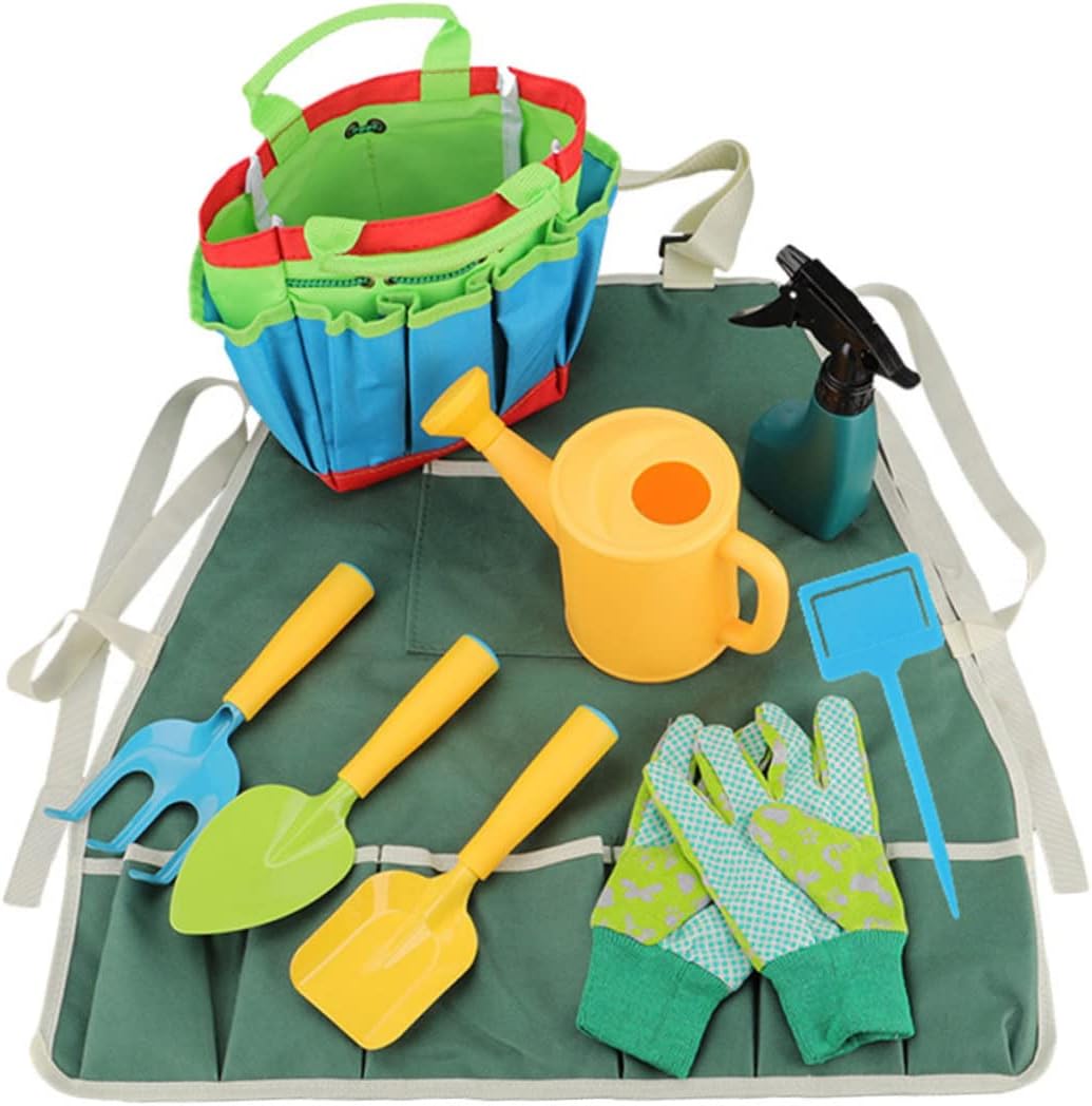 Set da gioco con pala da : completo di attrezzi, annaffiatoio, pala, borsa e rastrello, kid shovel Giocattoli con attrezzi da giardino: giocattoli da giardinaggio simulati, fanno ai bambini un'esperienza divertente, set da gioco per il giardinaggio per bambini Giocattoli da giardinaggio per bambini: sono realizzati in robusto acciaio inossidabile e materiale plastico per l'uso, attrezzo da giardinaggio Giocattolo con attrezzi da giardinaggio e pala per bambini: il set include un bollitore per l'irrigazione, una pala a punta, un rastrello, una pala larga e una borsa per il trasporto, set da gioco con attrezzi da giardinaggio. Giocattolo da piantare: piccoli attrezzi da giardinaggio pratici per l'arte del giardinaggio domestico, la piantagione di bonsai, ecc., giocattoli da piantare per bambini