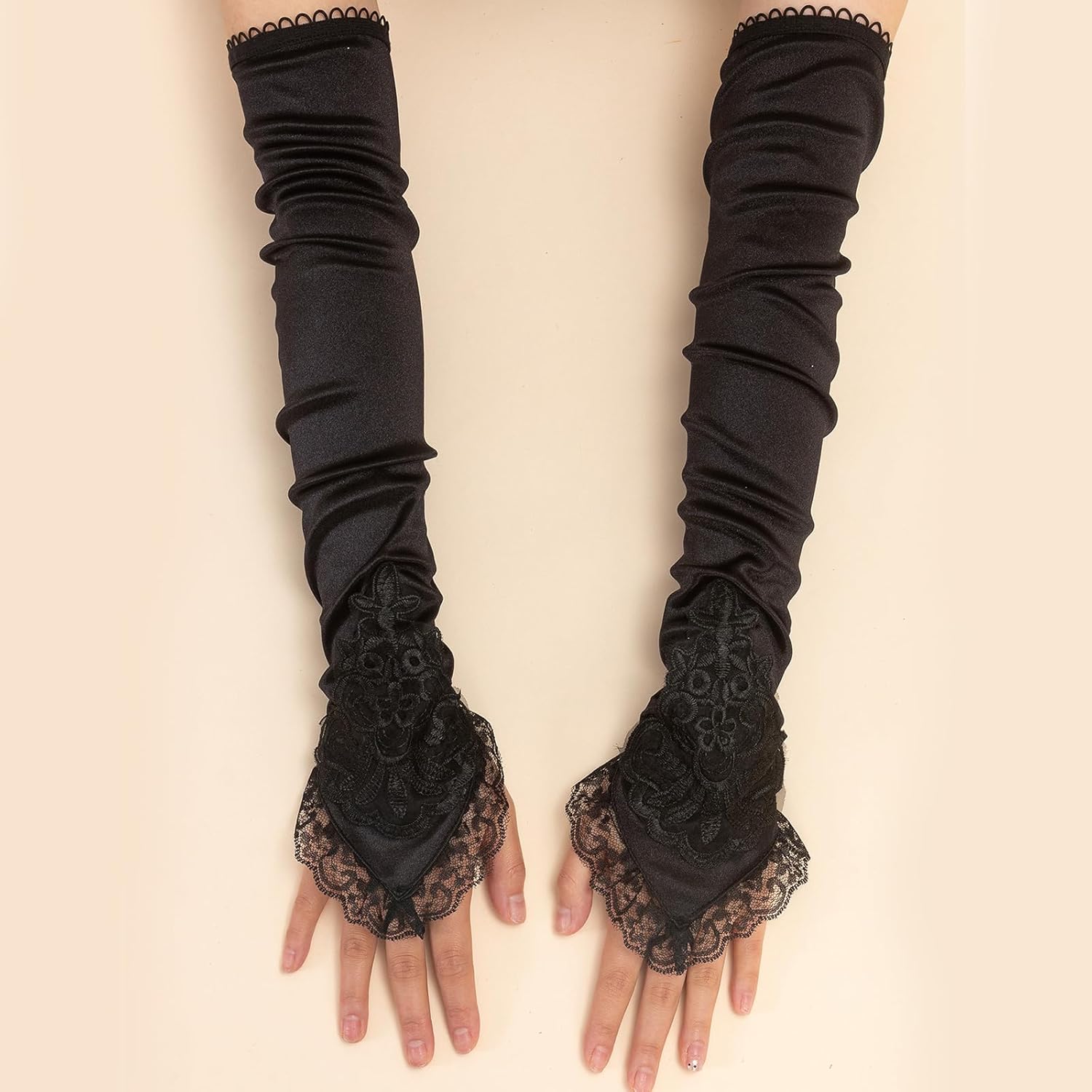 Caratteristiche: Guanti per Halloween in nero, adatti per l'abbinamento con vari costumi di Halloween, aggiungendo mistero e personalità. Composto da componenti di buona qualità, morbido e confortevole, non sbiadisce facilmente. I guanti sono di lunghezza moderata, forniscono calore senza compromettere la flessibilità della mano. Adatto per gli appassionati di Halloween di varie età, compresi bambini, adolescenti e adulti. Feste di Halloween, riunioni a tema, feste in costume, giochi di ruolo e varie attività di celebrazione di Halloween. Specifiche tecniche: Colore: nero. Dimensioni: 50 cm. Componente: raso con raso e lacci Nota: 1. Si prega di considerare un margine di errore di 1-2 cm dovuto alla misurazione manuale. 2. A causa delle differenze tra i diversi monitor, l'immagine potrebbe non riflettere esattamente il colore reale. La confezione include: 1 paio di guanti per costume di