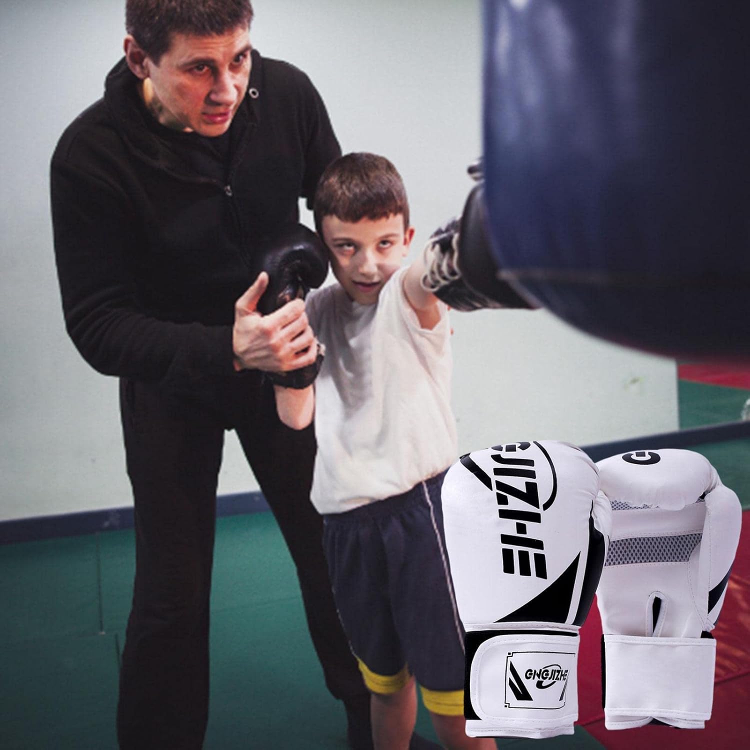 [Vasta applicazione] I guanti ideali per la palestra o la palestra, i guanti da boxe per bambini sono adatti per tutti i livelli di boxe, Muay Thai e kickboxing, progettati per l'allenamento della boxe. [Materiale PU di fascia alta] Realizzato in eccellente pelle PU, i guanti Muay Thai sono durevoli, forti, usurati, resistenti e inodori. [Proteggi efficacemente le tue mani] I guantoni da boxe per bambini aiutano ad assorbire e recuperare da impatti ripetuti, ampio design del braccialetto, un perfetto allineamento del polso e una vestibilità dedicata. [Artigianato raffinato] I guantoni da boxe per bambini non sono facili da deformare o sbiadire. È dotato di una spessa imbottitura in EVA, che sono realizzati con apparenze lisce senza burrs. [Buoni regali di compleanno] I guantoni da boxe sono adatti per l'uso in tutto il corso di allenamento, regali pratici per i bambini che praticano boxe e contribuiscono a una maggiore precisione di sciopero.