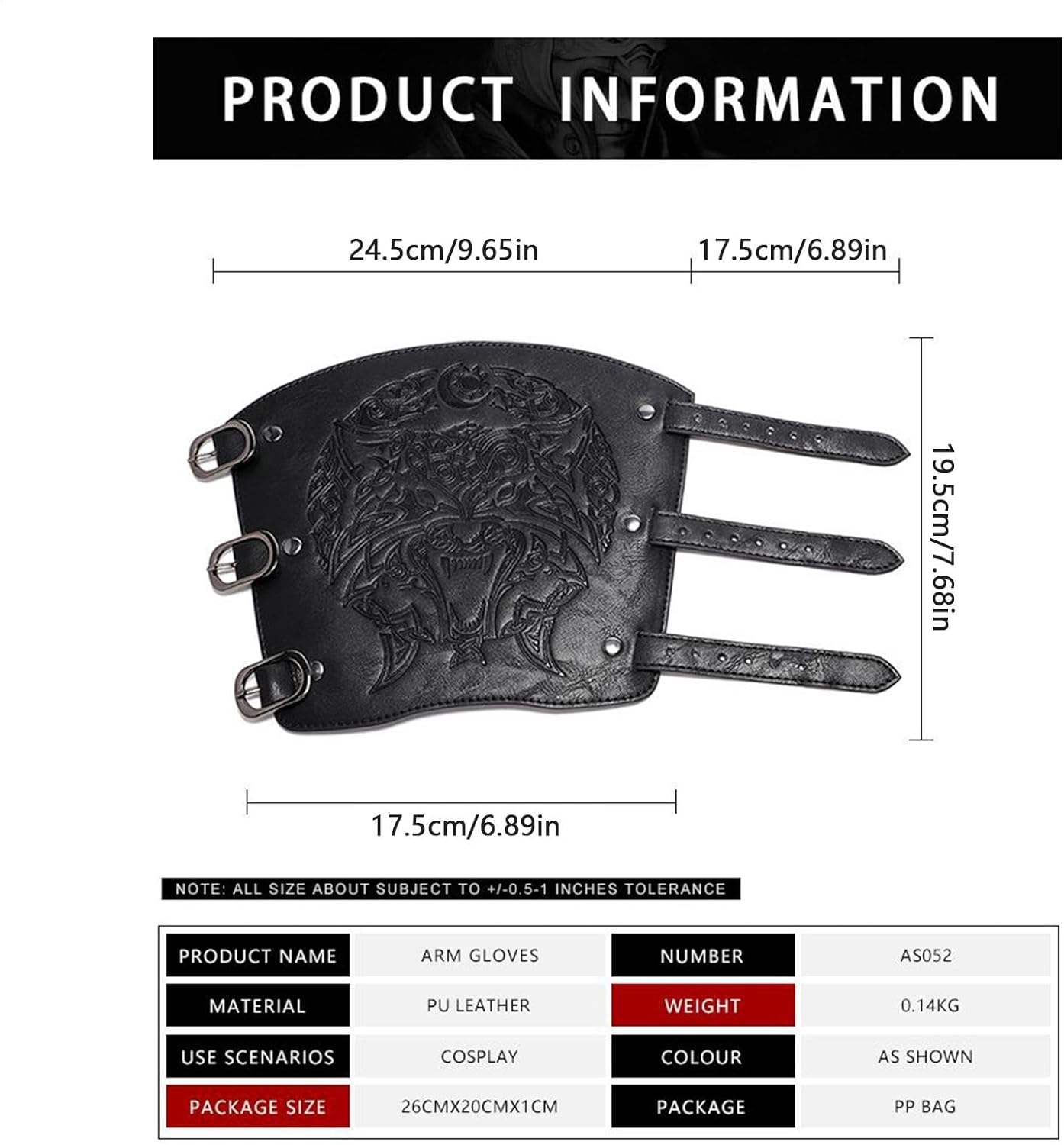 Migliora il tuo look medievale con bracciali in rilievo. Stabile, confortevole e adatto a varie dimensioni del polso, offrono una forte protezione a braccio per qualsiasi performance o evento sul palco. Caratteristiche: Materiale: pelle PU Dimensioni del prodotto: circa 24,5 x 19,5 cm. Lunghezza della cinghia: circa 17,5 cm. Peso: 140 g per pezzo. Colore: nero, marrone, caffè Contenuto della confezione: 2 pezzi * Guardiani del polso in rilievo. Nota: Il colore reale dell'articolo potrebbe differire leggermente da quello mostrato nelle immagini a causa della luminosità e delle impostazioni dello schermo. A causa della misurazione manuale, si prega di considerare una differenza di 1-2 cm. 1 paio di braccialetti per adulti con motivo a rilievo. Bracciali cavalieri medievali maschili con larghezza regolabile Guardiani del polso Retro Knight Armbands cos