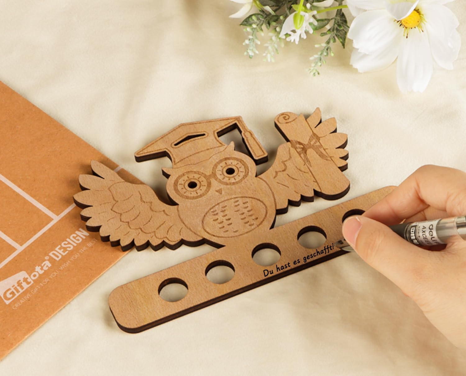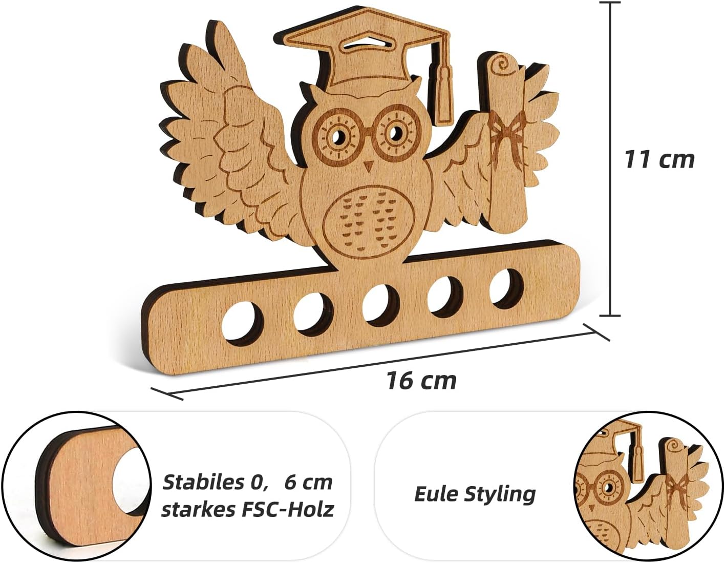 [Ciondoli portafortuna personalizzati per esame] Stai cercando un'idea regalo unica per la laurea? I nostri regali in denaro con gufo in legno sono perfetti per questa occasione speciale e non solo porteranno gioia ai laureati, ma aumenteranno anche la loro felicità! Questo è un ottimo modo per regalare soldi in modo originale. [Design eccellente] Adottando la tecnologia avanzata di incisione laser, il saggio gufo con sparviere allarga le ali in una forma realistica. Abbiamo fornito 5 fori, ogni foro misura 1,5 cm, il che rende facile arrotolare banconote, biglietti del cinema o biglietti ecc. Puoi anche aggiungere le tue idee e creatività fai-da-te. [Lascia fluire le tue idee] La parte anteriore e quella posteriore offrono spazio sufficiente per lasciare firme e benedizioni. Tutti i modelli in legno possono essere colorati e dipinti con le matite acquerellabili! Completa un regalo di laurea originale che lascerà ai laureati un ricordo indimenticabile. [Legno di alta qualità] Realizzato in legno naturale che conserva le venature del legno originale. Il legno più spesso di 6 mm garantisce che il supporto sia stabile e non facile da rompere. Bordi lisci e lucidati a mano, non ti faranno male alle mani. [Ampiamente usato, nessuna preoccupazione dopo la vendita] Questo è un regalo di laurea in contanti eccezionale per il diploma di scuola superiore 2025, studi, tesi di dottorato o dottorato. Offriamo un servizio clienti senza preoccupazioni, tutti gli ordini vengono consegnati tempestivamente.