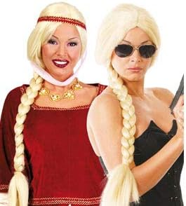 PARRUCCA BIONDA LUNGA con TRECCIA FROZEN, PRINCIPESSA, CONTESSA, DAMA, ACCESSORI TRAVESTIMENTO, CARNEVALE, SPETTACOLI TEATRALI MISURA: ADULTO