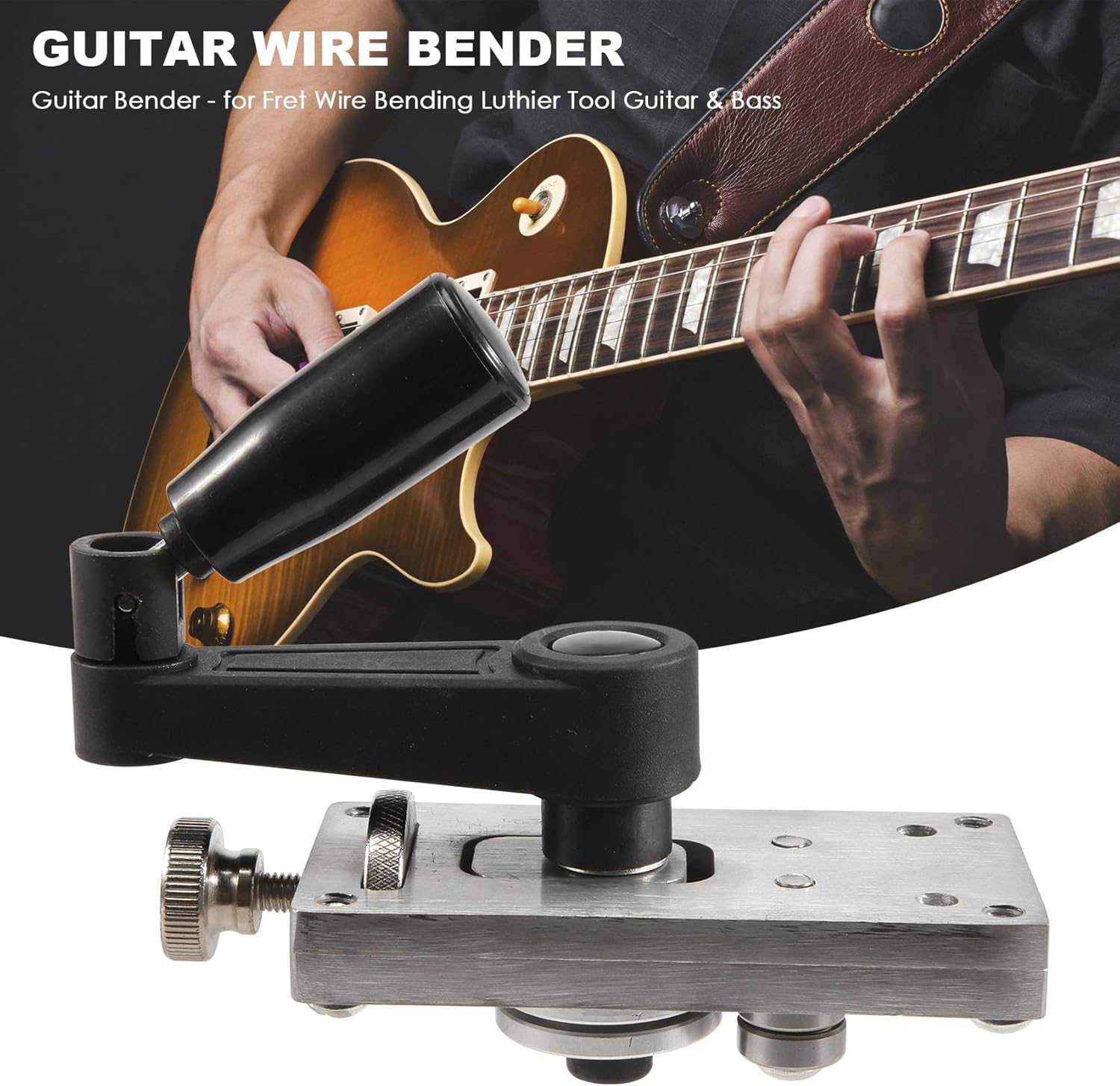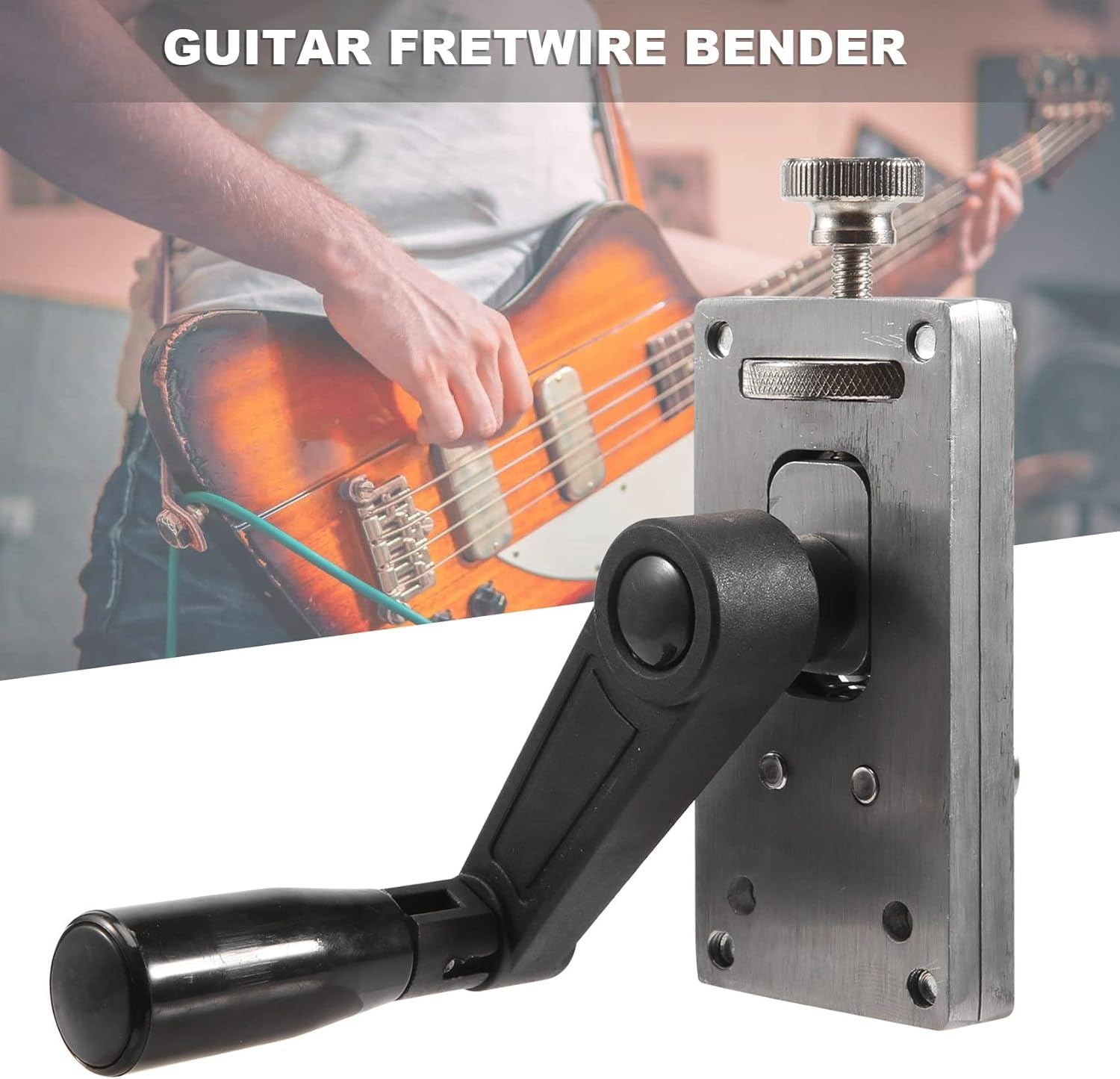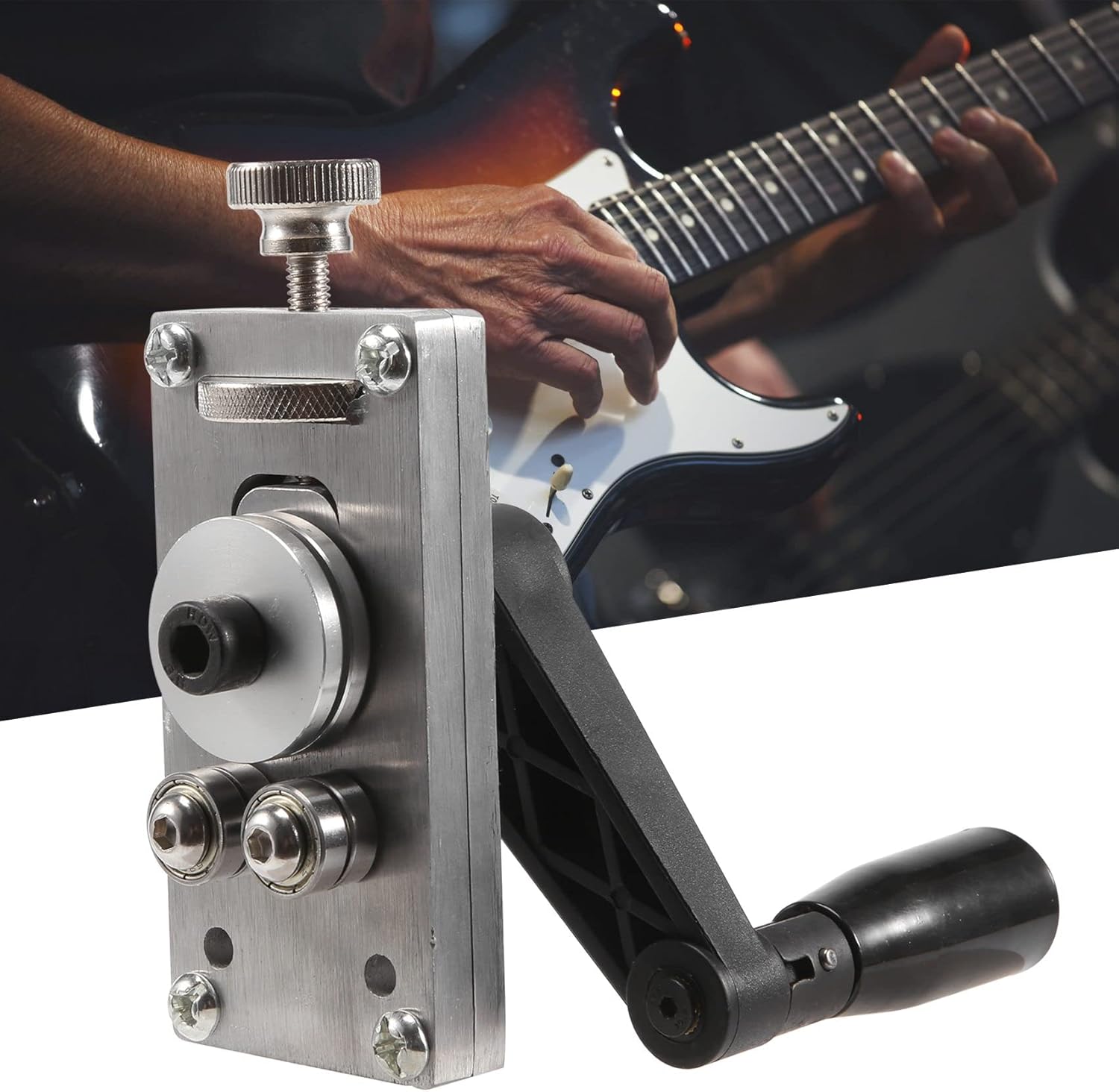 Per la piegatura del filo, far passare una lunghezza di filo attraverso questa macchina ed esce curvo e pronto per l'installazione in una tastiera radiosa. Il filo per freccette con precisione trasmessa rende il filo per lavorare veloce, preciso e professionale. Il design ergonomico della manovella, pratico e conveniente, consente di risparmiare tempo e fatica. Strumento di piegatura del filo molto conveniente per liutai. La tastiera per chitarra, con la rotella regolabile, regola rapidamente la rotellina per comporre il raggio . Ottieni una piega su un filo sufficiente per un'intera chitarra in pochi secondi.Il corpo principale è realizzato in materiale in lega, e può fornire lunghi tempi di manutenzione.