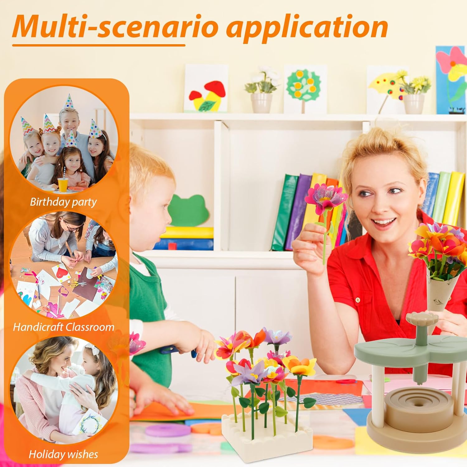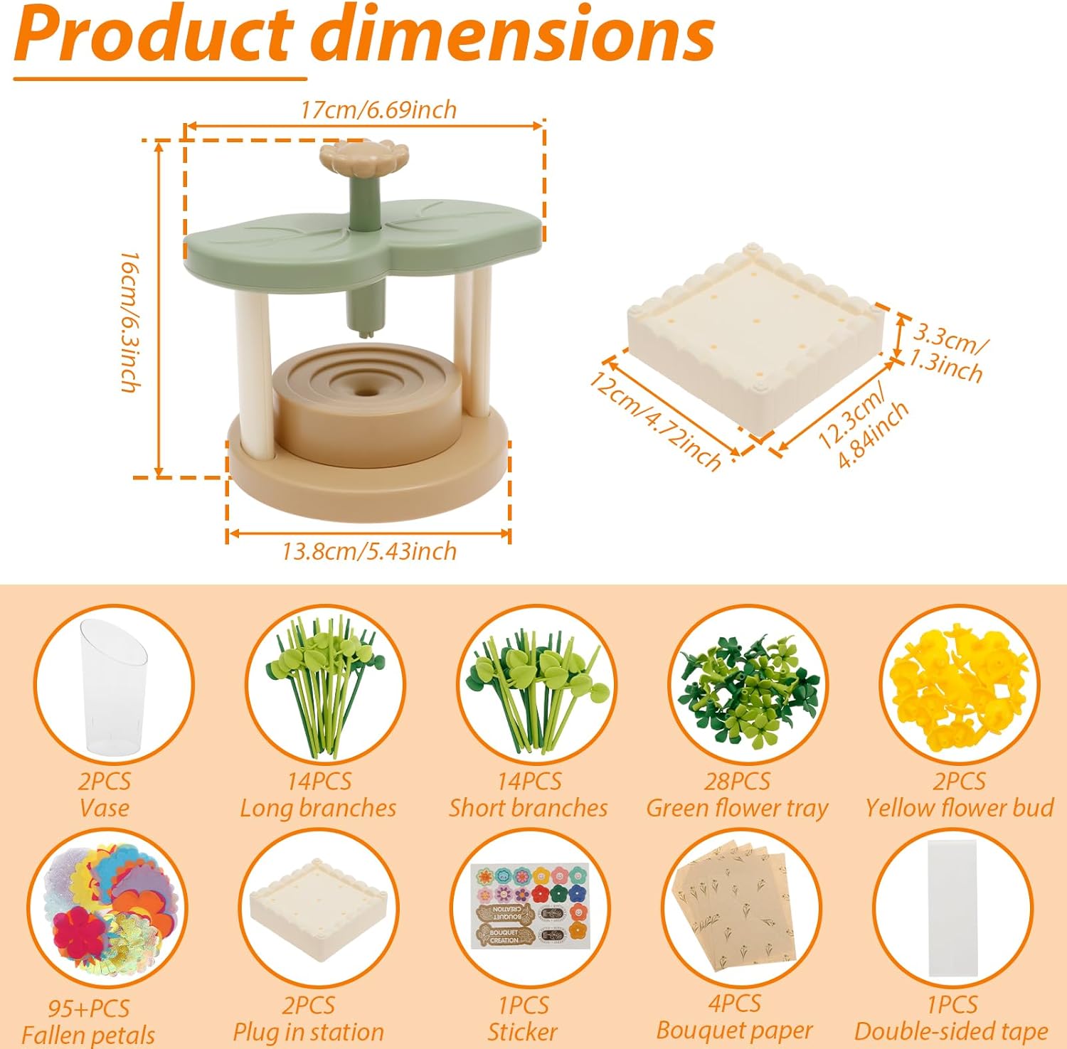 Fiori artificiali creativi fai da te: questo kit creativo è stato progettato appositamente per i bambini e include una pressa per fiori, petali di stoffa colorati e numerosi accessori. I bambini possono quindi combinare a piacimento e creare mazzi di fiori artificiali unici. La loro creatività e le loro capacità artistiche sono incoraggiate. Materiale sicuro: i petali e i rami in materiale ABS sono morbidi e facili da piegare. I bambini possono utilizzare il set in modo sicuro e senza problemi. Set completo: il set include una pressa per fiori, oltre 95 petali di stoffa colorati, 28 teste di fiori, 28 steli artificiali, 2 espositori, 2 vasi, 1 foglio di adesivi e 4 carte da regalo. Dalla produzione alla confezione, copre l'intero processo e fa sperimentare la gioia dei bambini. Artigianato interattivo per genitori e figli: i genitori possono accompagnare i loro figli a creare insieme il bouquet. In questo modo si rafforza il legame genitore-figlio e si allena la coordinazione occhio-mano dei bambini. Multiuso: sia come regalo fatto in casa per feste di compleanno, come strumento didattico per le lezioni di artigianato all'asilo o come cordiali saluti per la festa della mamma o dell'insegnante, questo set di bouquet fai da te soddisfa tutte le esigenze.