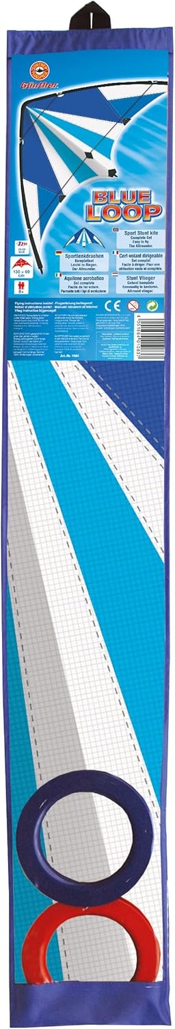 Aquilone acrobatico dinamico per principianti, pronto a volare in pochi passi Dimensioni: ca. Dimensioni 130 x 69 cm Realizzato in poliestere ripstop resistente agli strappi con cuciture ribaltabili estremamente durevoli e robuste aste in fibra di vetro Completo di 2 bobine di sterzo, linea kite e istruzioni di volo, inclusa pratica borsa in poliestere Adatto per bambini a partire da 8 anni e velocità del vento di 25 - 50 km/h