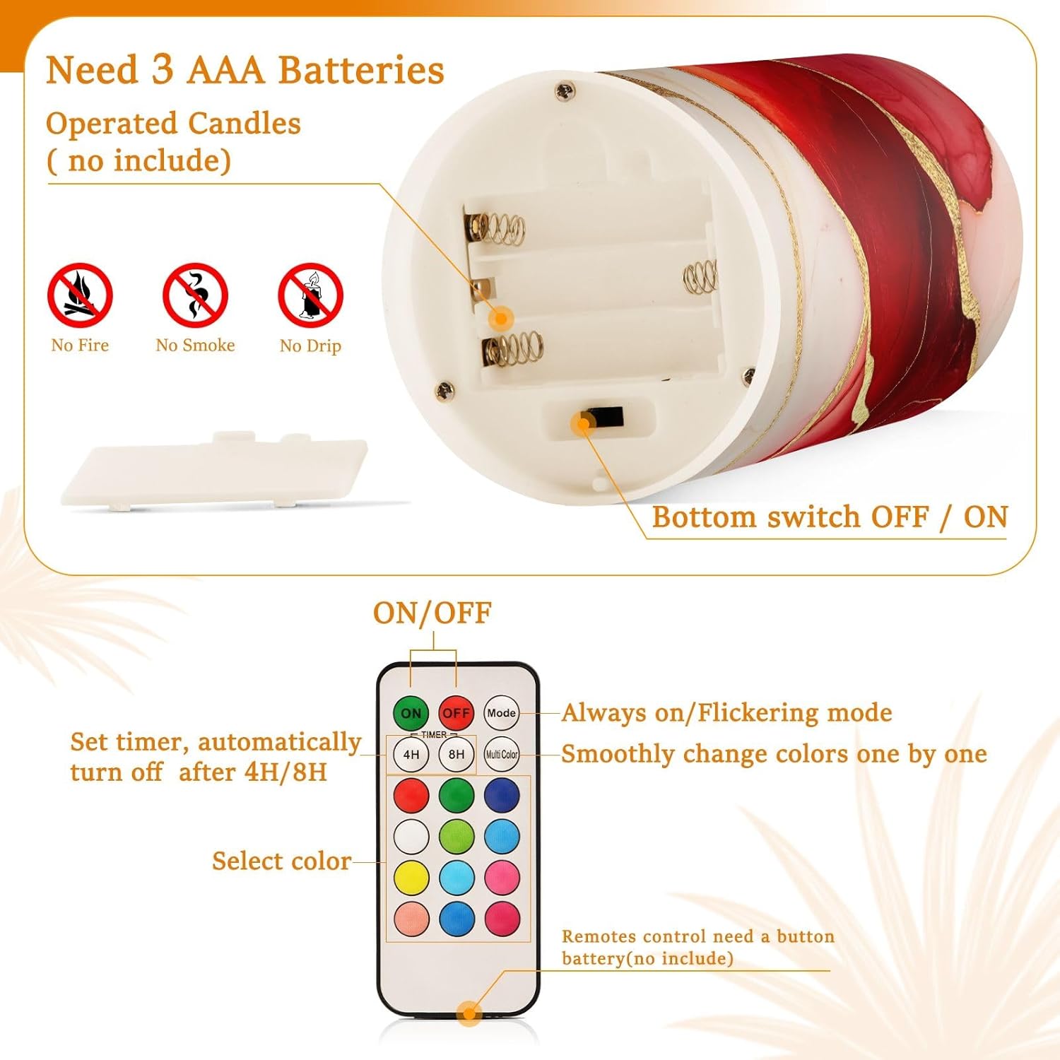 Duo di candele a pilastro di alta qualità: candele grandi (7,6 cm di diametro x 12,7 cm di altezza) e piccole (7,6 cm di diametro x 10,2 cm di altezza) con stampe laterali sulle basi, realizzate in plastica leggera. Sicurezza senza fuoco prima di tutto: realizzate in plastica di alta qualità, queste candele flamel eliminano i rischi di incendio offrendo un bagliore realistico a lume di candela: nessun fumo, nessuna cera gocciolante, solo luce calda e invitante. Opzioni Endl Ambiance – Usa il telecomando per creare l'atmosfera perfetta: scegli tra delicati sfarfallio per il romanticismo, luce fissa per il relax o colori vivaci per le celebrazioni, il tutto con un timer 4/8H. Comodità alimentata a batteria: Nota: le candele richiedono 3 batterie AAA, il telecomando utilizza una batteria a bottone da 3 V (non inclusa). Installazione rapida: accensione tramite interruttore inferiore, quindi controllo fino a 20 piedi di distanza. Festival & Party l - Elevate Natale, Halloween, compleanni e feste in giardino con queste candele tremolanti fiammellate che fondono sicurezza e versatilità decorativa.