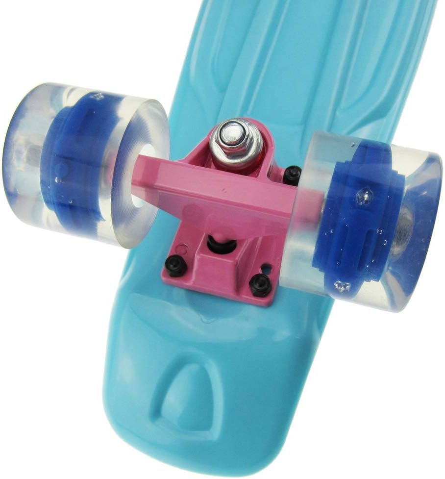 PRESTAZIONI ECCELLENTI: la tavola è realizzata in polipropilene, è robusta e durevole e supporta ciclisti fino a 100 kg. Lo skateboard cruiser è dotato di truck in alluminio spesso 3,25" per la massima velocità e controllo. Kicktail per un controllo extra durante la guida, perfetto per varie manovre. Tavola antiscivolo per una maggiore sicurezza. GUIDA FLUIDA E VELOCE: la tavola cruiser è dotata di ruote morbide in PU, cuscinetti ABEC-7 ad alta velocità ed eccellente assorbimento degli urti. ROBUSTO: staffa in lega di alluminio verniciata, con materiali in lega di alluminio Formula ispessiti e rinforzati, supporto più forte, più sicuro, utilizzabile per strada. CREA DIVERTIMENTO: lo skateboard è dotato di ruote luminose per una pedalata davvero fantastica. Le luci sulla ruota quando gira sono luminose e colorate, aggiungendo ulteriore divertimento. ADATTO A TUTTI: lo skateboard per principianti è progettato per bambini, adolescenti o adulti che vogliono divertirsi o girare per la città con una guida fluida e confortevole su strade tortuose e per persone di tutte le età.