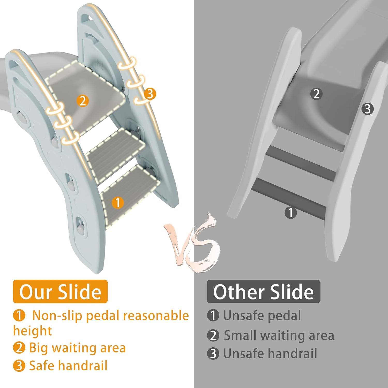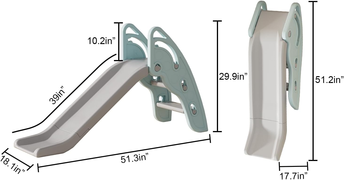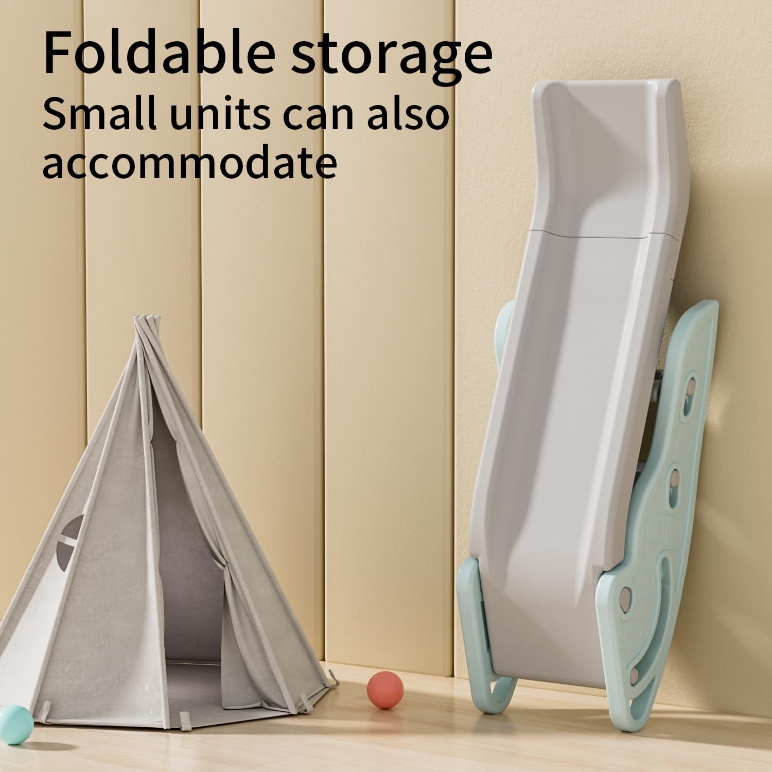 SEMPLICITÀ - La combinazione di colori grigio e blu è semplice ed elegante. Si adatta perfettamente all'arredamento del soggiorno e della camera da letto, senza preoccuparsi che risulti scomodo se posizionato in casa. PIEGHEVOLE - Lo scivolo da giardino per bambini è progettato per ripiegarsi e riporlo quando non viene utilizzato, riducendo lo spazio sul pavimento. Ha una struttura compatta, è leggero e portatile. Puoi facilmente piegarlo e spostarlo all'interno o all'esterno. SICUREZZA - Questo scivolo pieghevole per bambini è liscio e ampio, consentendo ai bambini di divertirsi arrampicandosi e scivolando. Le pendenze dei gradini sono abbastanza dolci da consentire ai bambini di arrampicarsi da soli e la combinazione di arrampicata e scivolamento aiuta a promuovere la forma fisica, l'equilibrio e la coordinazione. STABILITÀ - Non c'è dubbio che sia robusto con una grande capacità di carico di 50 kg. È affidabile, durevole. MATERIALE - Ogni singola parte di montaggio è integra, liscia e priva di spigoli vivi.
