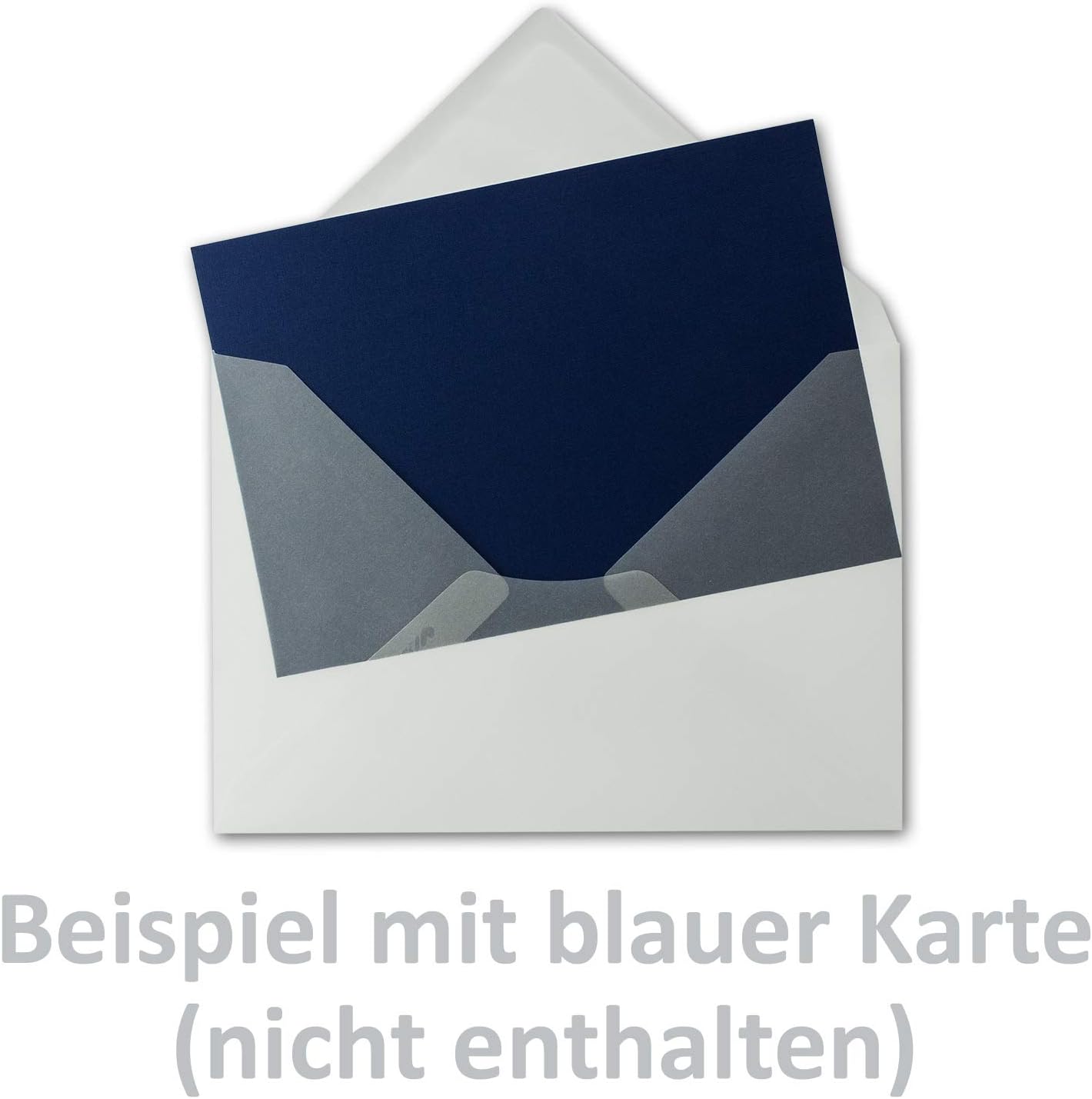 Buste trasparenti molto eleganti per occasioni speciali. Ideale per biglietti di auguri e inviti per compleanni, matrimoni e biglietti regalo. Adatto per buoni, regali o anche per scopi promozionali Colore: bianco latteo trasparente, grammatura carta robusta: 92 g/m² Formato: DIN C5 – Dimensioni: 229 x 162 mm (22,9 x 16,2 cm) con adesivo da inumidire e gommatura, senza finestra, aletta appuntita per inumidire o inserire Superficie opaca che lascia trasparire il contenuto, molto piacevole al tatto, stampabile e scrivibile con qualsiasi penna (gli inchiostri devono asciugarsi brevemente) Contenuto: 50 buste. Produzione e vendita dalla Germania. - GUSTAV NEUSER: i professionisti della carta e dei biglietti da oltre 100 anni!
