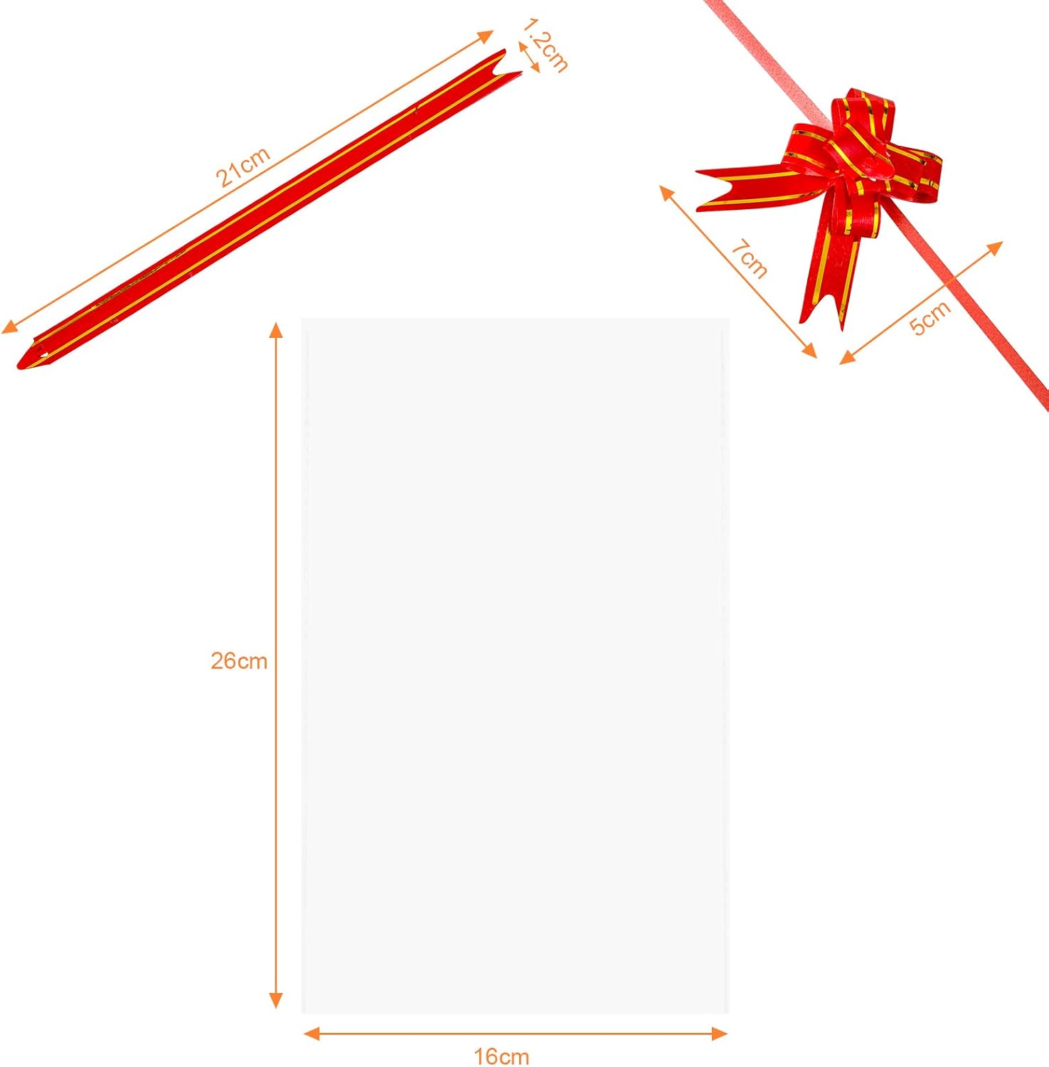 Confezione conveniente: 120 sacchetti di caramelle e 130 fiocchi con coulisse, quantità sufficiente. Materiale di alta qualità: i sacchetti per snack sono realizzati in materiale OPP di alta qualità, durevole e non tossico, riutilizzabile, perfetto per le forniture per feste di Natale. Misura adatta: 120 sacchetti da 26x16 cm, fiocchi con coulisse: 21 cm (L). Sono perfetti per conservare caramelle e regali e possono essere utilizzati con il cordoncino incluso per evitare che il contenuto cada. Ampia applicazione: questi sacchetti di cellophane sono adatti per caramelle, biscotti, ciambelle, cioccolatini, popcorn, frutta e piccoli regali, perfetti per decorazioni, regali e forniture per feste di Halloween. I tuoi dolcetti fatti in casa sembrano squisiti nei sacchetti trasparenti. Aumenta l'attesa per il Natale