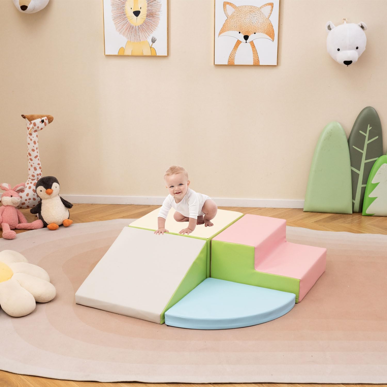 # Set di gioco confortevole # I nostri 4 blocchi da arrampicata sono progettati per essere comodi, sicuri e divertenti per il vostro bambino. Realizzati in schiuma EPE ad alta densità e rivestiti in morbida pelle PU, questi blocchi sono facili da pulire ed estremamente resistenti, ideali per i piccoli avventurieri. # Set di gioco confortevole # I nostri 4 blocchi da arrampicata sono progettati per essere comodi, sicuri e divertenti per il vostro bambino. Realizzati in schiuma EPE ad alta densità e rivestiti in morbida pelle PU, questi blocchi sono facili da pulire ed estremamente resistenti, ideali per i piccoli avventurieri. # Promuove lo sviluppo # Con questo set di blocchi multifunzionali, il bambino è coinvolto in attività che favoriscono lo sviluppo. Arrampicandosi, impilando e navigando in diverse configurazioni, possono migliorare la coordinazione, l'equilibrio e le capacità motorie. # Attenzione meticolosa ai dettagli # Progettato pensando alla sicurezza del bambino, questo set presenta angoli arrotondati, cerniere lisce e cuciture robuste. Il meccanismo di chiusura è dotato di un gancio rimovibile di 6 cm e di un anello di cucitura di 2,5 cm per garantire che i blocchi rimangano saldamente al loro posto. # Un regalo perfetto # I nostri blocchi da arrampicata non sono solo divertenti, ma promuovono anche l'attività fisica e lo sviluppo cognitivo. Ideale per case, asili, sale giochi e altro ancora, questo set è il regalo perfetto per i bambini dai 3 anni in su, garantendo elevati standard di sicurezza e momenti di gioco indimenticabili.