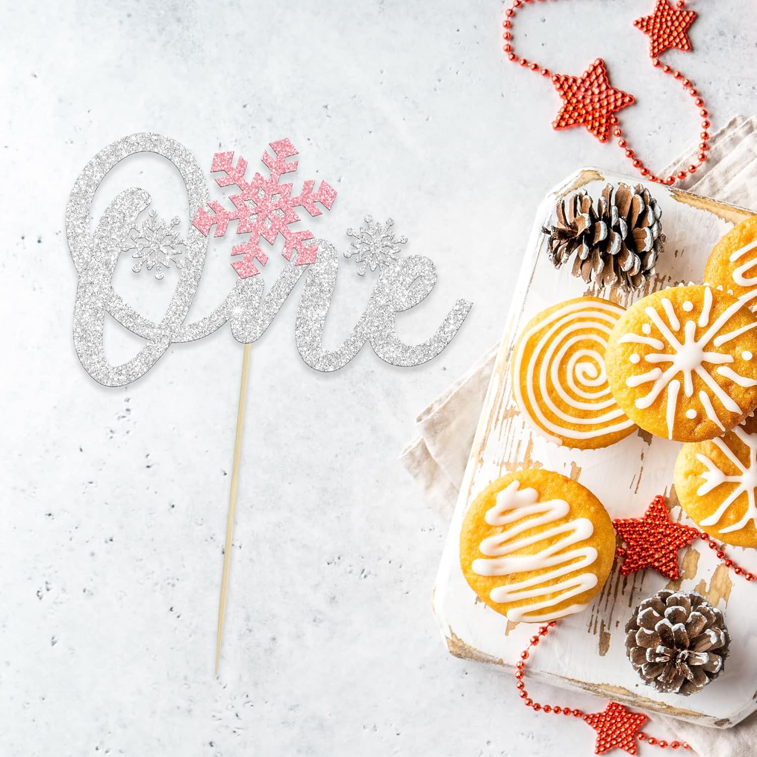 La confezione include: 1 topper per torta con fiocchi di neve. Viene assemblato, quindi puoi inserirlo direttamente nella tua torta, rendendo la tua torta più interessante. Materiale premium: questo topper per torta con fiocchi di neve è realizzato in cartoncino glitterato da 300 g di alta qualità e stuzzicadenti per uso alimentare, molto sicuro da mettere su torte, cupcake, gelati, frutta, crostate, dessert, formaggio o qualsiasi piatto e antipasto che desideri decorare. Questo topper per torta con fiocchi di neve è così carino e perfetto per feste a tema fiocchi di neve, baby shower, decorazioni per torte del primo compleanno dei bambini. Possono rendere i tuoi cupcakes più attraenti e rendere divertente la tua festa. Puoi applicarli anche su gelati, frutta, biscotti e altri dessert. Ampi usi: design unico a tema invernale delle meraviglie. Il miglior cake topper per feste che può essere utilizzato durante le decorazioni del baby shower e altre feste a tema simili. Suggerimenti: progettato solo per un lato, il retro è bianco semplice. Solo a scopo decorativo, non è commestibile e si prega di non utilizzarlo nel forno o nel microonde.