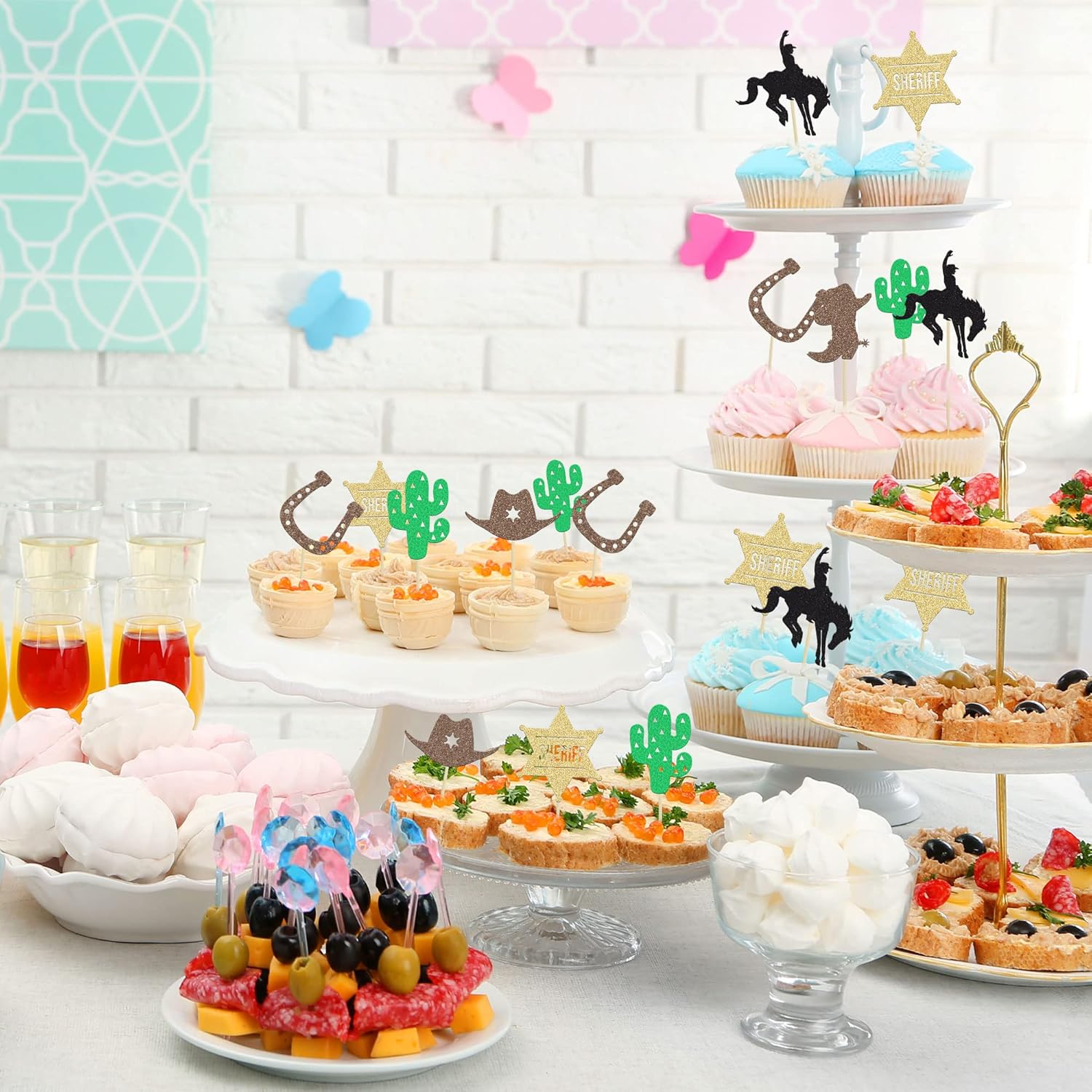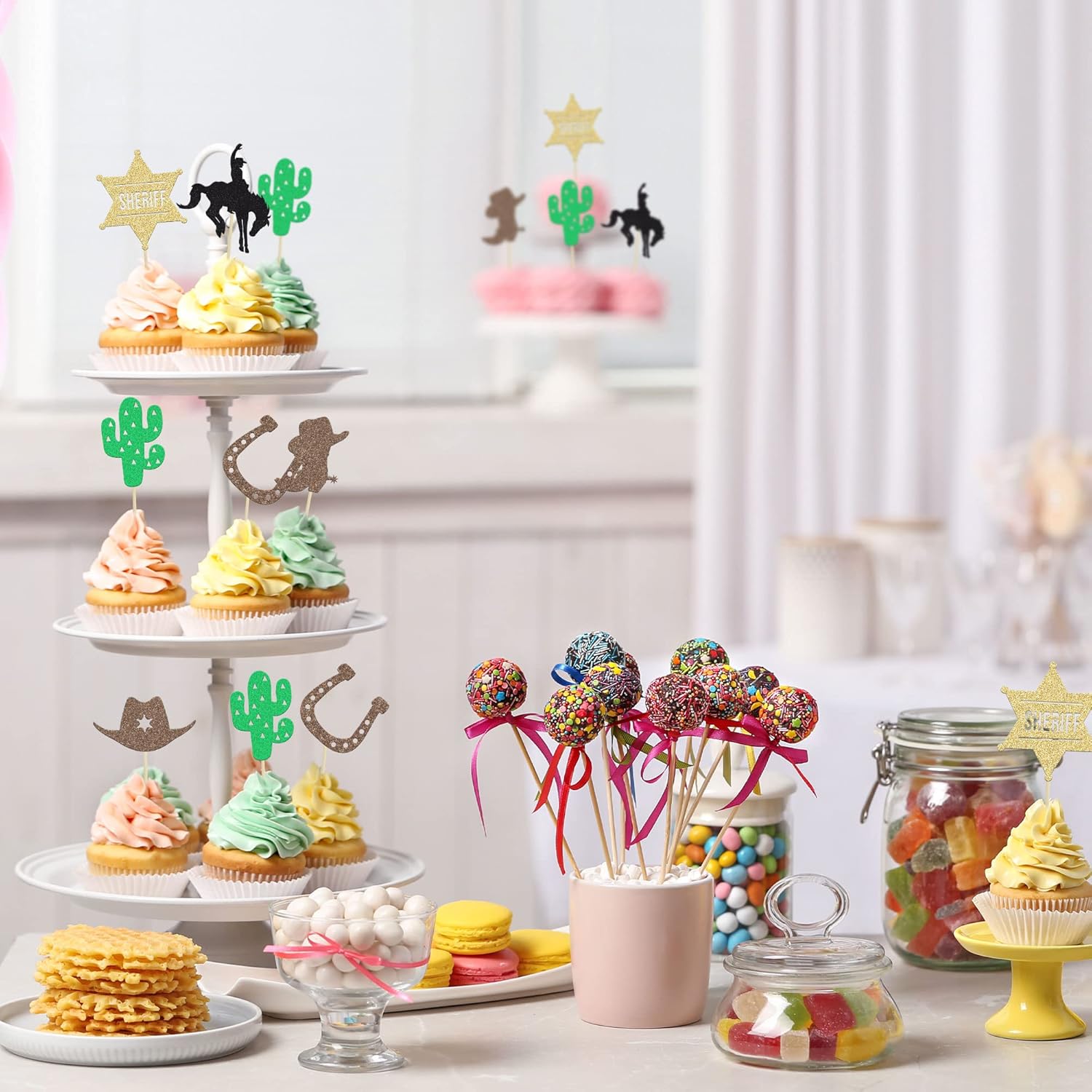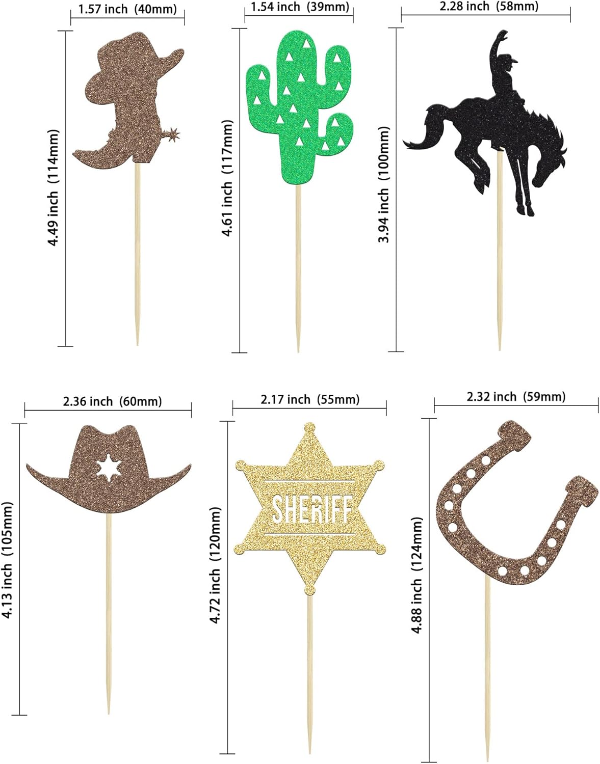 La confezione include: 24 toppers per cupcake cowboy. Viene assemblato, quindi puoi inserirlo direttamente nella tua torta, rendendo la tua torta più interessante. Materiale premium: questi toppers per cupcake Cowboy sono realizzati in cartoncino glitterato da 300 g di alta qualità e stuzzicadenti per uso alimentare, molto sicuri da mettere su torte, cupcake, gelati, frutta, crostate, dessert, formaggi o qualsiasi altro piatto e antipasto che desideri decorare. Questi toppers per cupcake da cowboy sono così carini e perfetti per feste a tema western, feste a tema cowboy, baby shower, feste a tema di matrimonio, decorazioni per cupcake. Possono rendere i tuoi cupcakes più attraenti e rendere divertente la tua festa. Puoi applicarli anche su gelati, frutta, biscotti e altri dessert. Usi estesi: design unico a tema occidentale. Il miglior cake topper per feste che può essere utilizzato per decorazioni per feste a tema cowboy e altre feste a tema simili. 💛 Suggerimenti: progettato solo per un lato, il retro è bianco semplice. Solo a scopo decorativo, non è commestibile e si prega di non utilizzarlo nel forno o nel microonde.