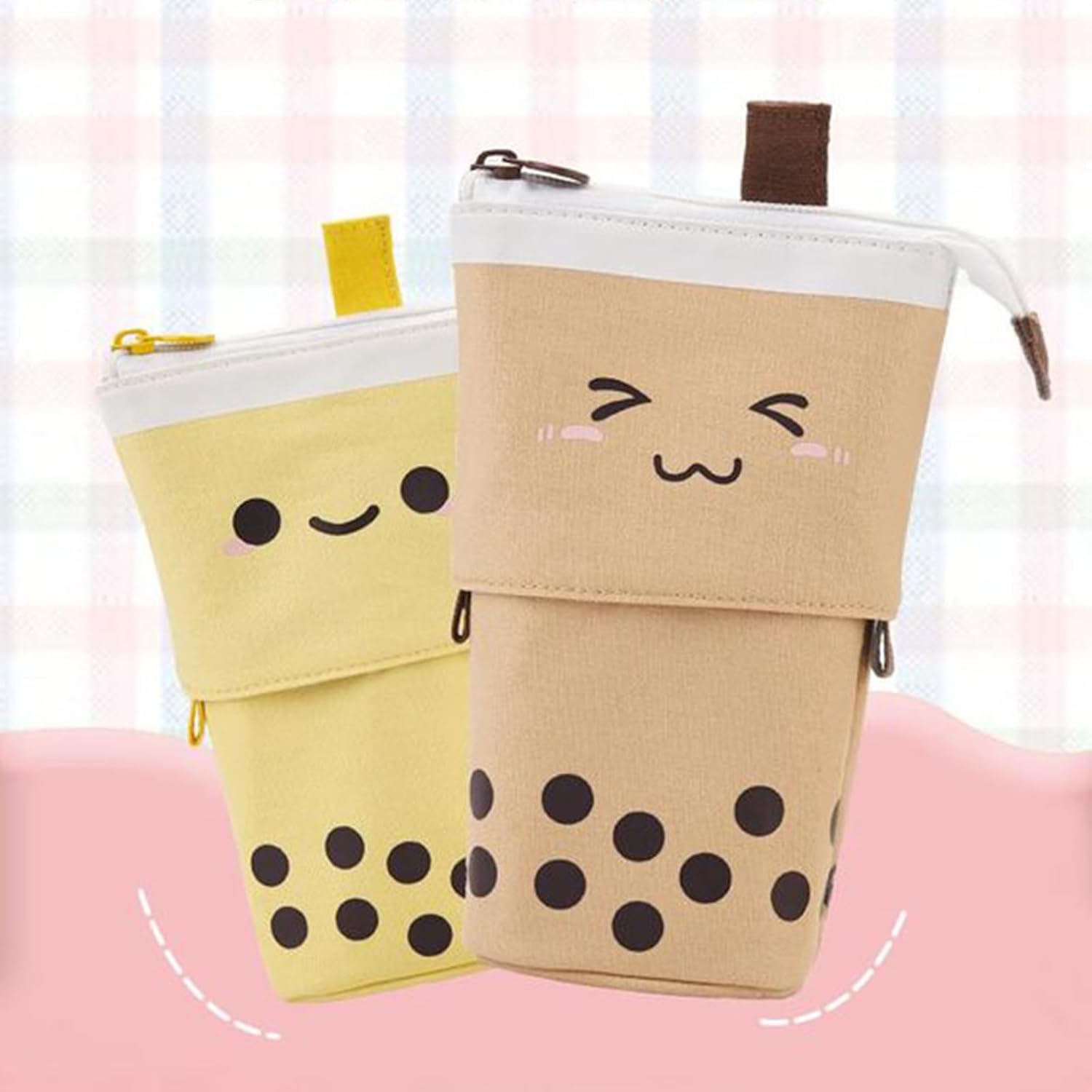 Facile da regolare: ci sono 2 piccoli manici su entrambi i lati dell'astuccio, apri l'astuccio, tiralo verso il basso, otterrai un portapenne da scrivania in piedi e tiralo su, otterrai un astuccio Aspetto carino: questo astuccio è stampato con un aspetto carino, caratterizzato da un affascinante tema tè al latte, l'astuccio aggiunge un tocco divertente e alla moda alla tua collezione di articoli di cancelleria Materiale di alta qualità: esterno della custodia per penne con tela ad alta densità e fodera in morbido nylon. Resistente all'usura, resistente agli strappi e lavabile. Design con cerniera in metallo, facile da aprire e chiudere Compatto e portatile: è un portamatite ideale per tenere sul tuo cancelleria, almeno 43 penne e leggero, può essere piegato ordinatamente quando non in uso, facile da mettere nella tasca quotidiana Ampia applicazione: questo organizer può soddisfare una varietà di esigenze pratiche per persone diverse, come borsa per cancelleria, portapenne, borsa per il trucco, adatto per ufficio, scuola, casa e viaggi