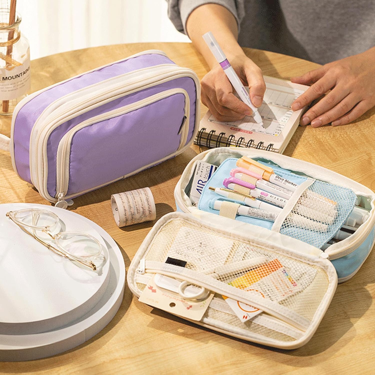 Grande capacità: la grande custodia per cancelleria con 4 scomparti nella struttura interna, misura 21,5 x 6 x 11 cm, può contenere più di 100 penne e persino forbici, calcolatrice, righello, cucitrice possono essere facilmente conservate Design espandibile: l'astuccio può essere espanso con cerniera, piegato è di 3 cm o aperto è di 7 cm. Lo spazio extra può contenere più penne. quando si apre la cerniera inferiore e dispone di una tasca in rete integrata per una maggiore visibilità Materiale di alta qualità: questo astuccio multifunzione è realizzato in fibra di poliestere, robusto, resistente e lavabile. Astuccio con cerniera, liscio e resistente, per aprirlo e chiuderlo facilmente Leggero e portatile: l'organizer per cancelleria con manico presenta un design minimalista. Quando si tiene meno articoli di cancelleria, può essere facilmente piegato e riposto in uno zaino. Una volta aperto, mantiene la sua forma Ampia applicazione: questo astuccio di grande capacità può soddisfare una varietà di esigenze pratiche per persone diverse, come borsa per cancelleria, portapenne, borsa per il trucco, adatta per ufficio, scuola, casa e viaggi