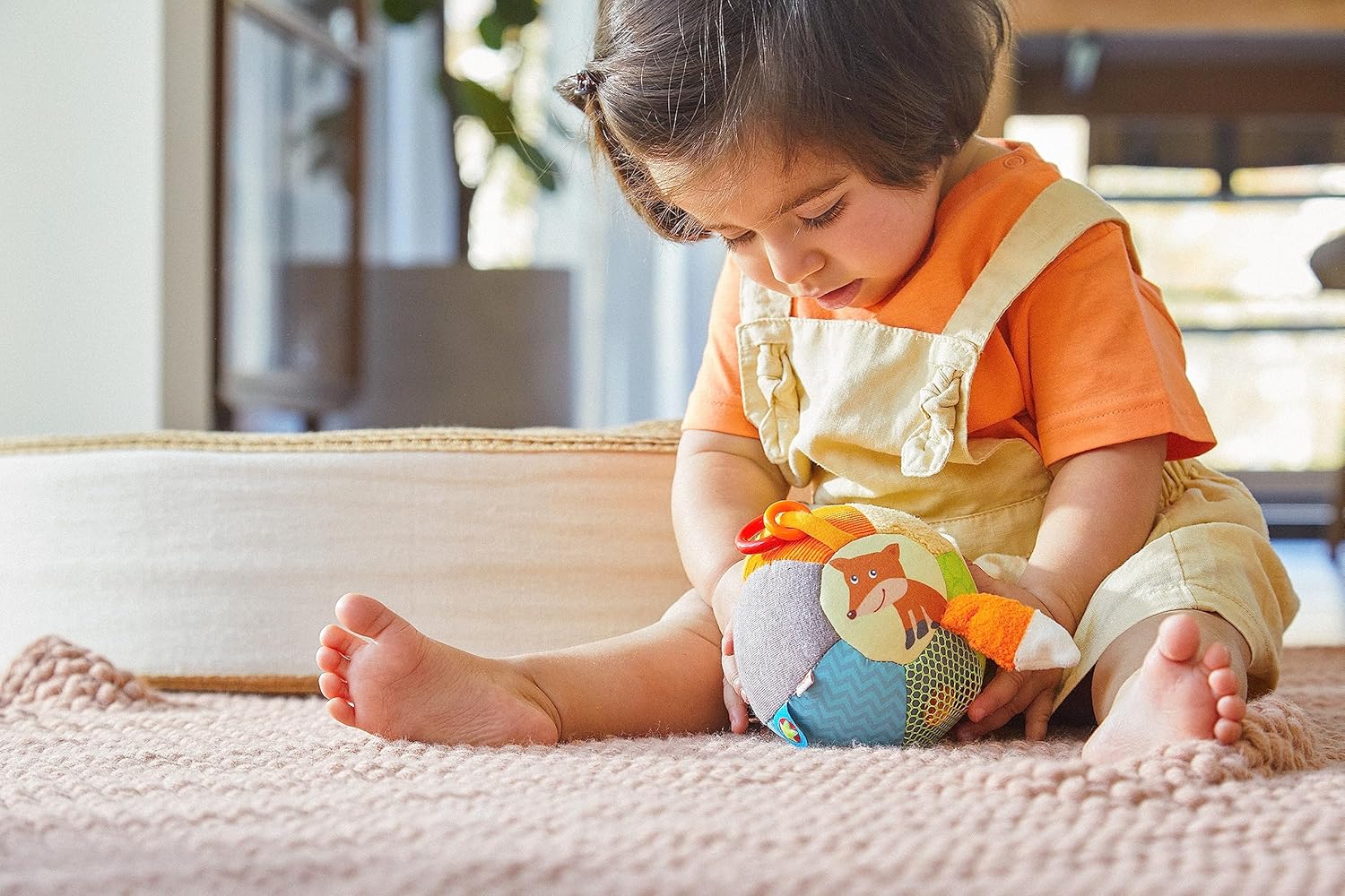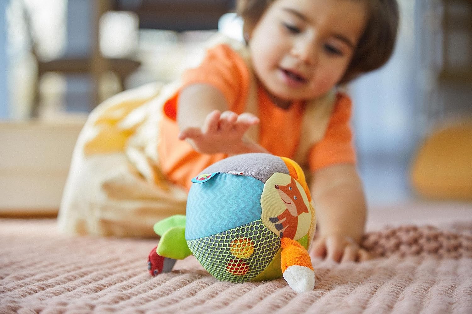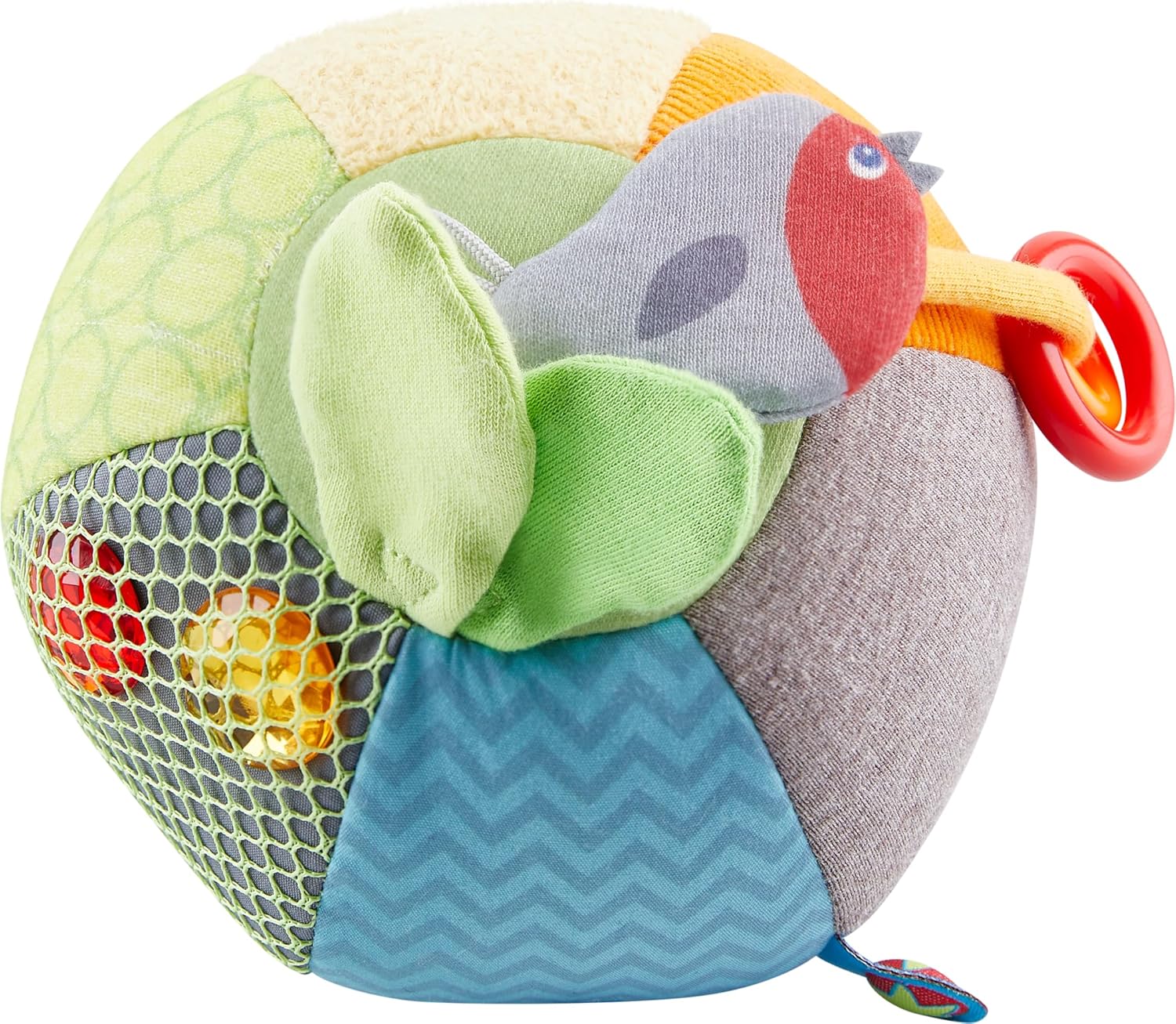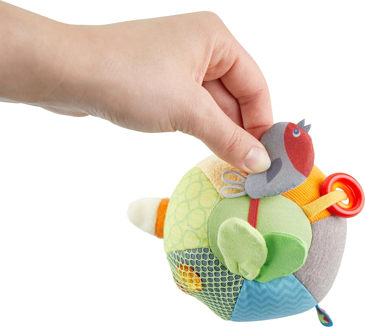 La palla scoperta HABA Forest Friends è un giocattolo vario per bambini a partire da 6 mesi, pellicola scoppiettante Ø 10 cm, sonaglio, anelli sonagli, una rete con elementi tattili, diversi modelli, colori e strutture invitano ad afferrare e giocare. Il morbido giocattolo per la motricità può essere facilmente afferrato, tenuto e stretto da piccole mani, promuove la manualità e la motricità fine con grandi dettagli da scoprire. La simpatica volpe e il simpatico uccellino incoraggiano il gioco in posizione prona Gattonare e correre Con tessuti colorati, diverse superfici e tanti elementi di gioco cuciti, la palla per bambini HABA stimola i sensi