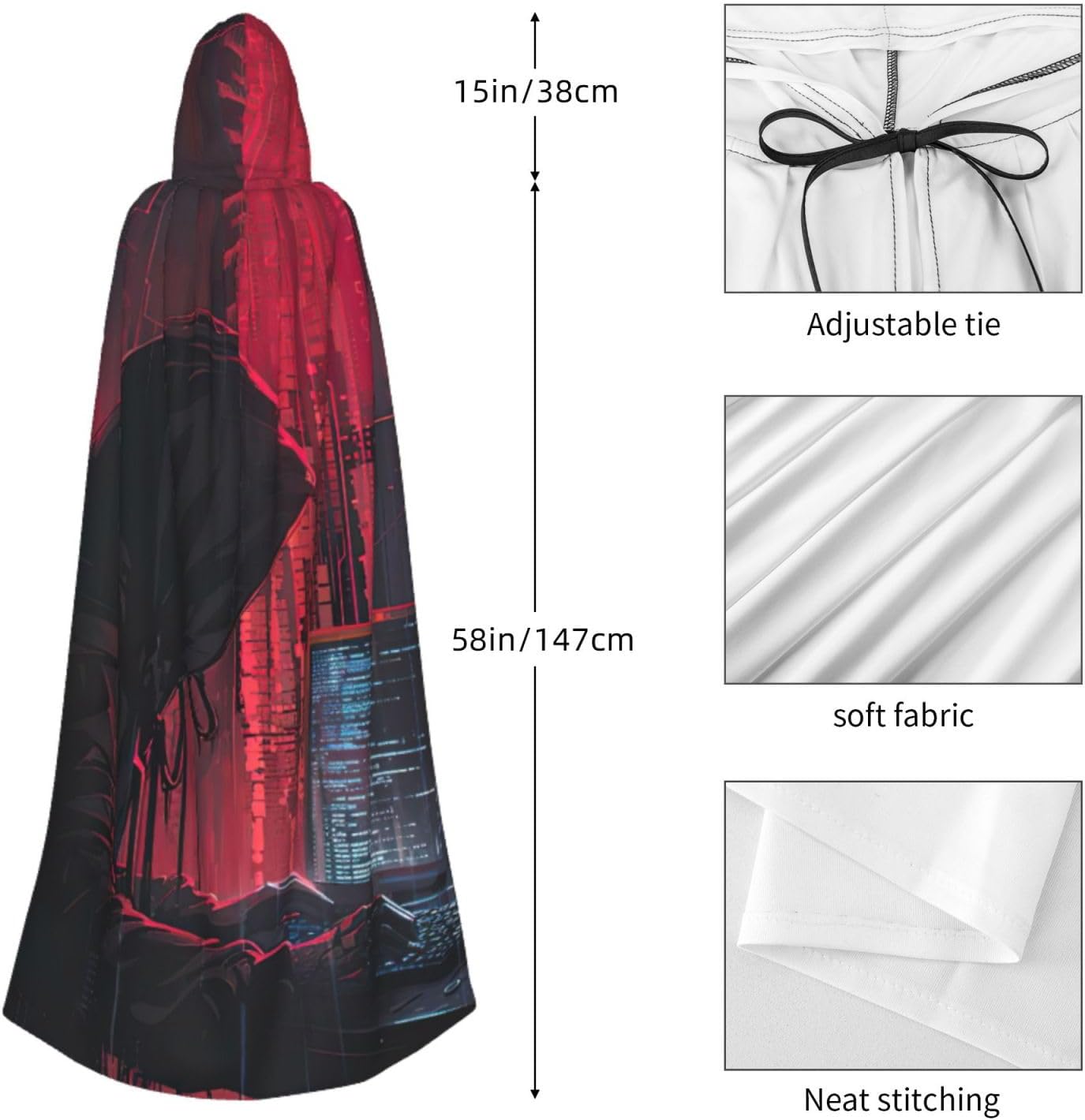 Il design senza cerniera, abbinato a un grande mantello con cappuccio e cravatta al collo, migliora il tuo mistero mantenendoti comodo con il suo tessuto non prurito. Con una lunghezza di 147 cm, larghezza di 154 cm e un'altezza del cappuccio di 38 cm, il nostro mantello con cappuccio con stampa Hacker Attack offre una copertura completa, assicurandoti di distinguerti in ogni occasione. Vari eventi come Halloween, cosplay, costumi da palcoscenico, feste a tema, balli, convegni di fumetti e molto altro ancora, il nostro mantello è versatile e conveniente. Facile da mantenere e di lunga durata, il nostro mantello con cappuccio con stampa Hacker Attack è lavabile in lavatrice e lavabile a mano. Con un design neutro, il nostro mantello è perfetto per uomini e donne.